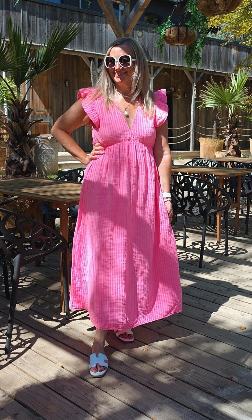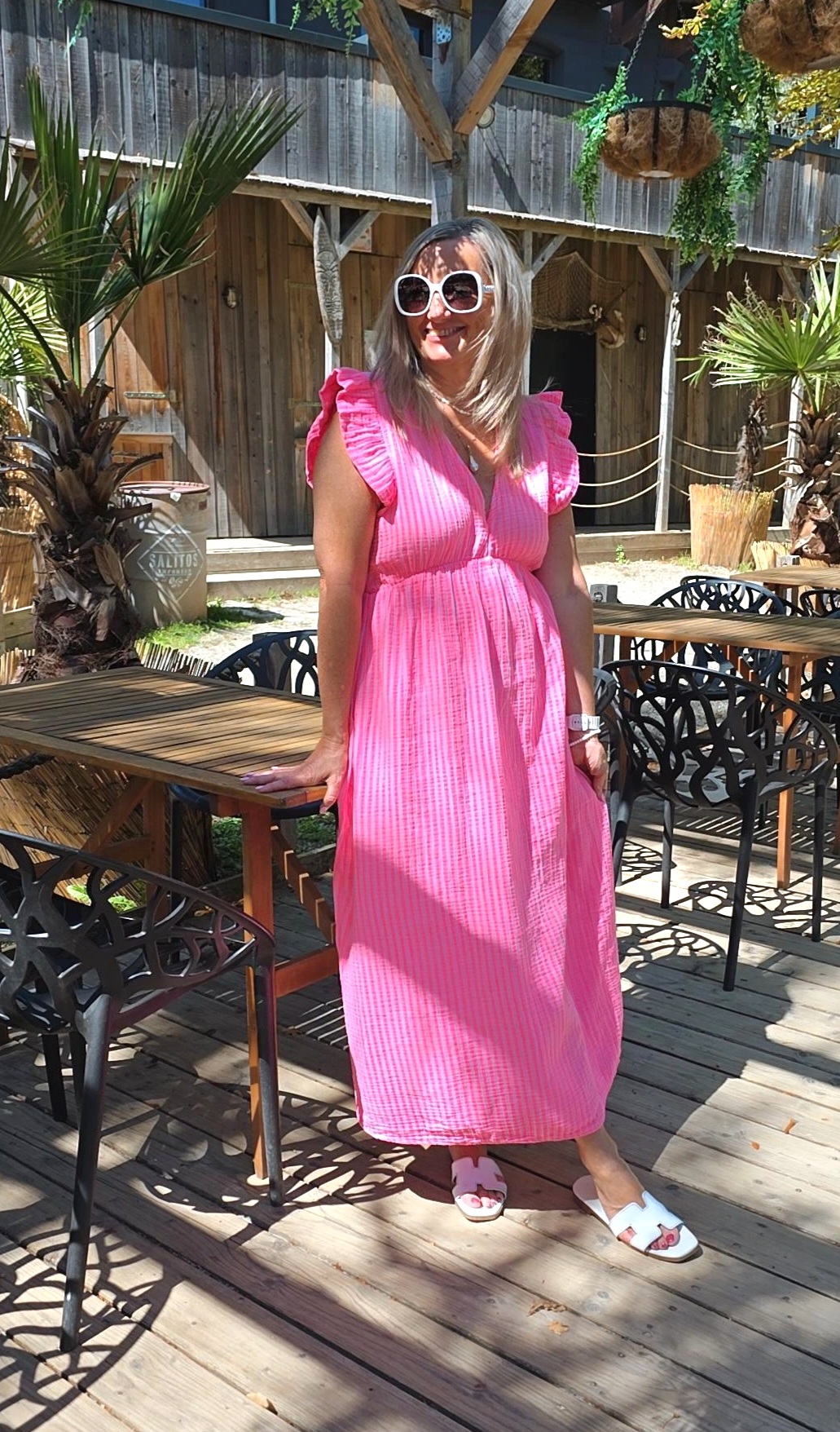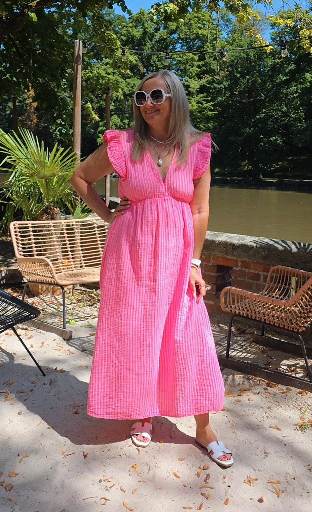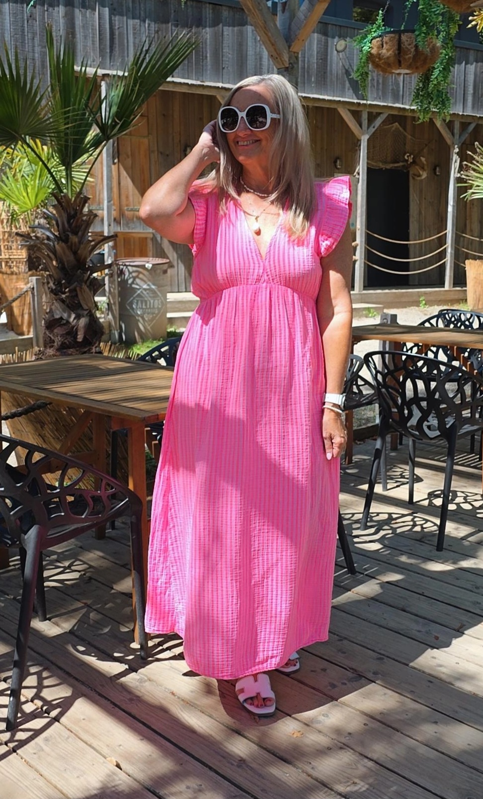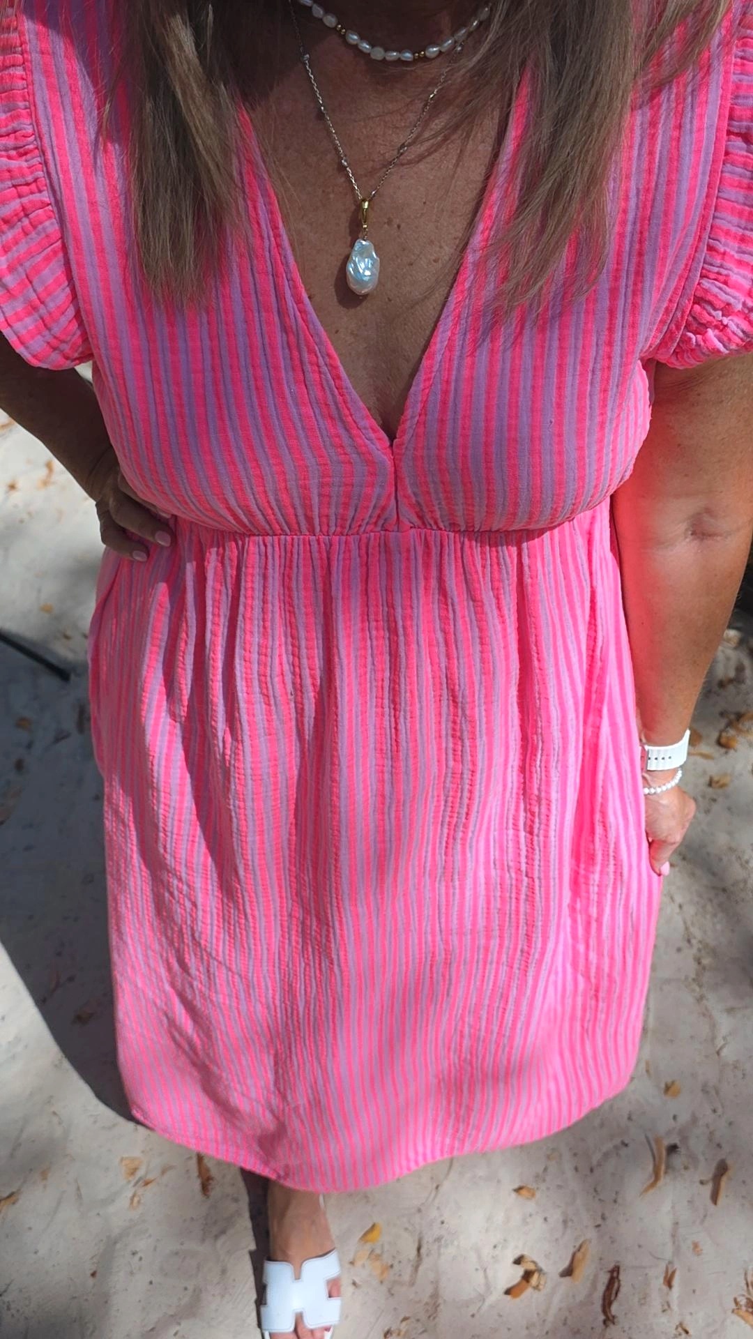 NEON PINK MUSSELIN KLEID ZOE STRIPES .1
