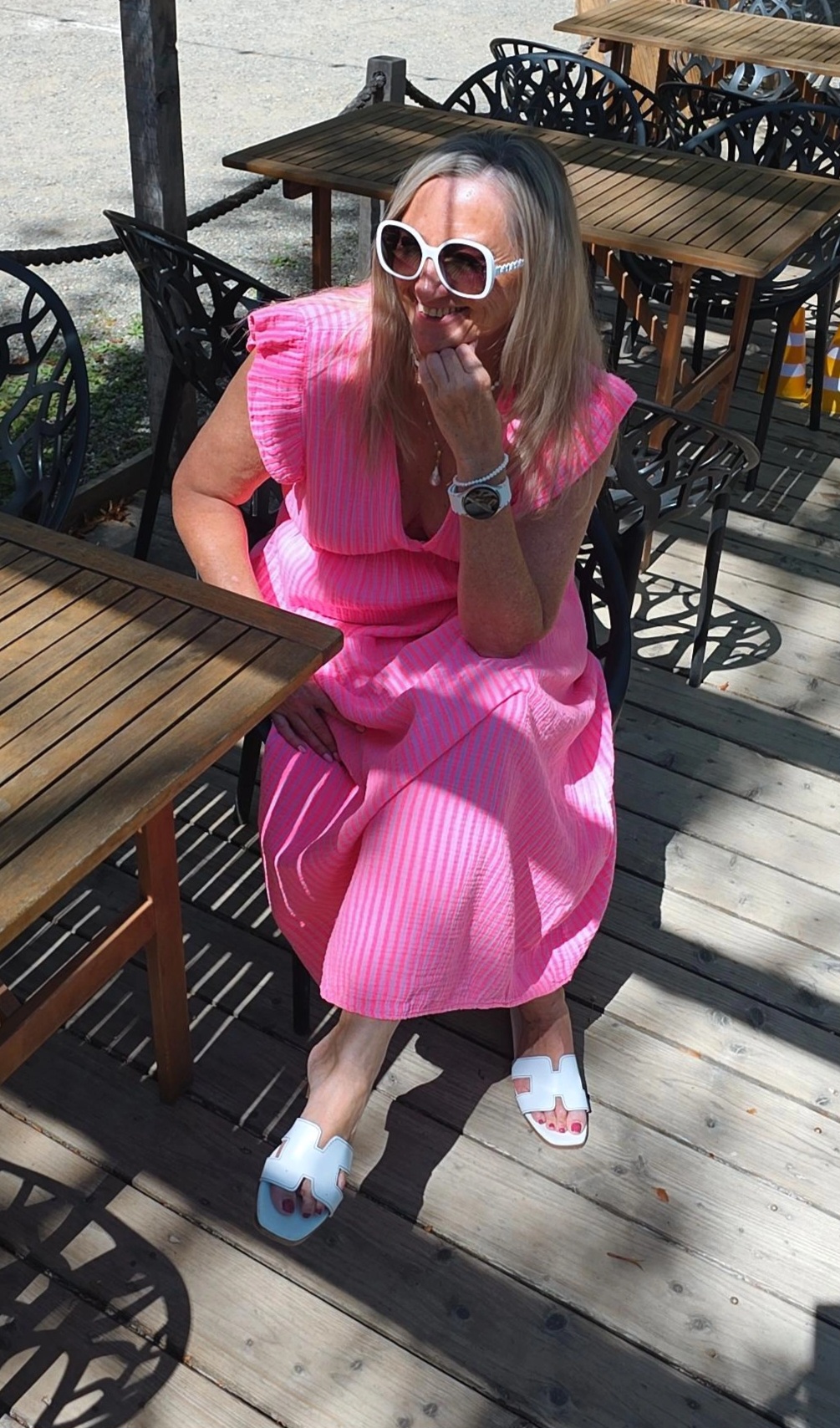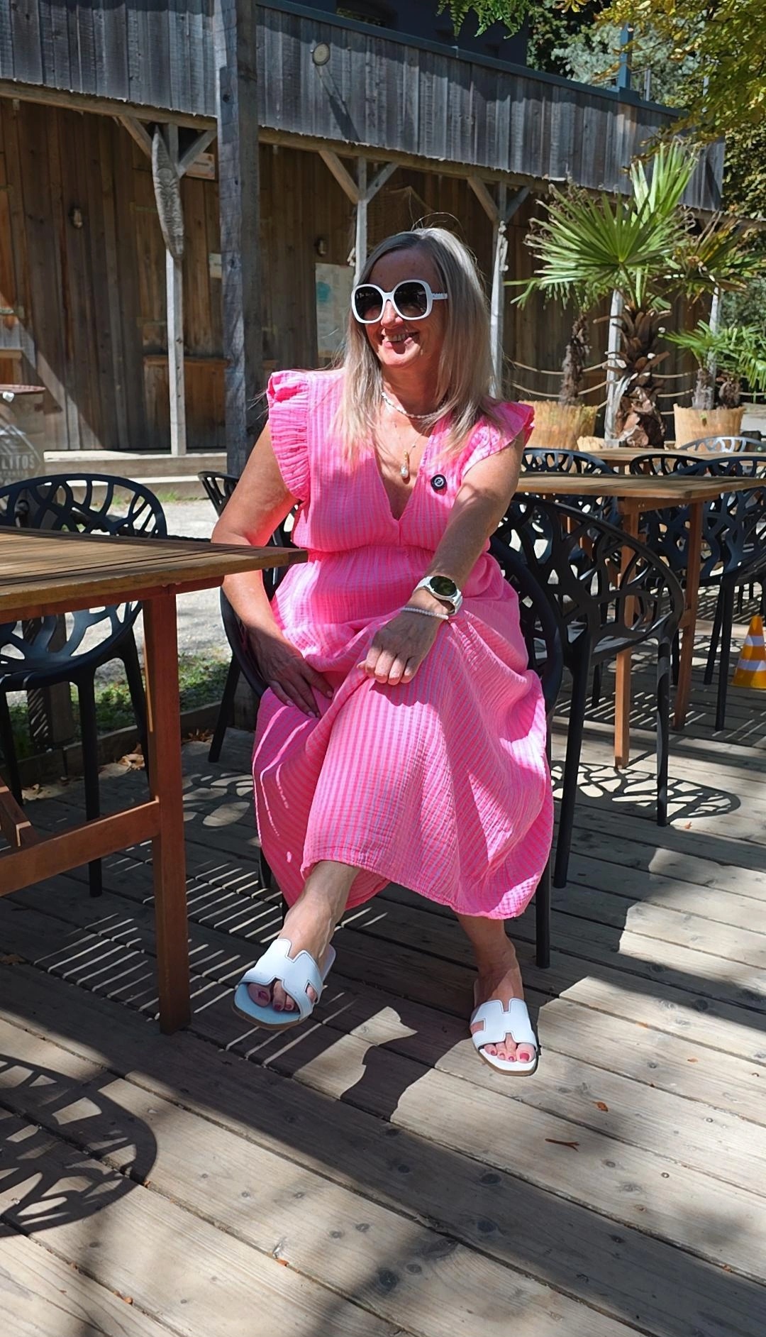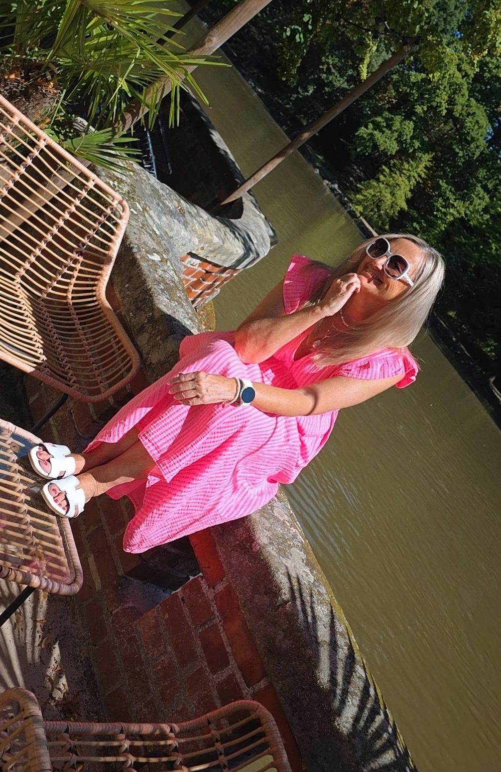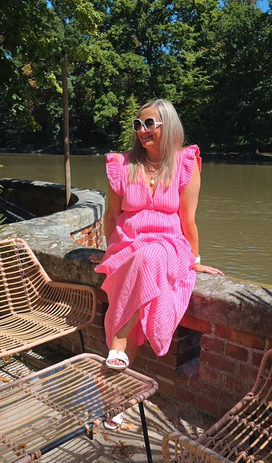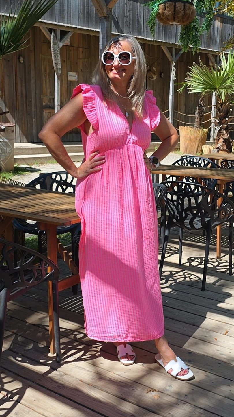 NEON PINK MUSSELIN KLEID ZOE STRIPES .1