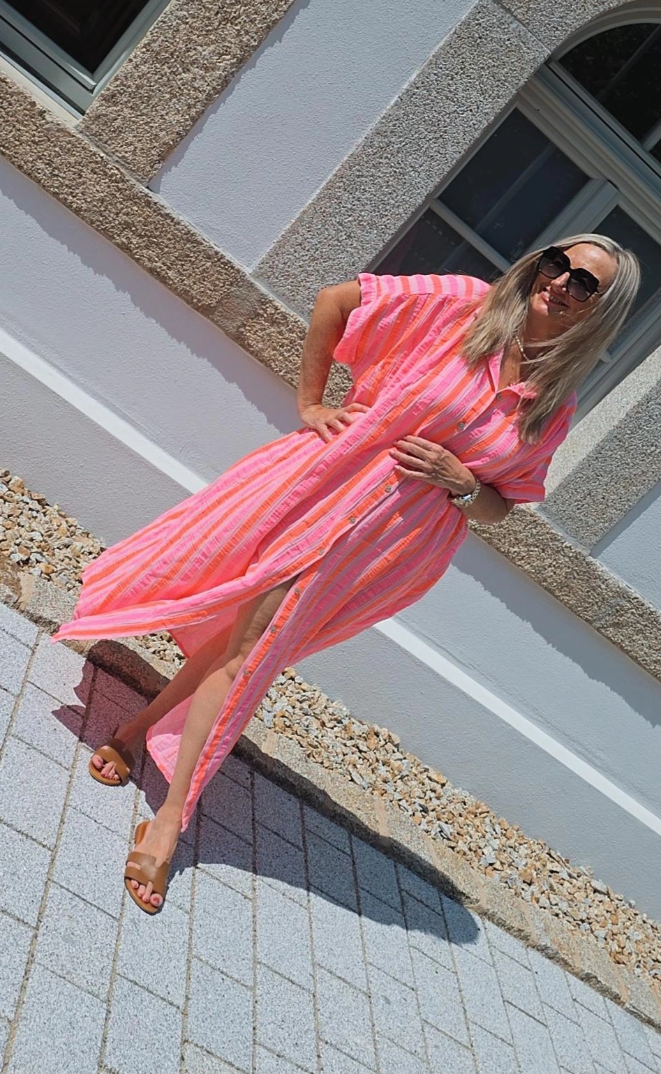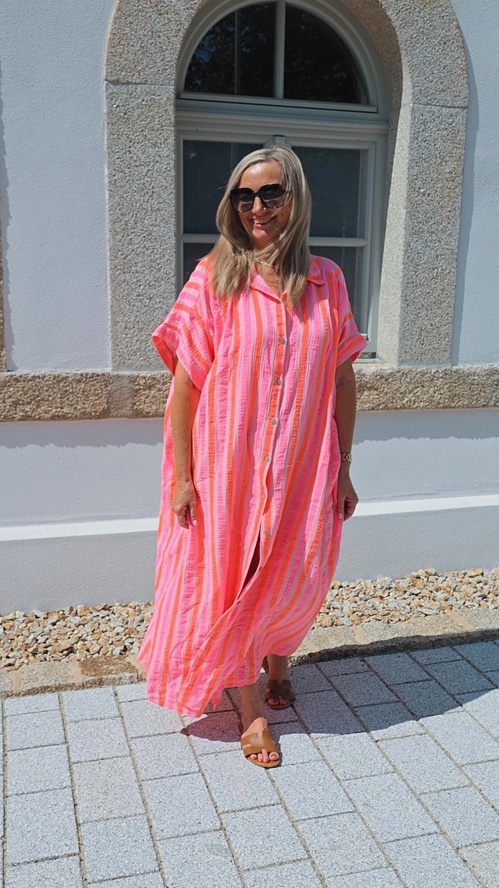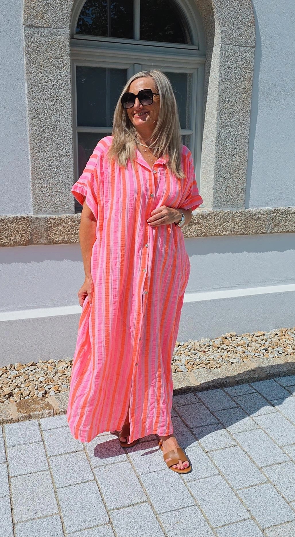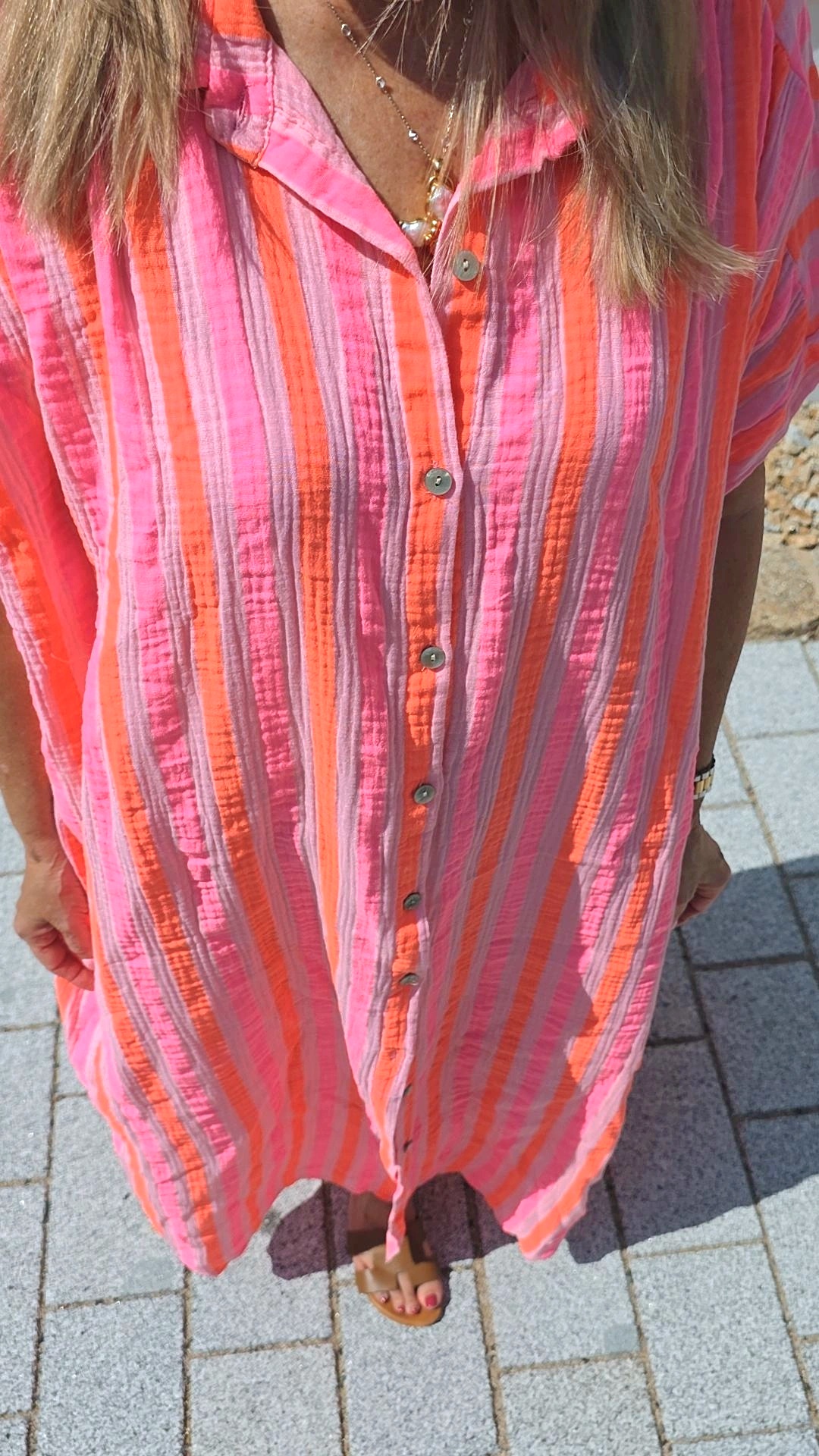 STRIPES ORANGE ROSA PINK MUSSELIN BLUSENKLEID PALERMO .1