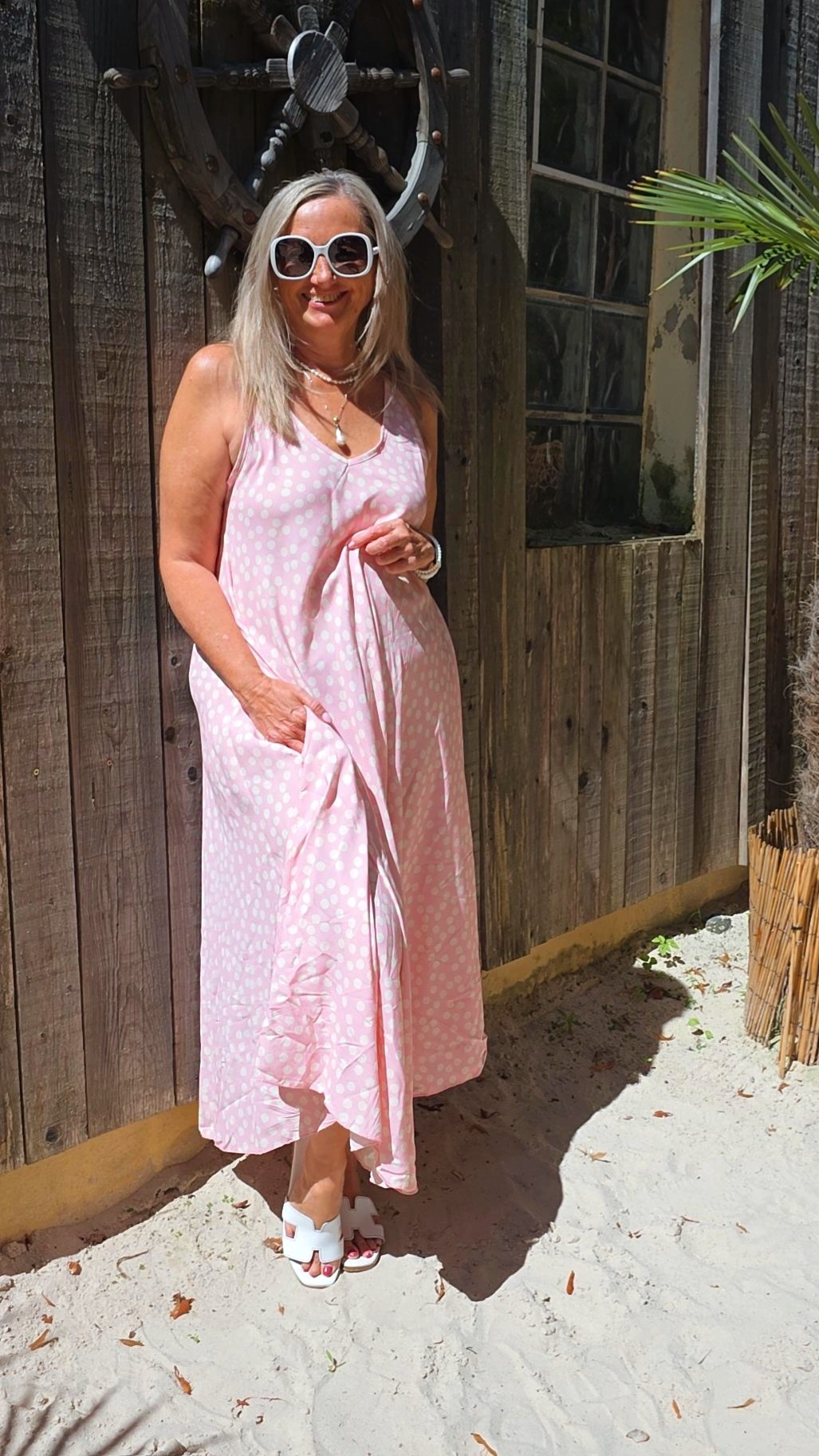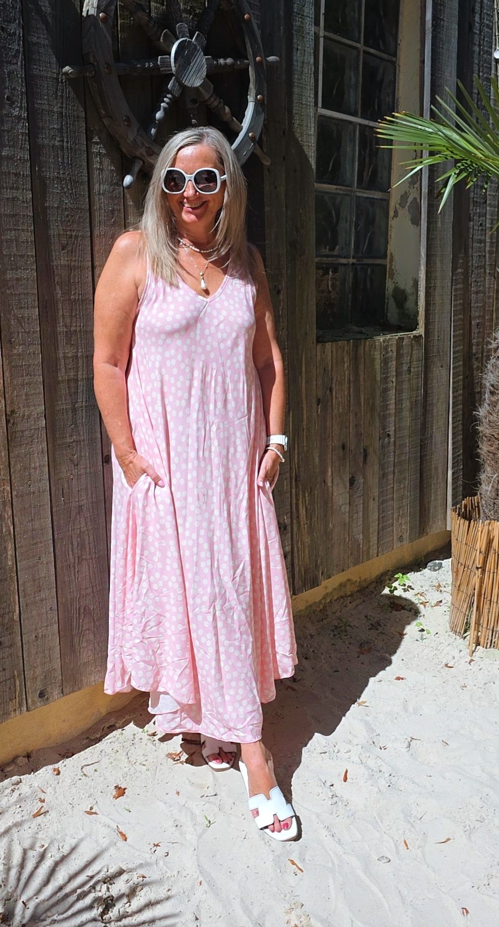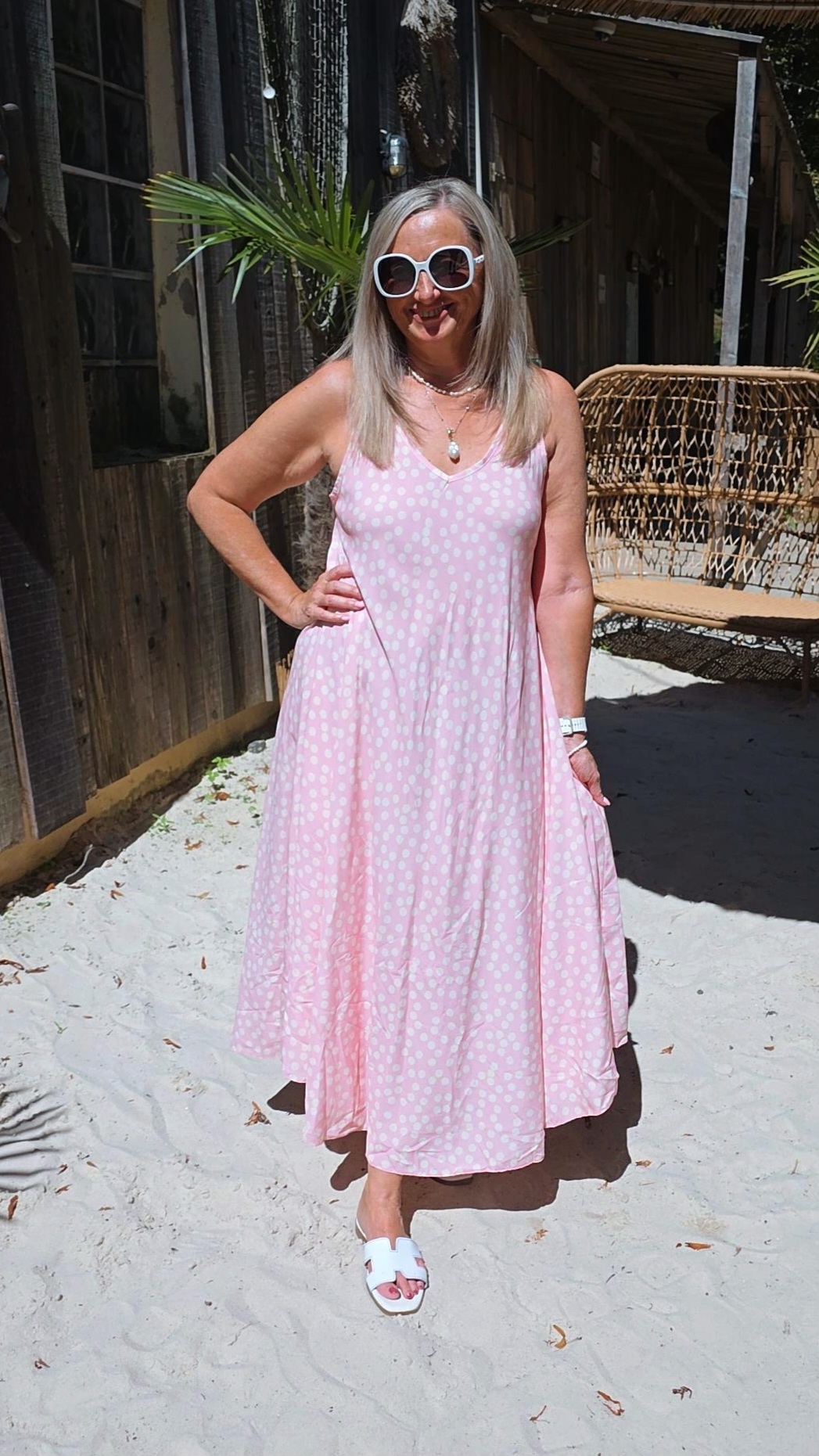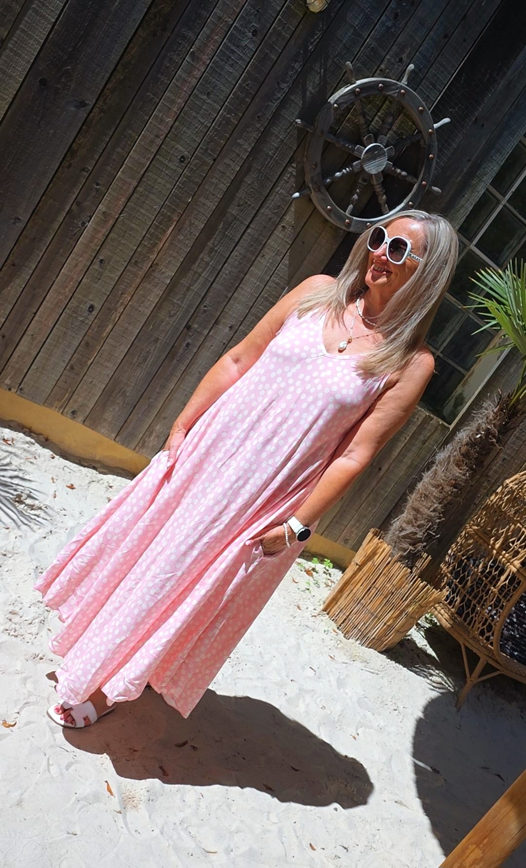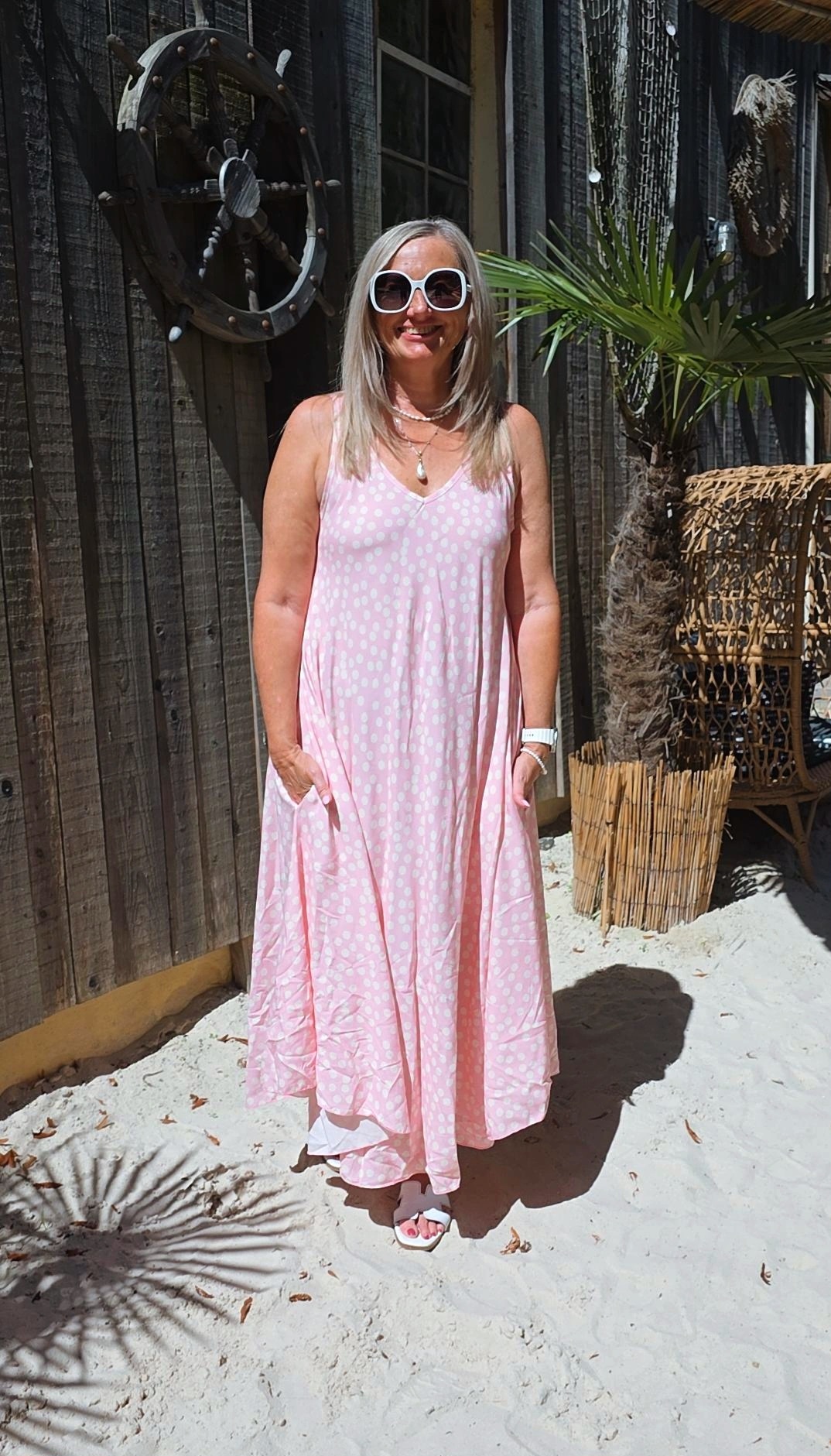 ROSA PÜNKTCHENKLEID VIVIAN ÄRMELLOS LANG .4
