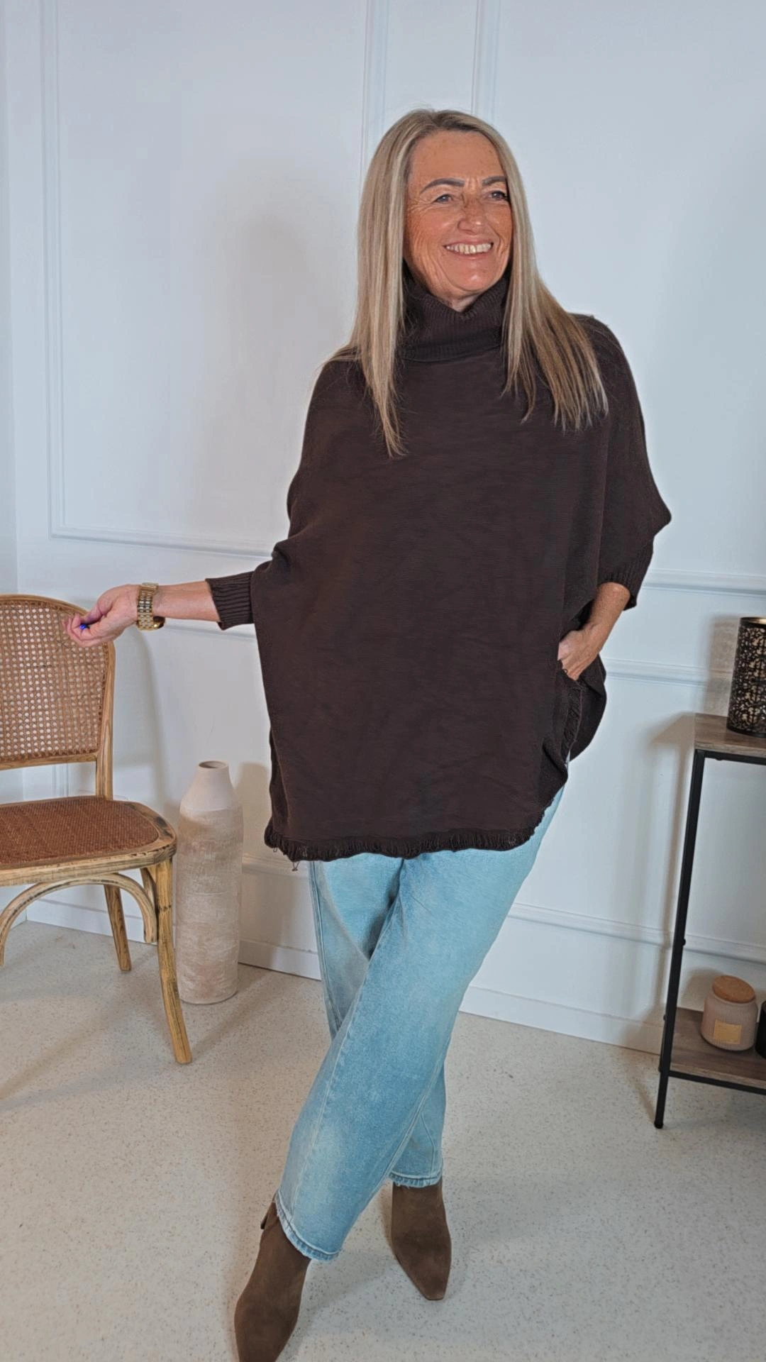 Unser Modell DORO ist ein traumhaft weicher Oversize Pullover für alle, die Komfort und Stil lieben. Der lässige Rollkragen und der leicht ausgefranste Saum verleihen dem Design eine moderne, feminine Note. Dank der angenehmen Tragequalität eignet sich DORO perfekt für kühle Tage – gemütlich, leicht und dennoch wärmend.