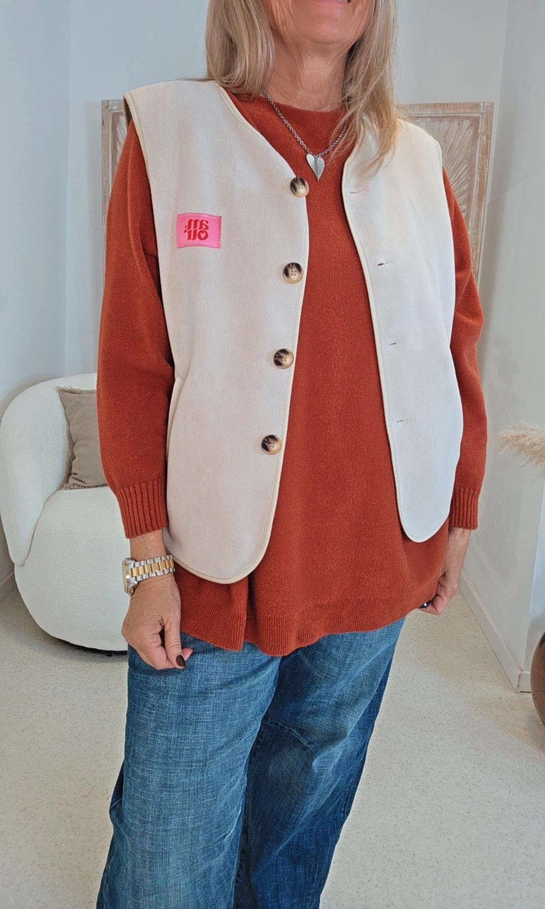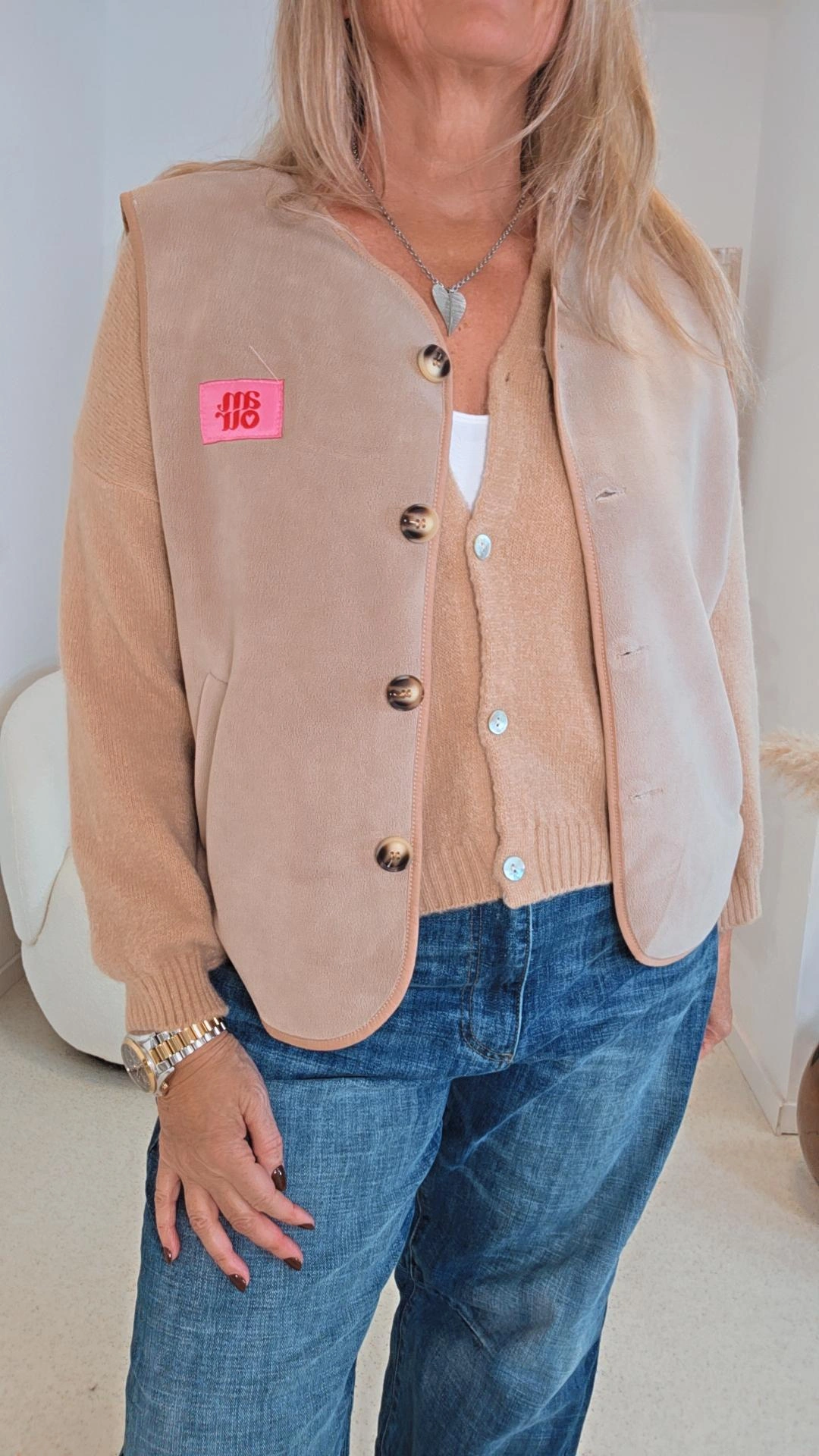 CREME FLEECE-WESTE PEGGY UNI MIT AMOUR-PATCH.1