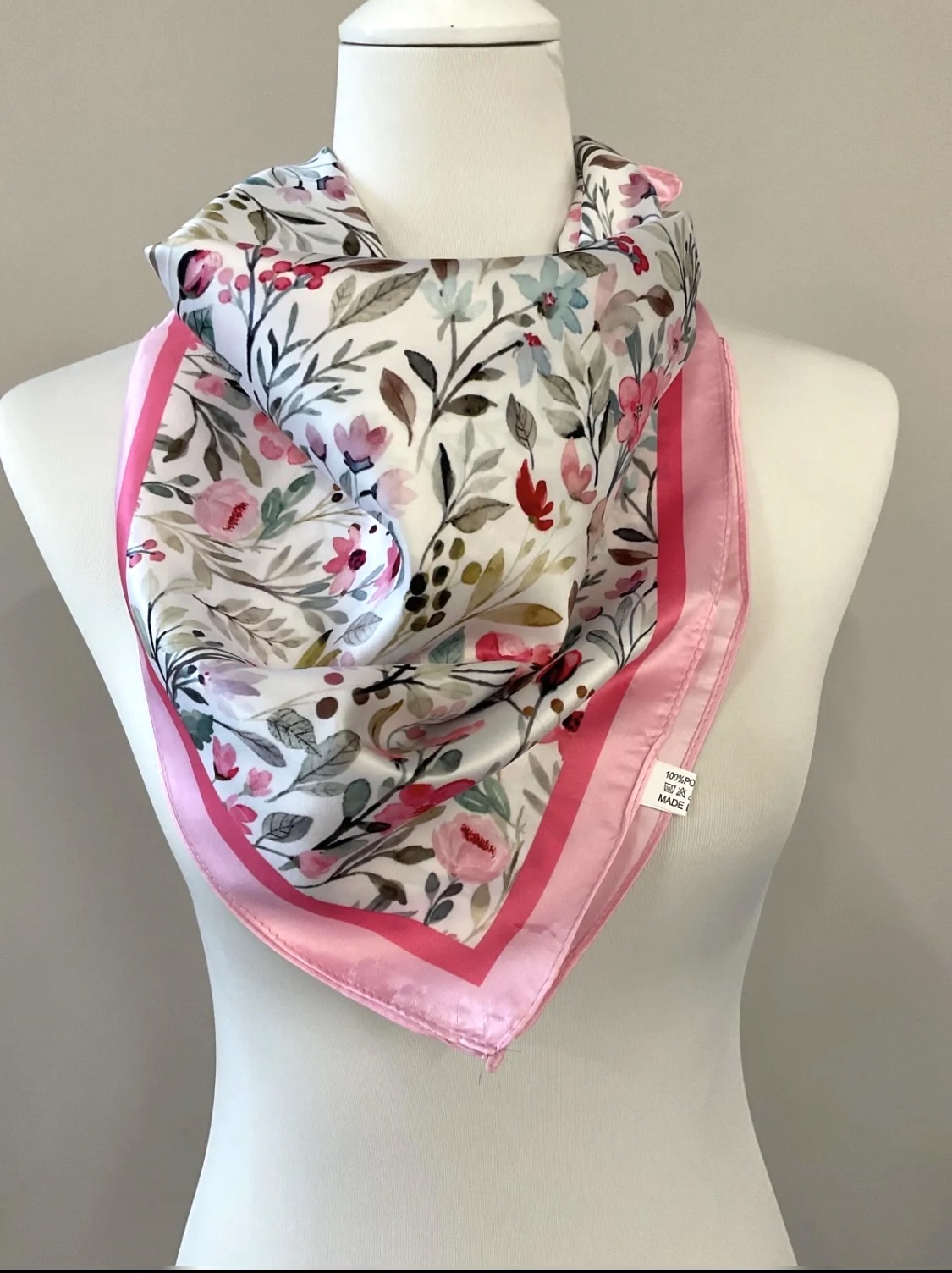 🌸 Tuch mit frühlingshaftem Blumenmuster | 70 × 70 cm | Silk Feeling
