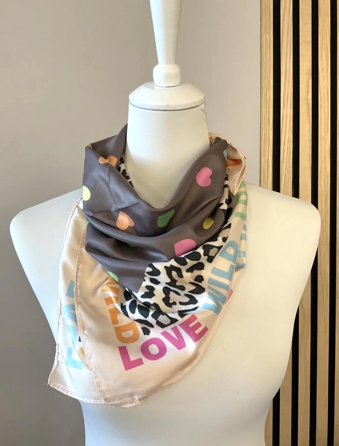 ❤️ Tuch „Wild Love“ – Herz & Leo Design | 70 × 70 cm | Silk Feeling