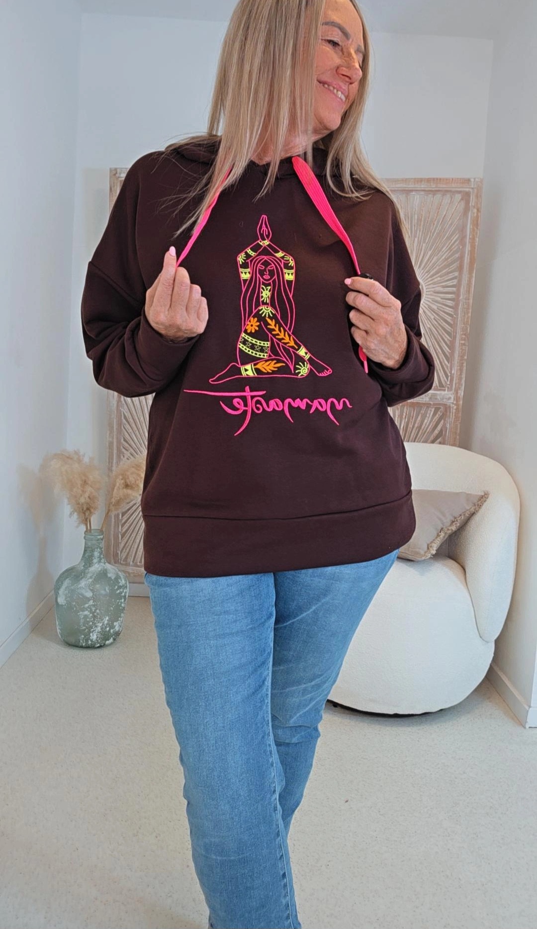 SCHOKO HOODIE ASANA MIT STICKEREI.2
