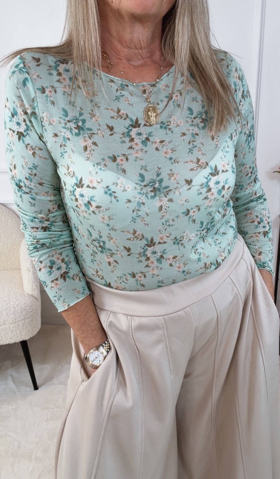 Dieses stilvolle Langarmshirt überzeugt mit seinem klassischen Rundhalsausschnitt und einem wunderschönen floralen Blumenmuster. Der feminine Print verleiht dem Shirt eine frische, moderne Ausstrahlung und macht es zu einem echten Blickfang – perfekt für Alltag, Büro oder Freizeit.