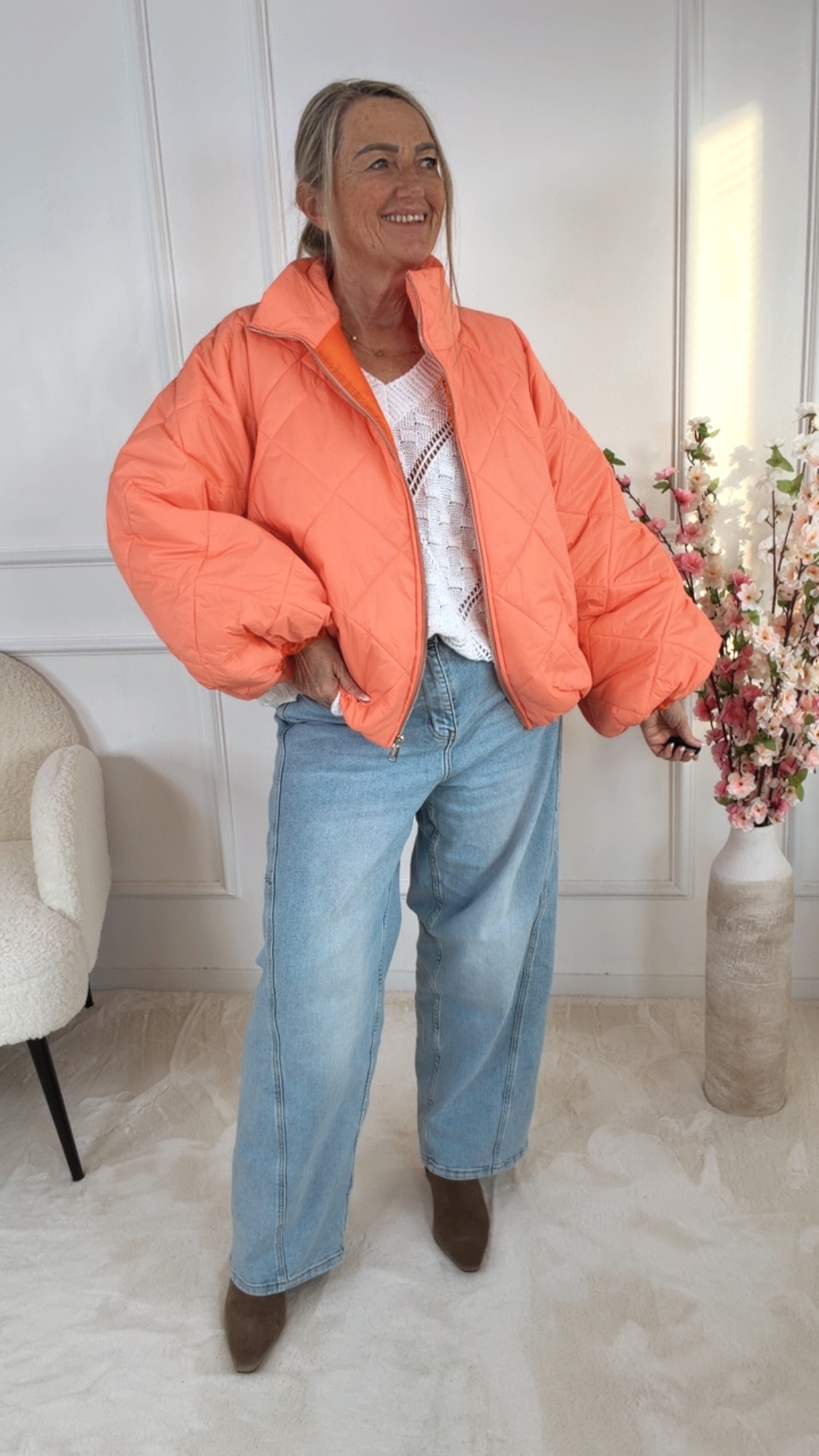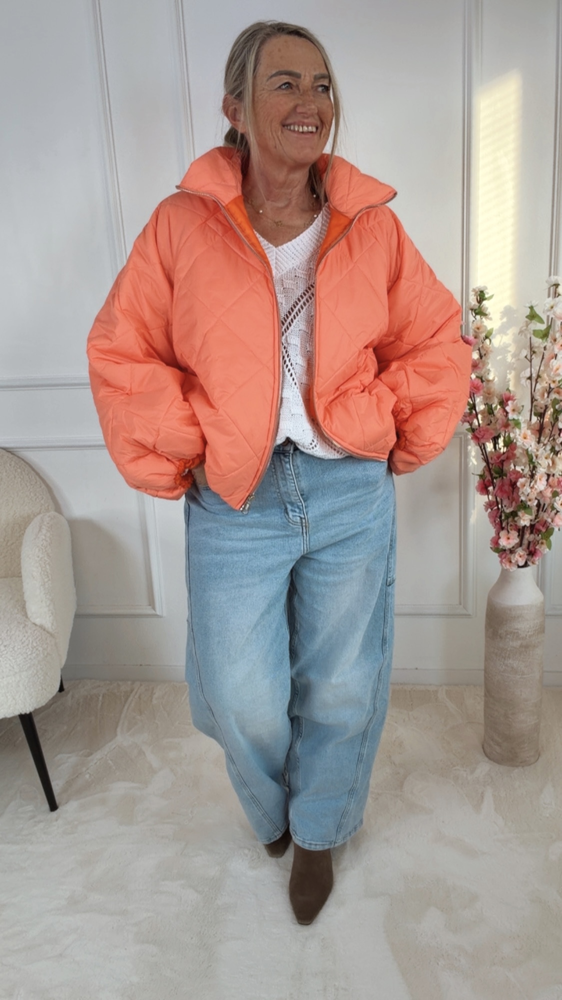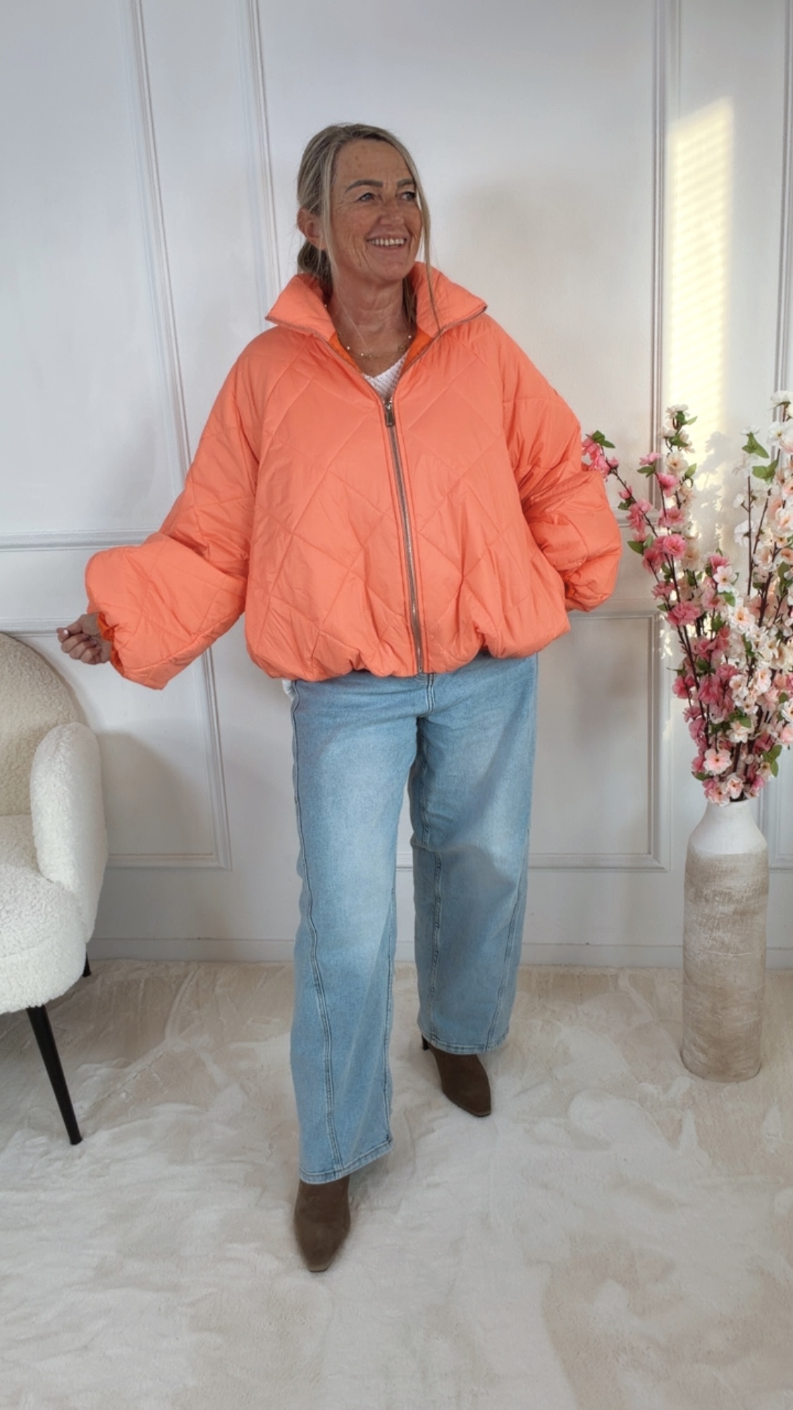 Diese trendige Puffjacke bringt Farbe und Leichtigkeit in die Übergangszeit. Mit ihrem voluminösen Schnitt sorgt sie für einen modernen, stylischen Look, während die weichen, frischen Frühlingsfarben sofort gute Laune verbreiten.
