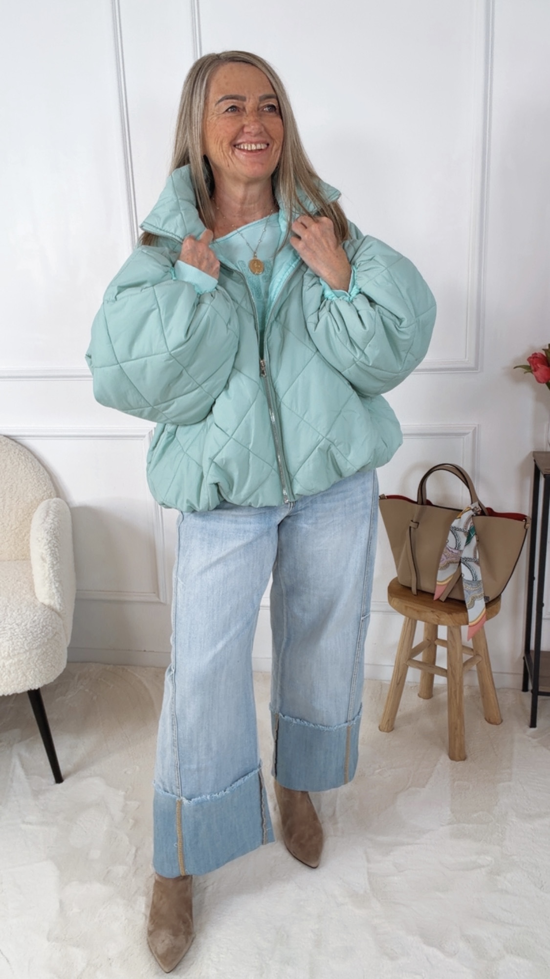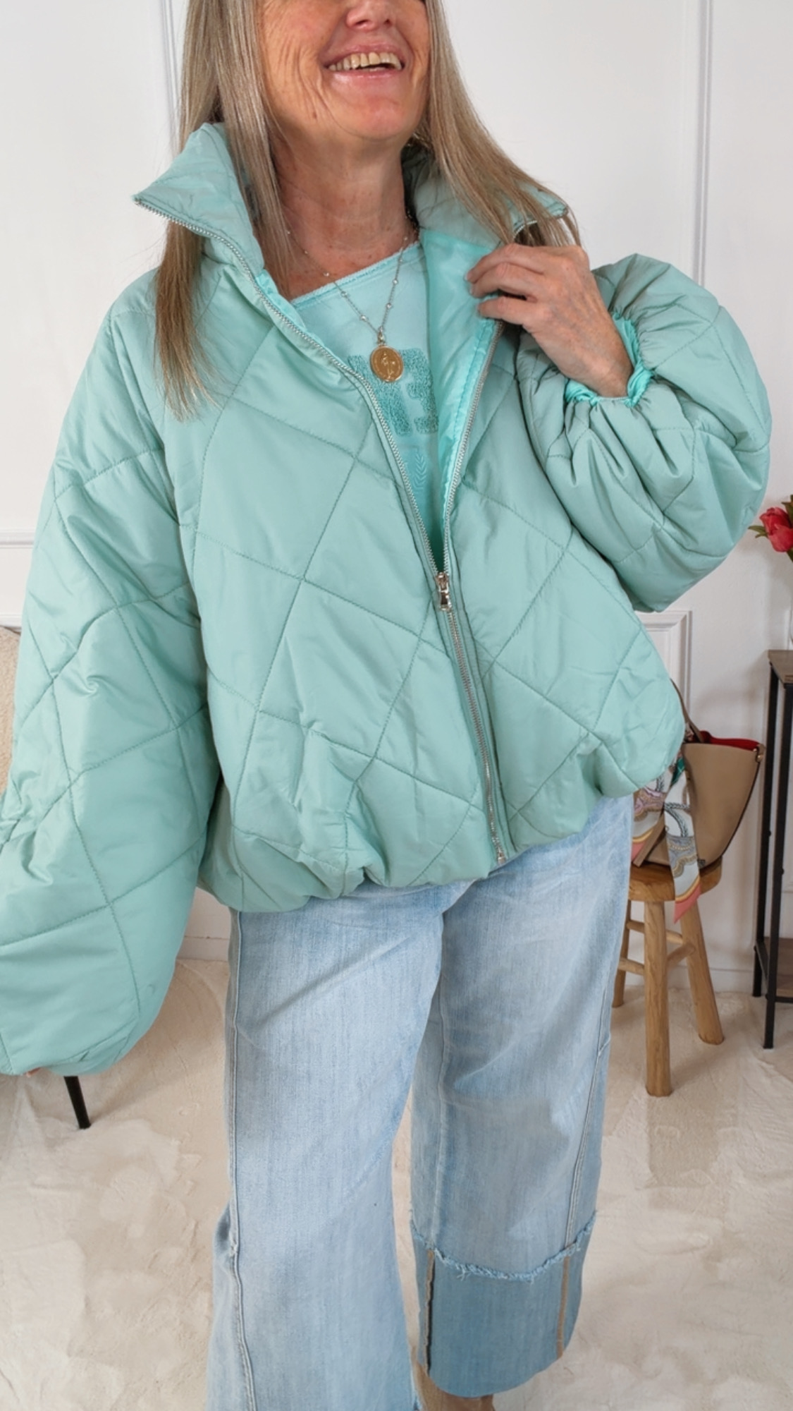 Diese trendige Puffjacke bringt Farbe und Leichtigkeit in die Übergangszeit. Mit ihrem voluminösen Schnitt sorgt sie für einen modernen, stylischen Look, während die weichen, frischen Frühlingsfarben sofort gute Laune verbreiten.