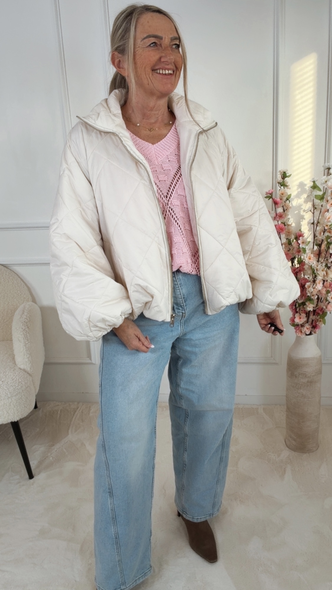 Diese trendige Puffjacke bringt Farbe und Leichtigkeit in die Übergangszeit. Mit ihrem voluminösen Schnitt sorgt sie für einen modernen, stylischen Look, während die weichen, frischen Frühlingsfarben sofort gute Laune verbreiten.