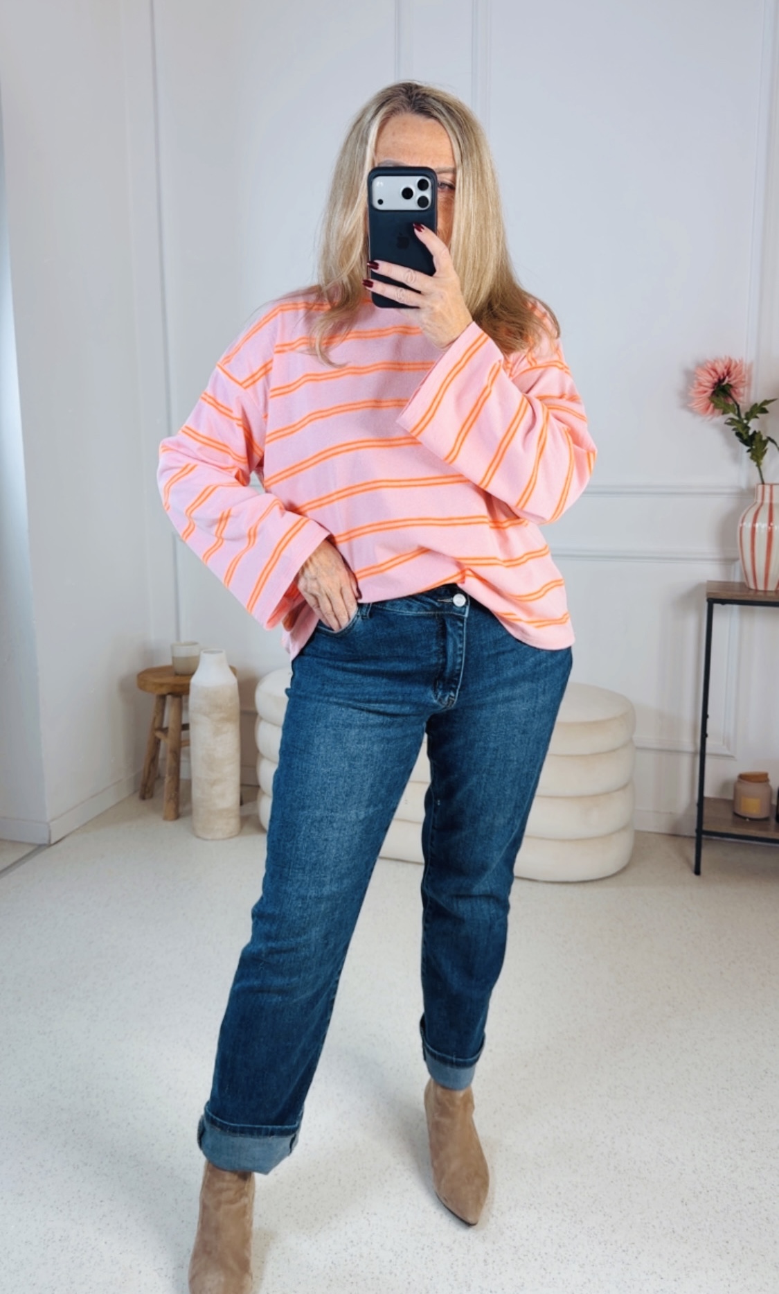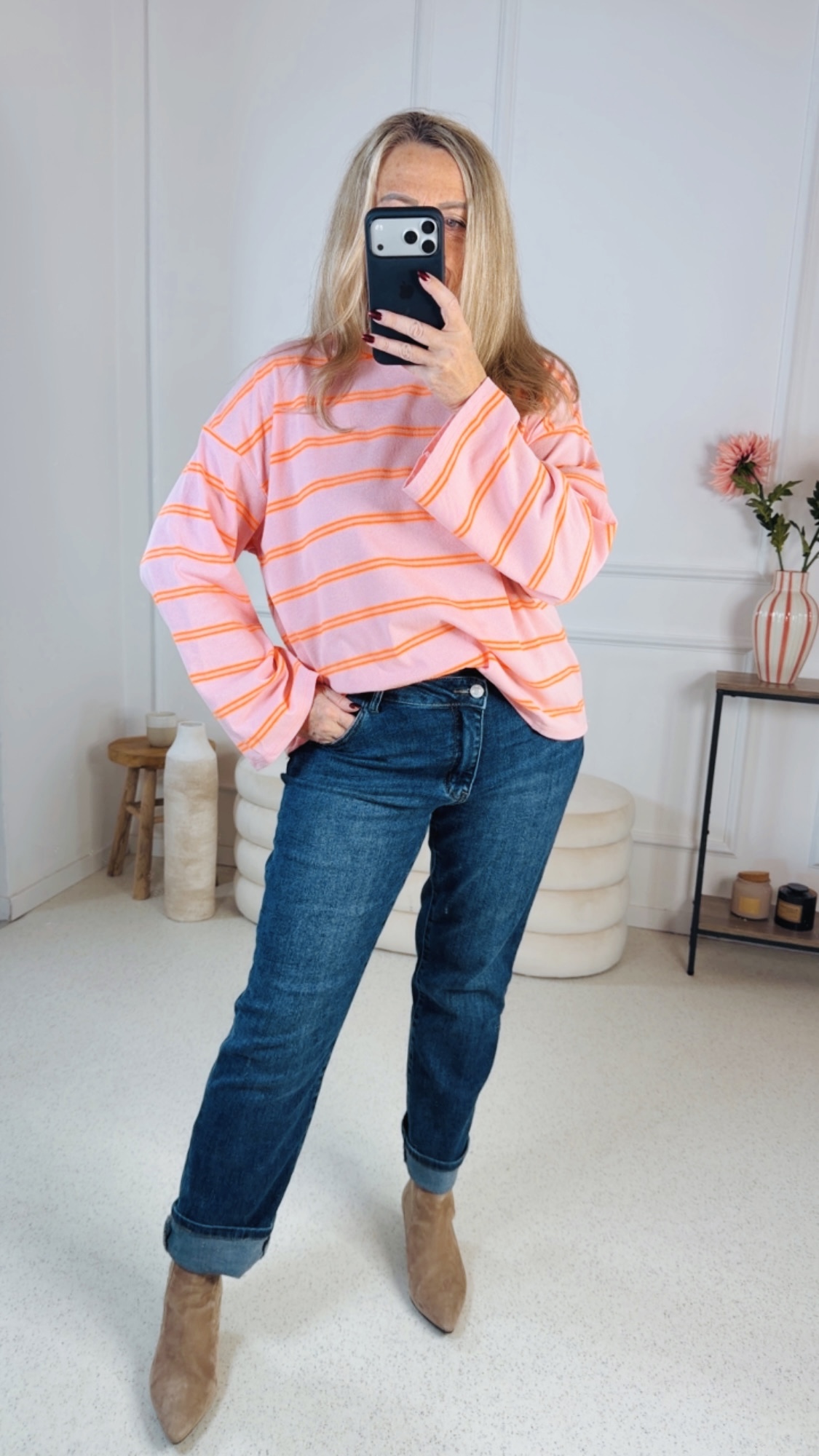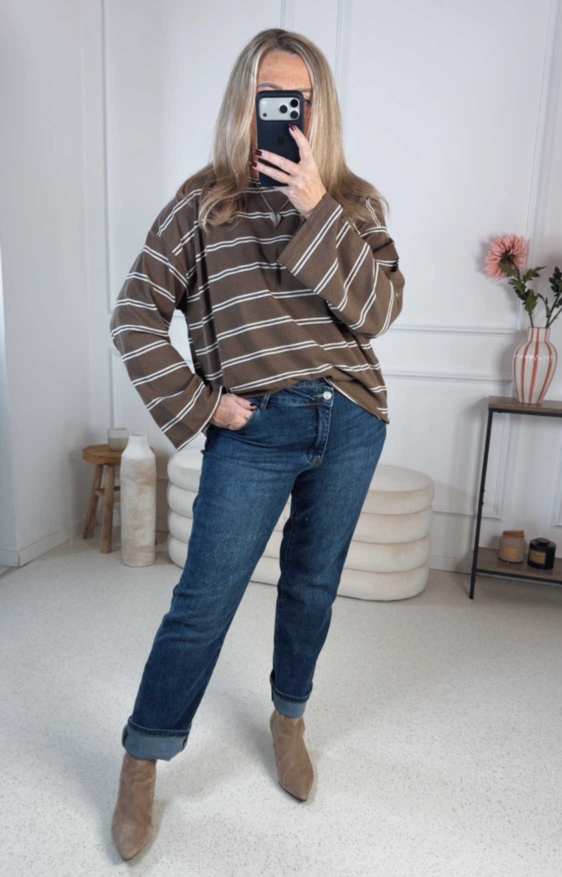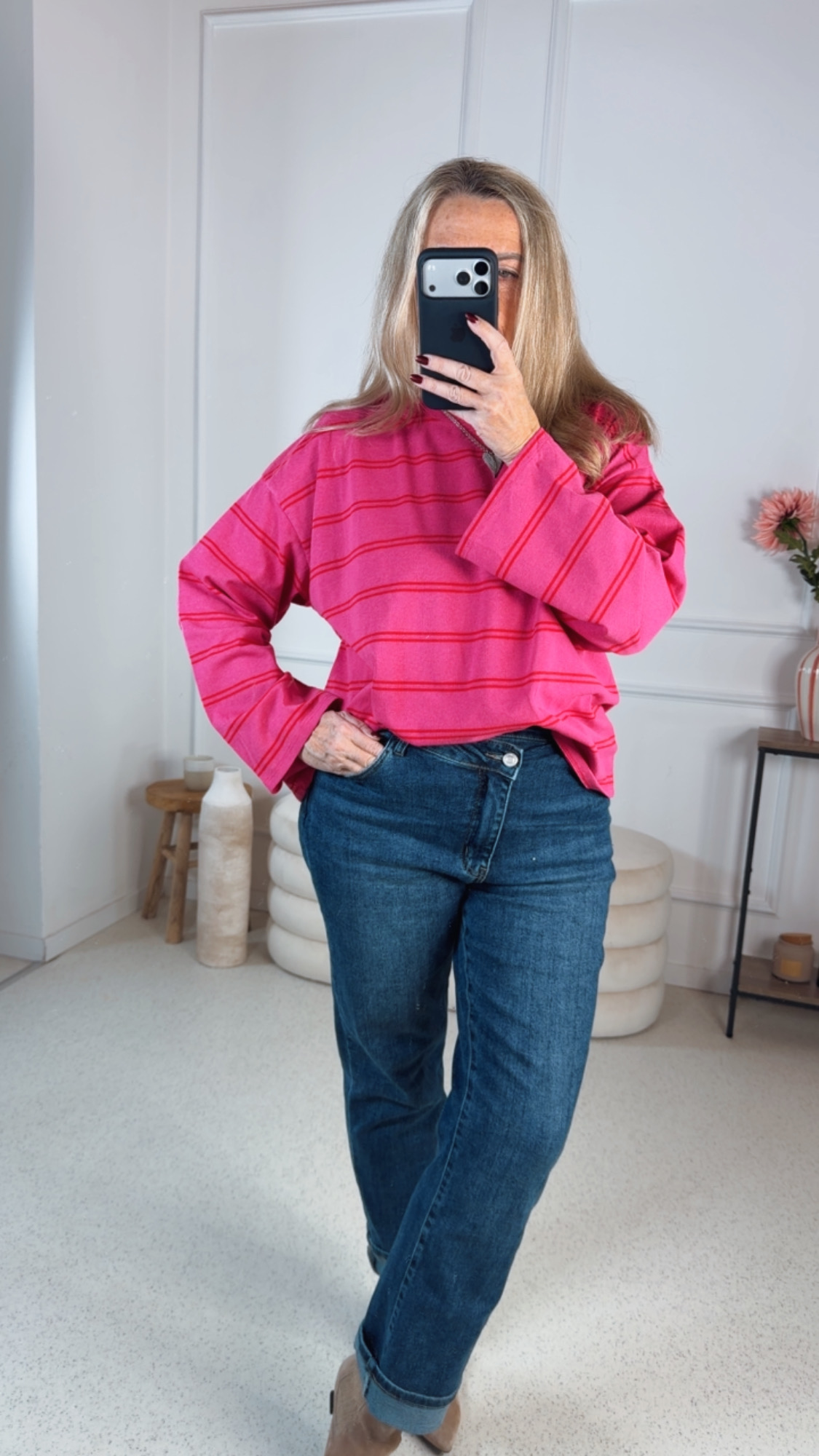 Gefertigt aus einem hochwertigen, elastischen Denim-Material bietet die Jeans angenehmen Tragekomfort und optimale Bewegungsfreiheit. Ob lässig kombiniert mit Sneakern oder elegant mit Absatzschuhen – diese Jeans ist ein vielseitiger Allrounder für jeden Tag.