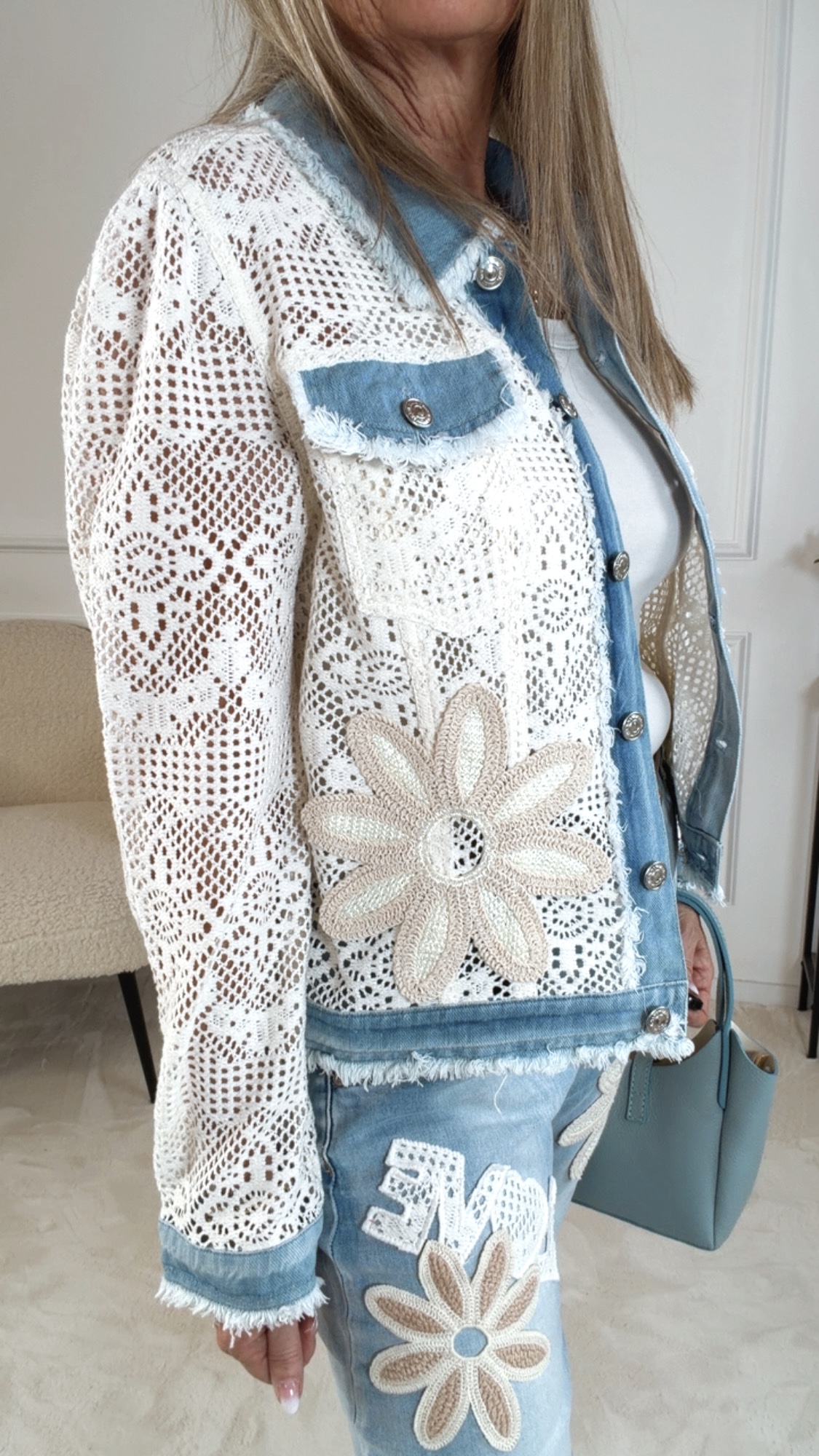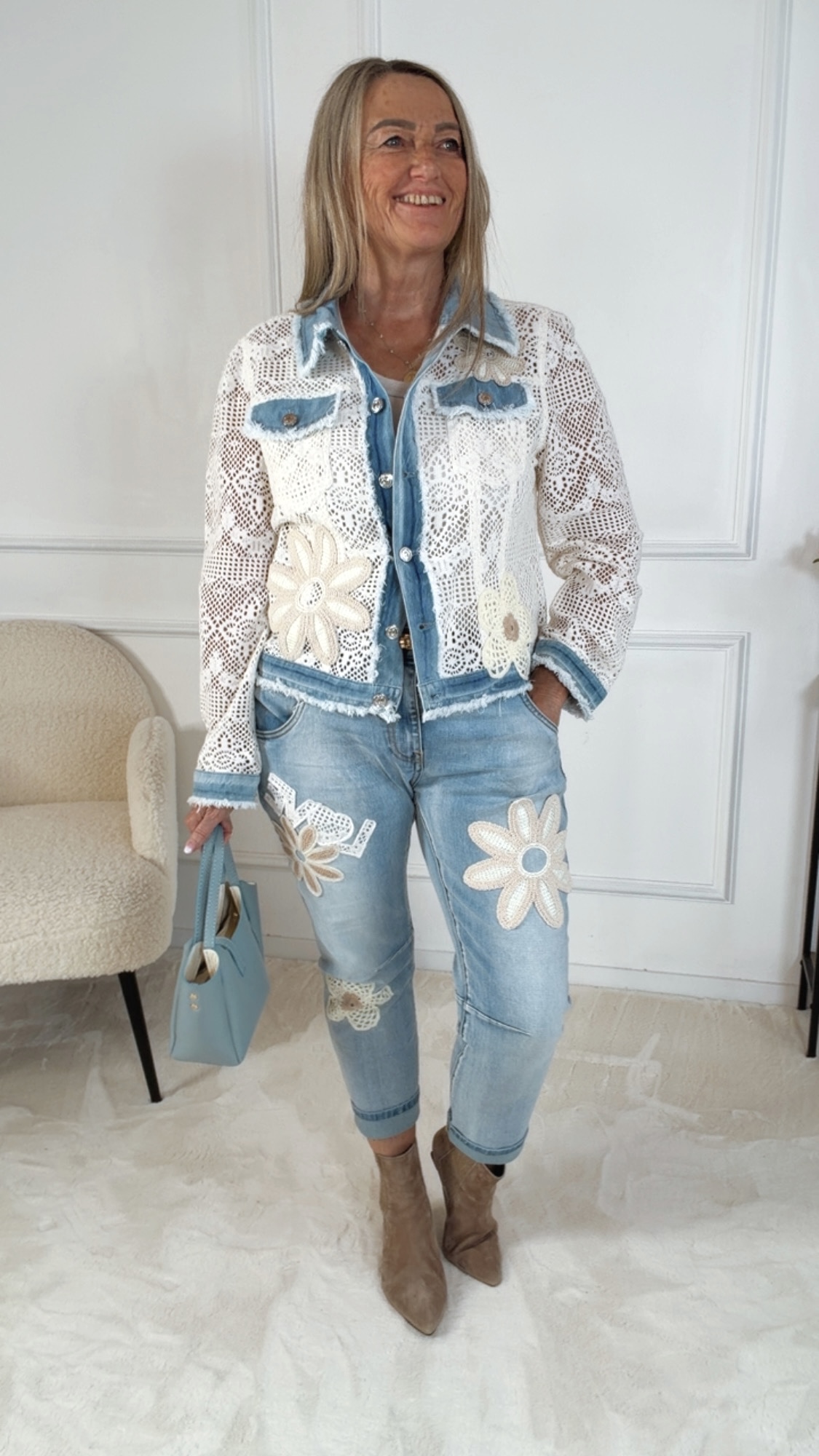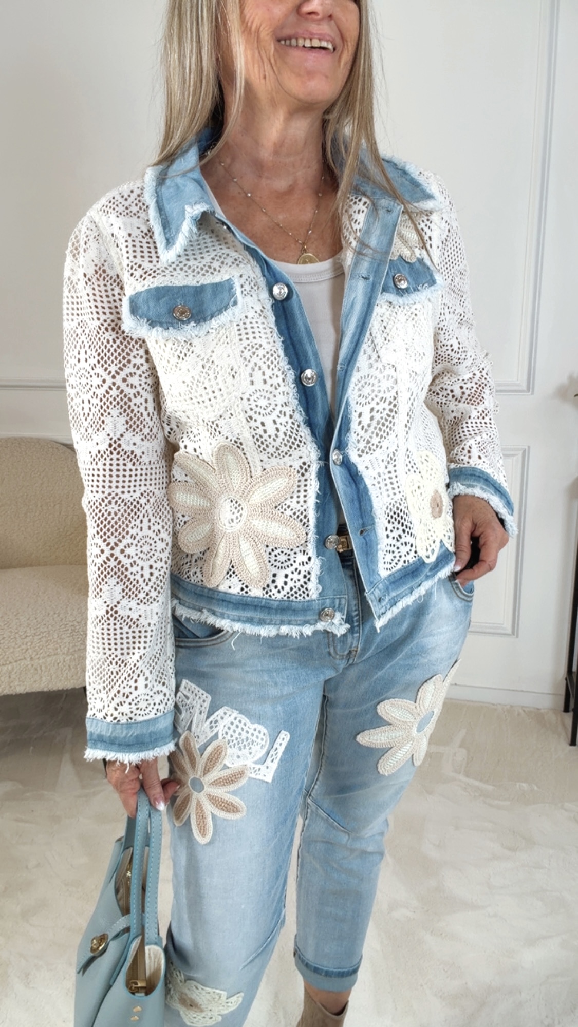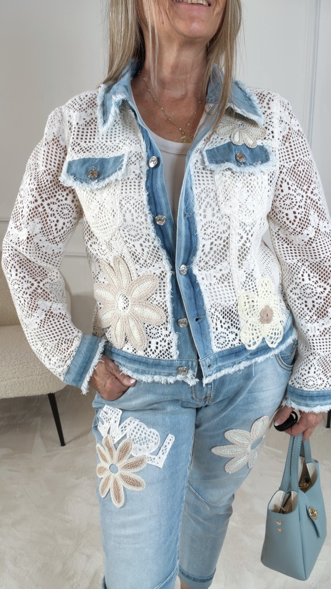 JENSJACKE SPITZE MARIS MIT DENIM DETAILS UND BLUMENSTICKEREI Italy Style 34 - 38 SW 5079