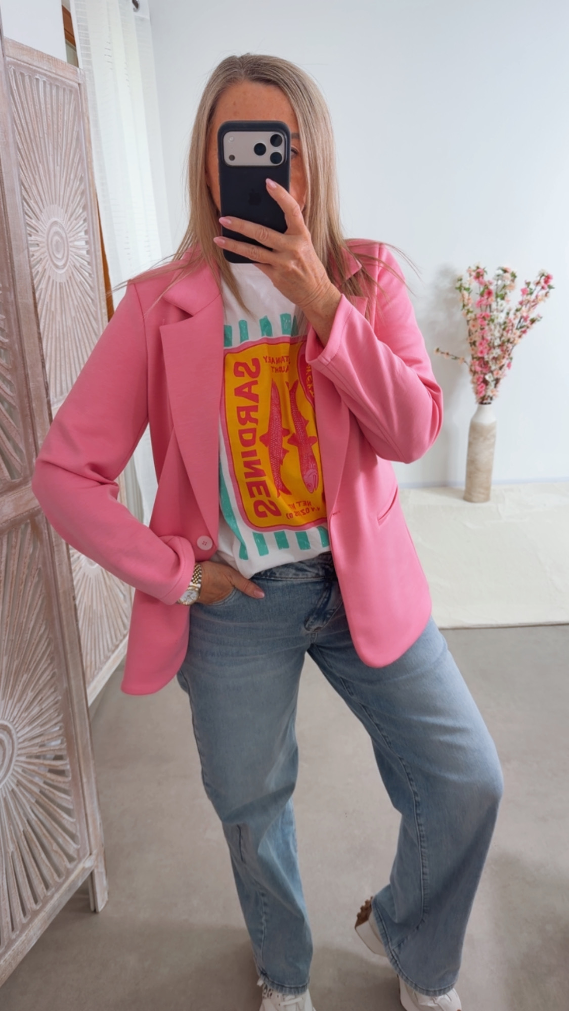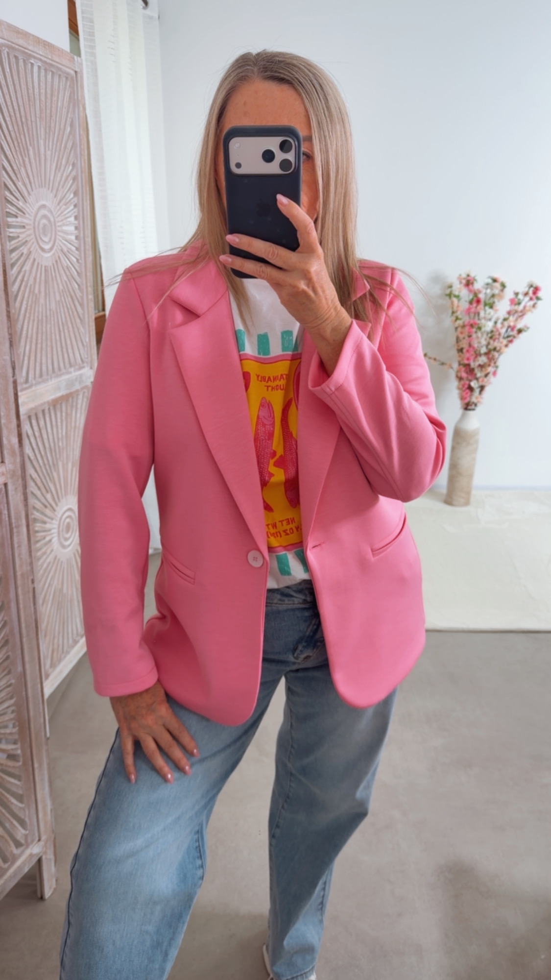 Der Blazer überzeugt mit seinem cleanen Schnitt, Reverskragen und praktischen Details und lässt sich sowohl schick als auch casual stylen 👖👗✨