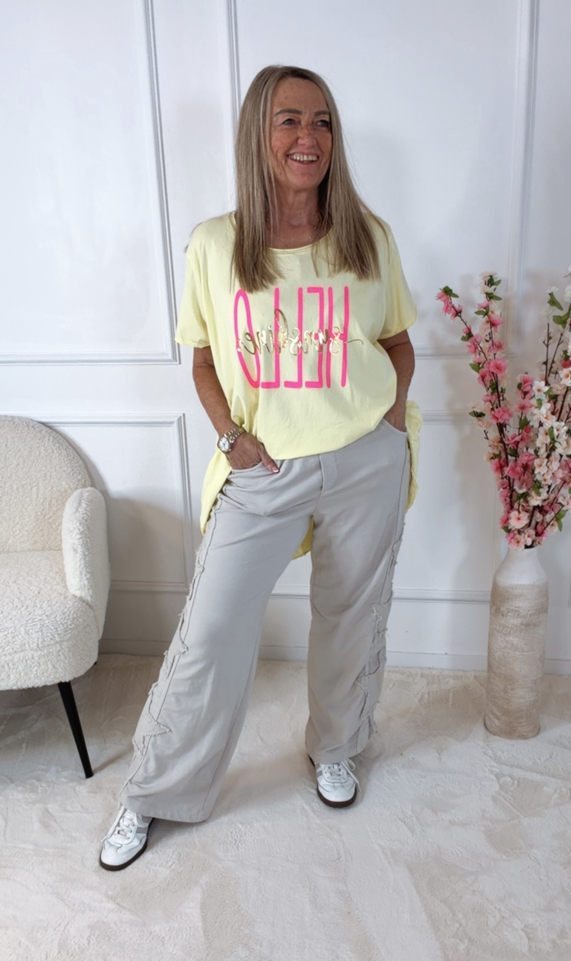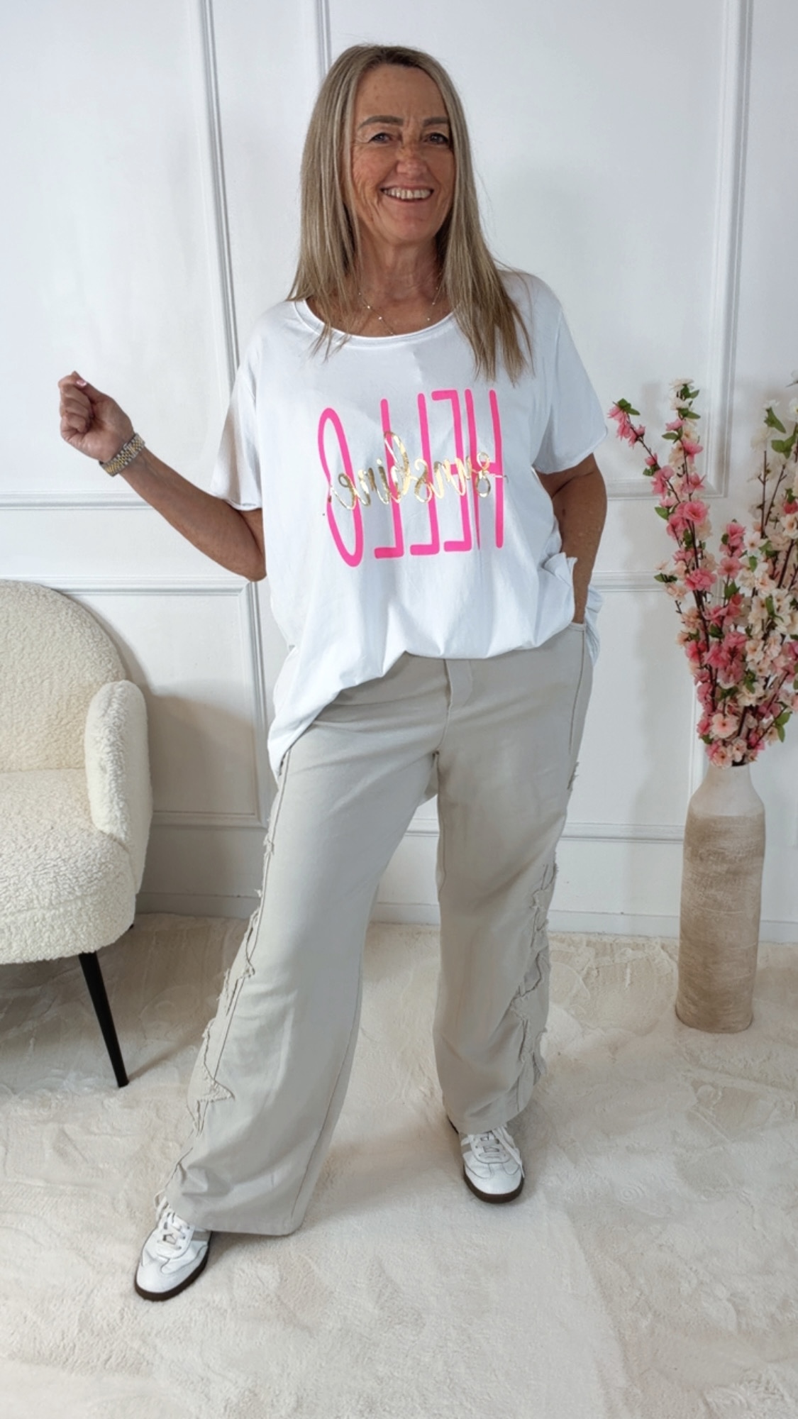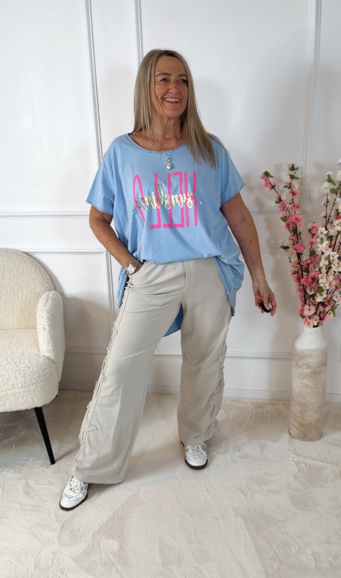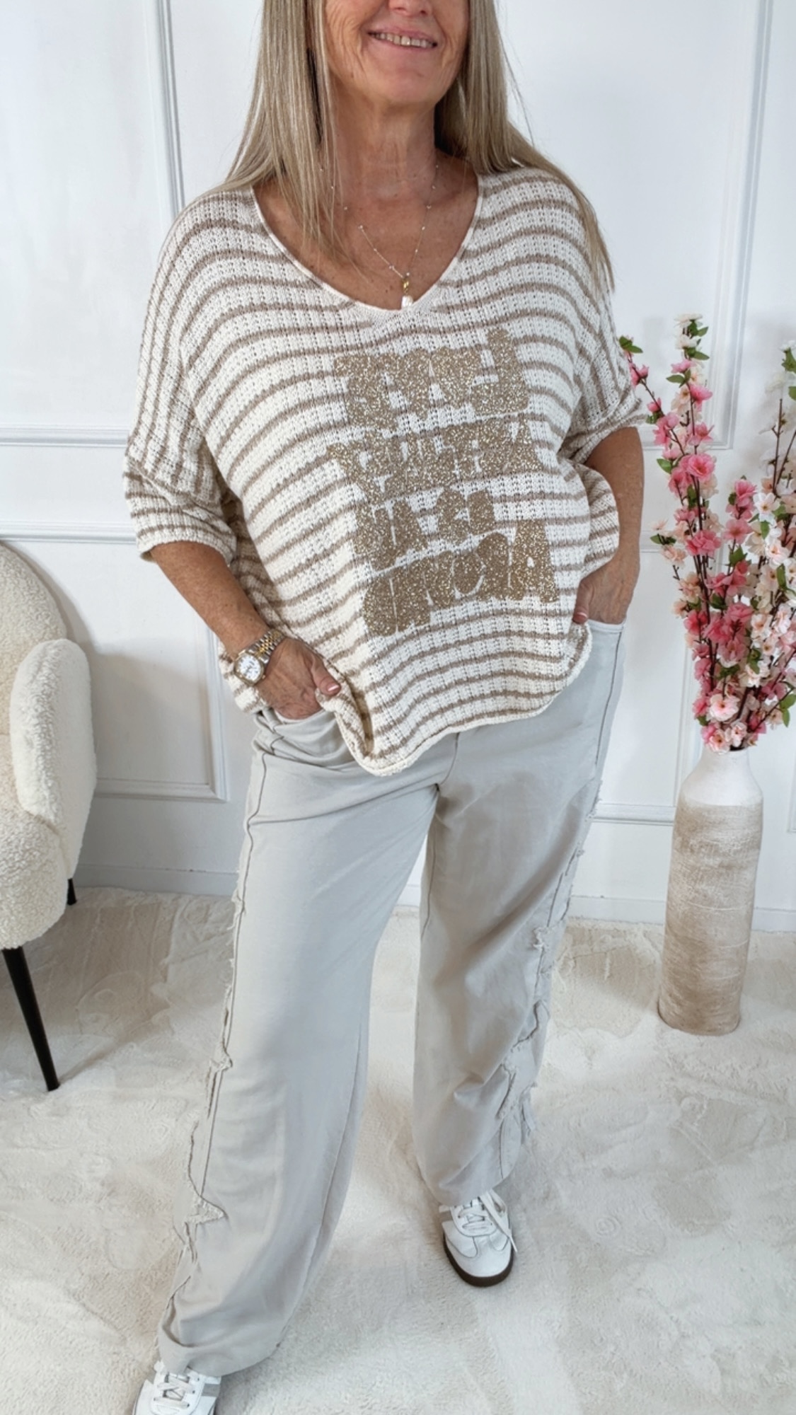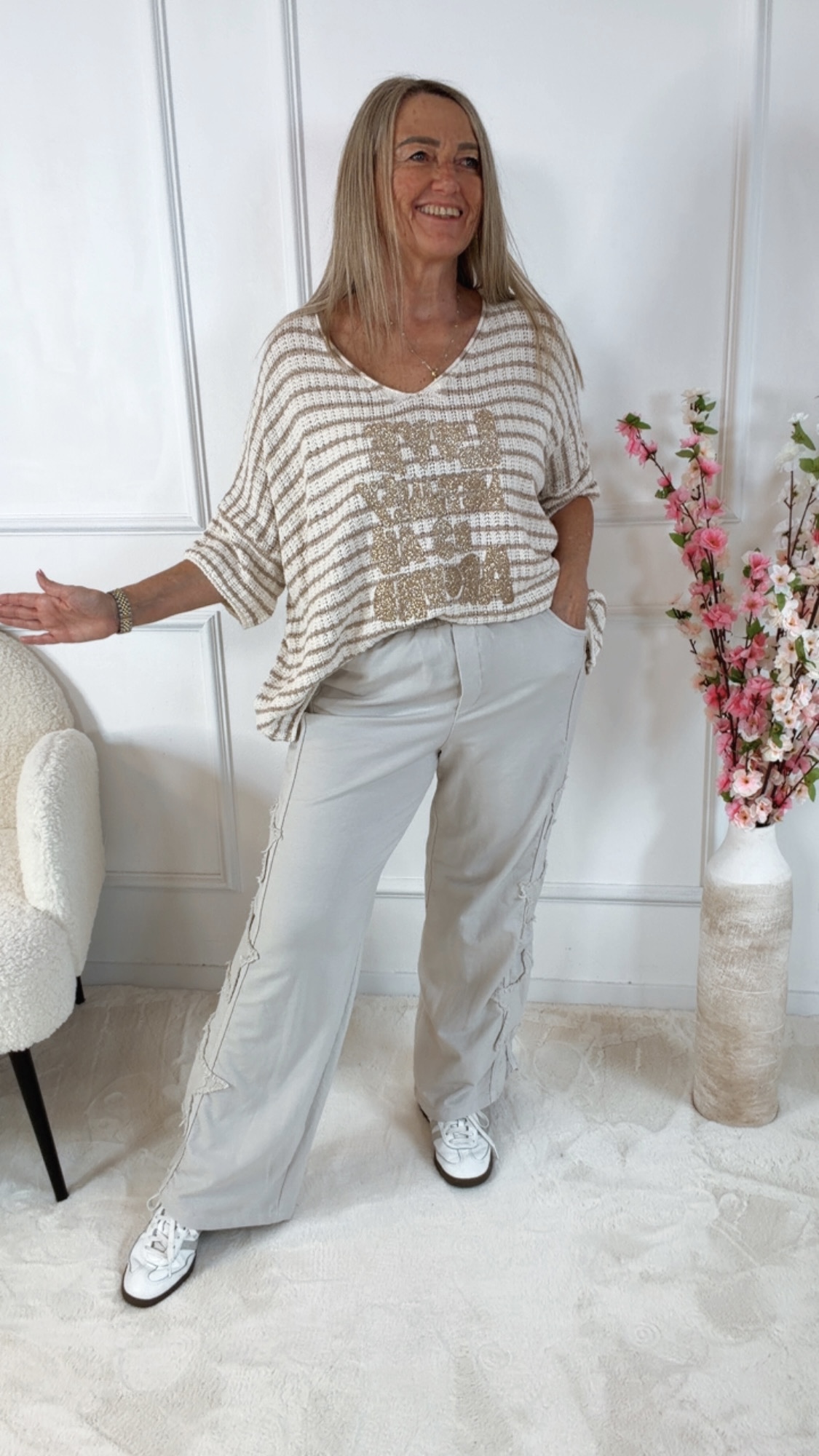 Kombiniere die Jogpant mit Sneakern und einem lockeren Shirt für einen coolen Casual-Look oder mit einem Strickpullover für ein entspanntes Wohlfühl-Outfit. 👖👟✨