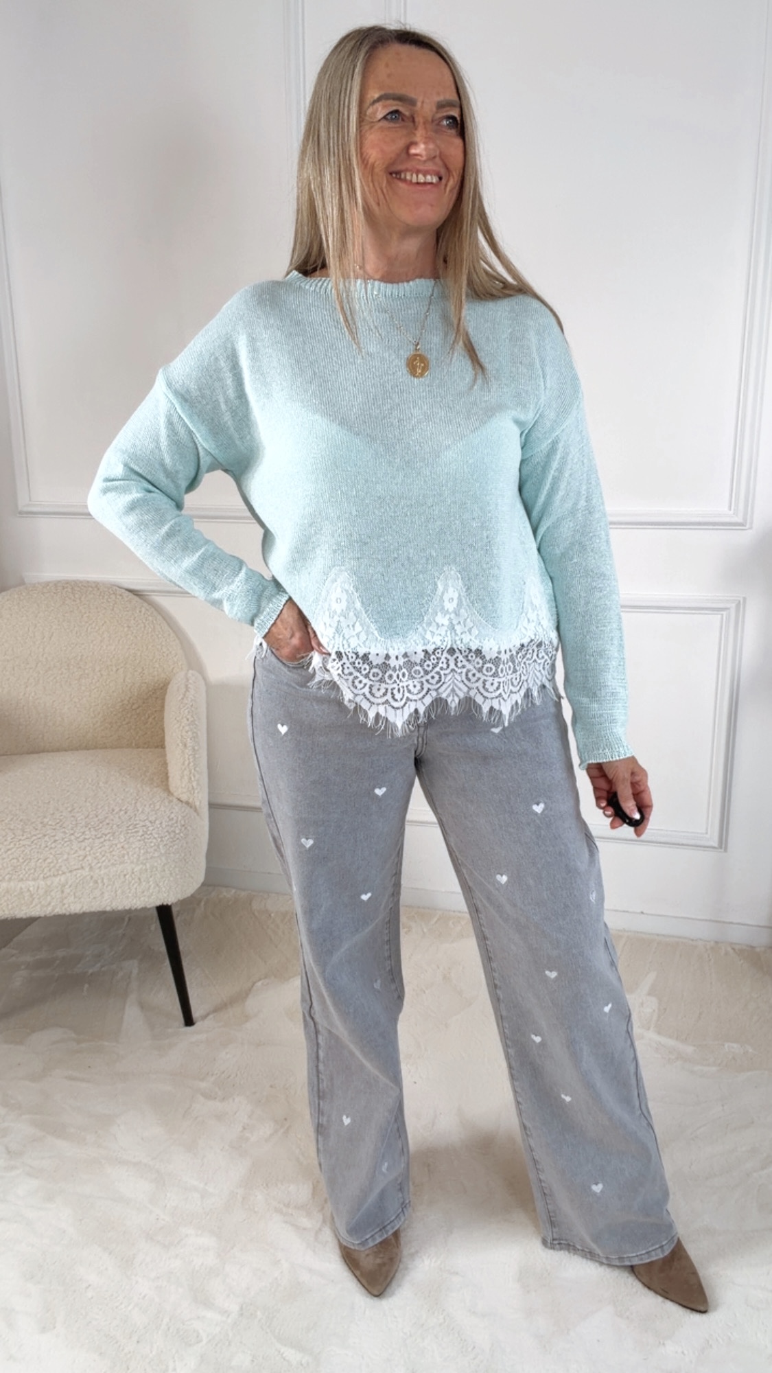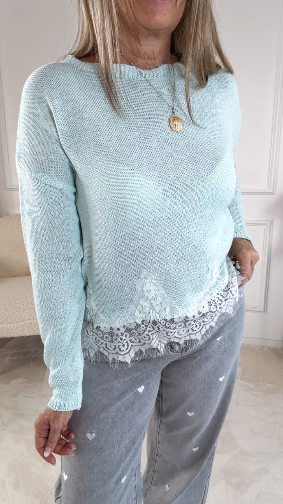 Knit Sweater mit Spitzenabschluss – Trendige Frühlingsfarben
