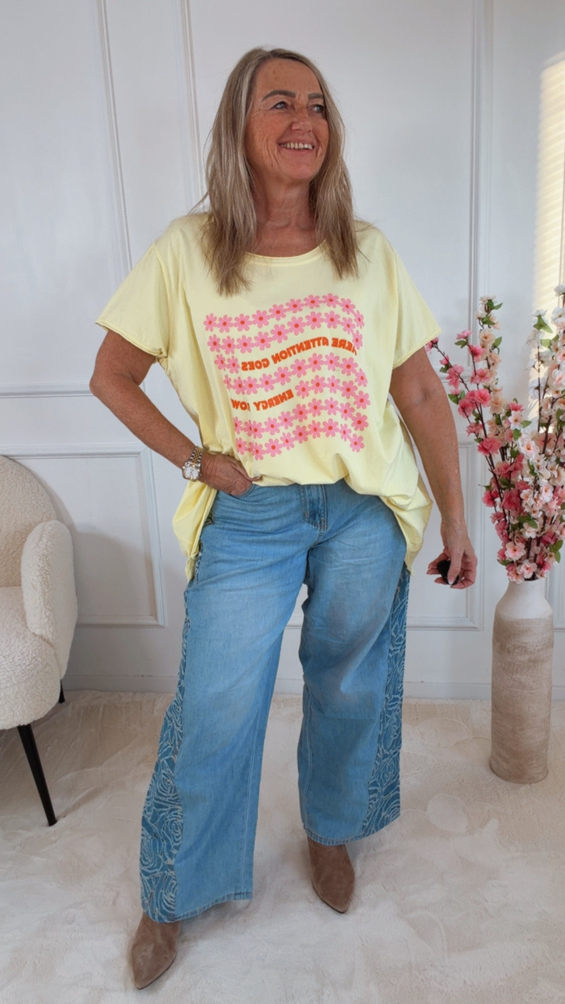 Die „Rosalinda“ Jeans vereint klassischen Denim-Look mit einem besonderen Design-Highlight 💙. Die wunderschönen seitlichen Rosenmuster verleihen dieser Jeans eine elegante und zugleich moderne Ausstrahlung 🌹. Dadurch wird sie zu einem echten Statement-Piece für stilvolle Alltagslooks.