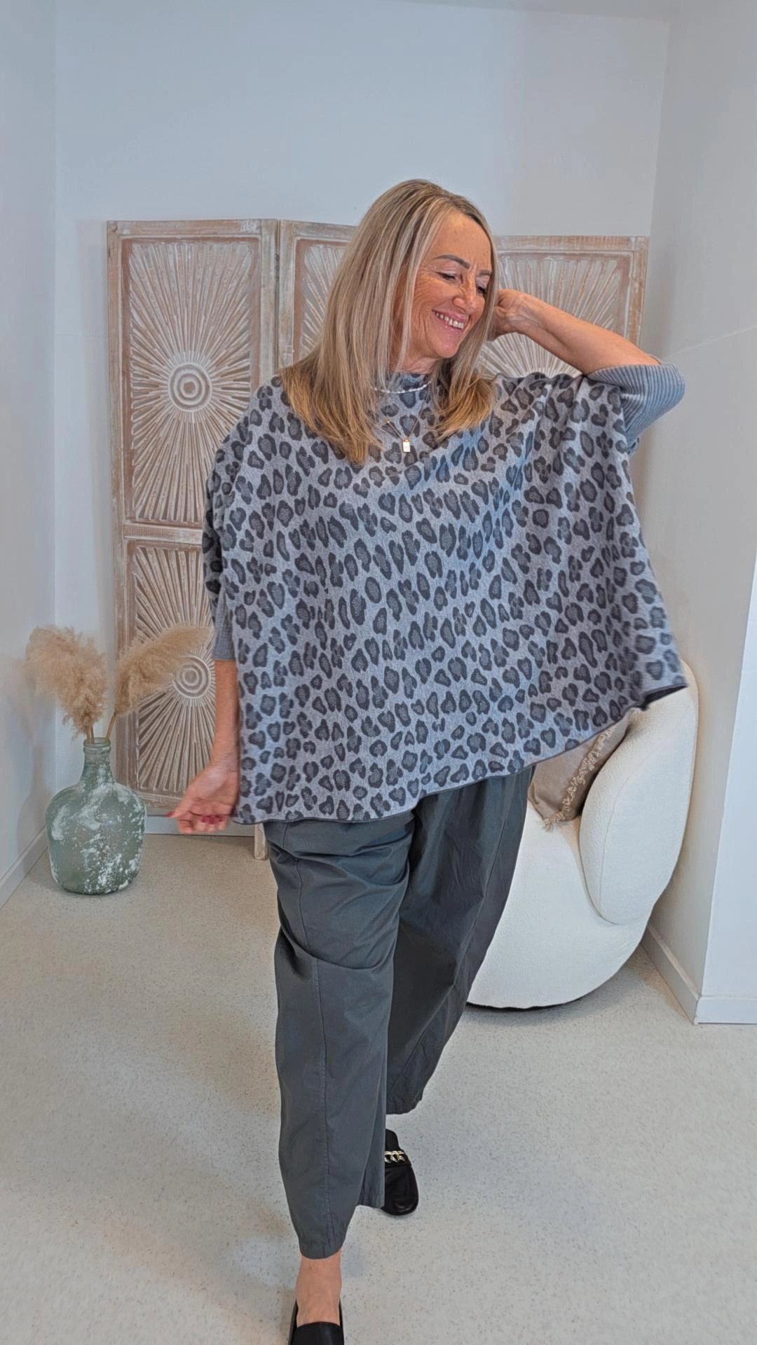 LÄSSIGER LEO-STRICKPULLOVER DAVINA Fledermaus-Schnitt 34-48 Made in Italy