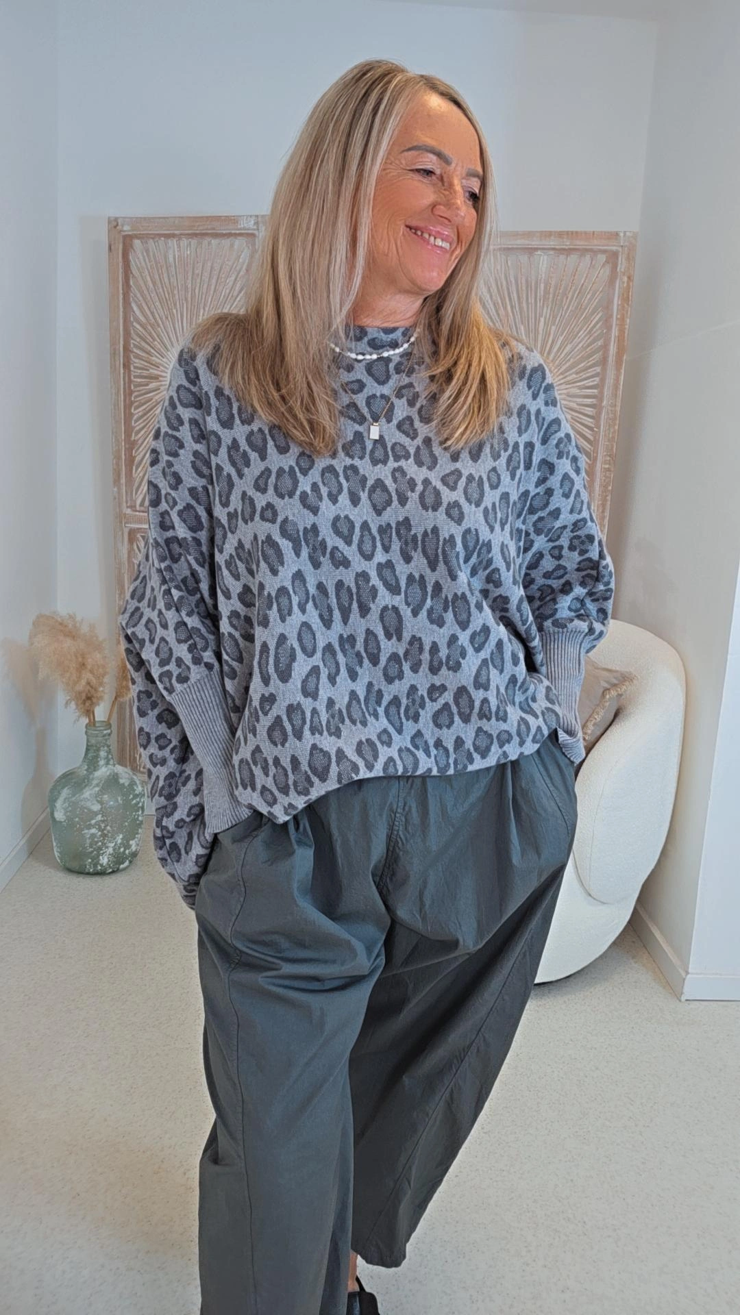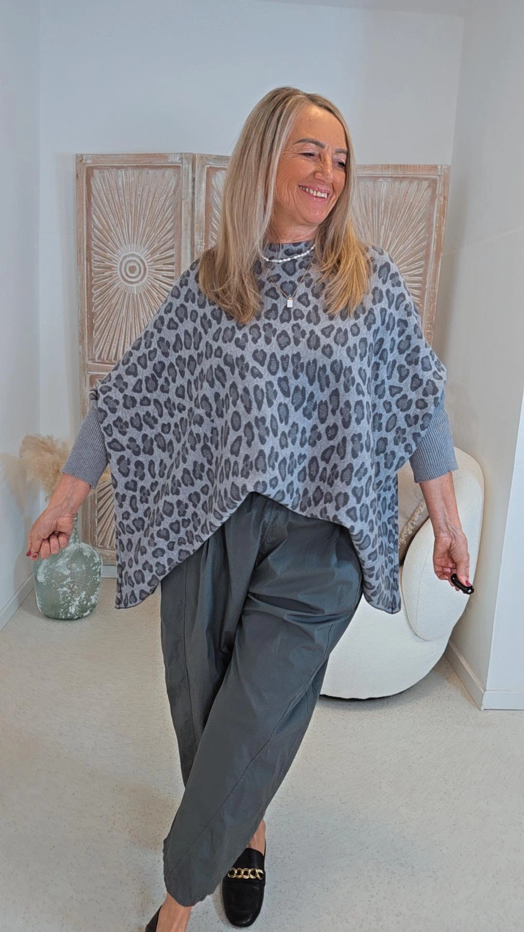 LÄSSIGER LEO-STRICKPULLOVER DAVINA Fledermaus-Schnitt 34-48 Made in Italy