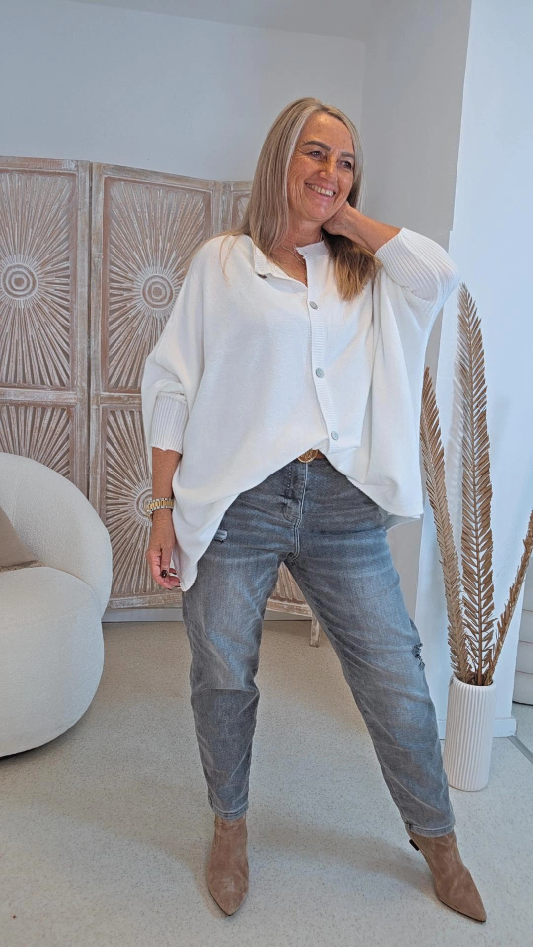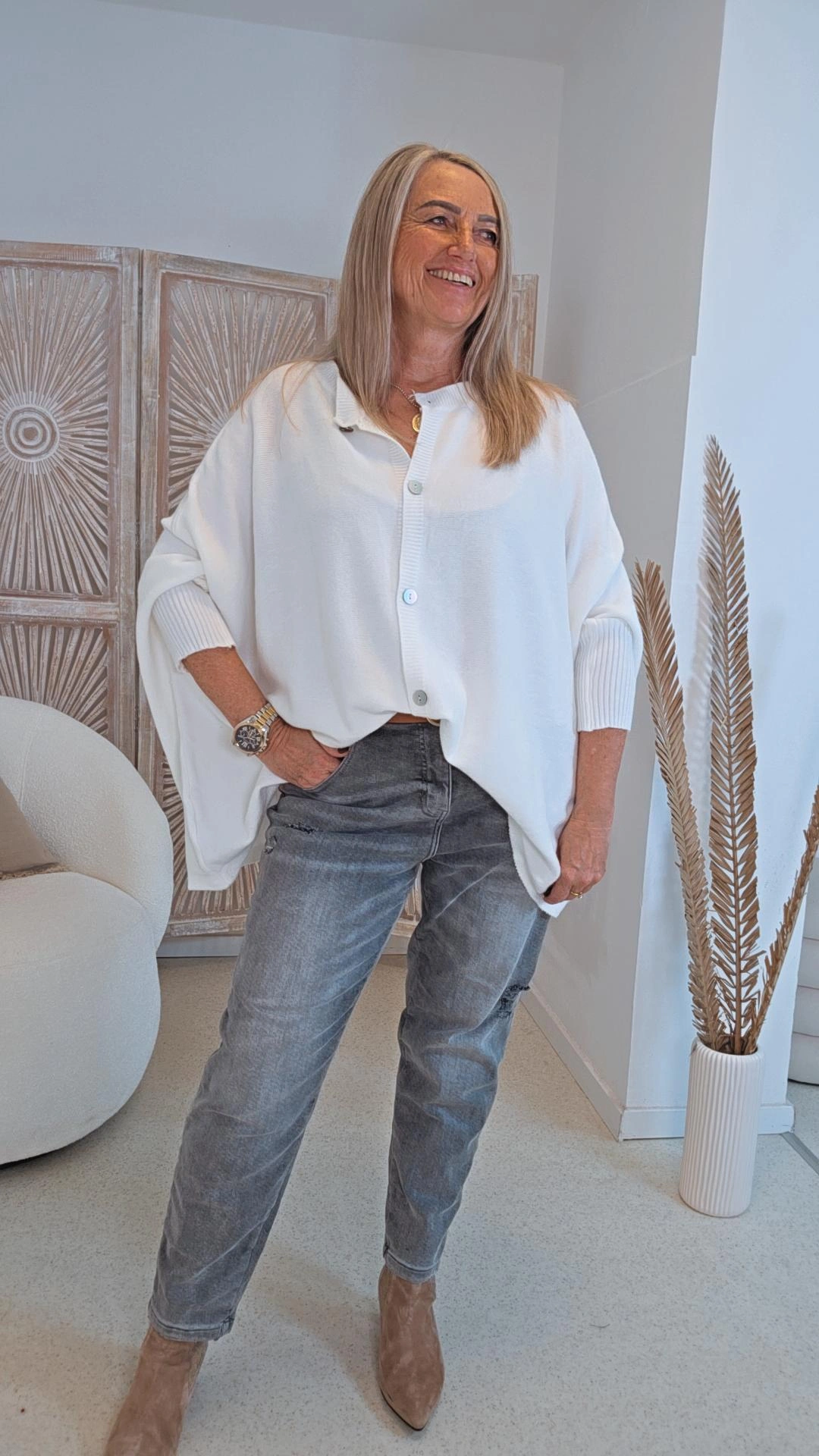WEISS LÄSSIGER STRICK-CARDIGAN FRANZI UNI.1