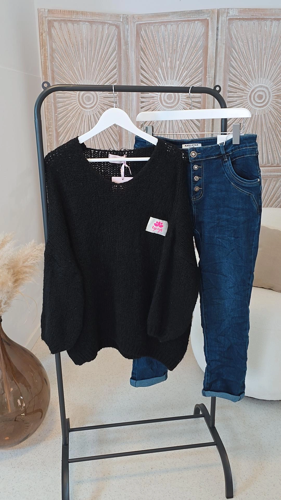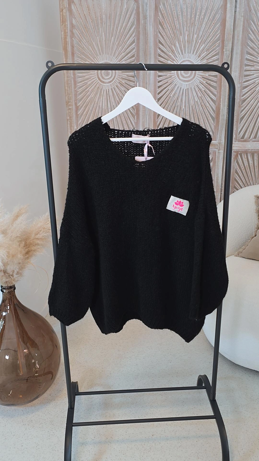 SCHWARZ LÄSSIGER YOGA STRICK-PULLOVER SIMONE.4