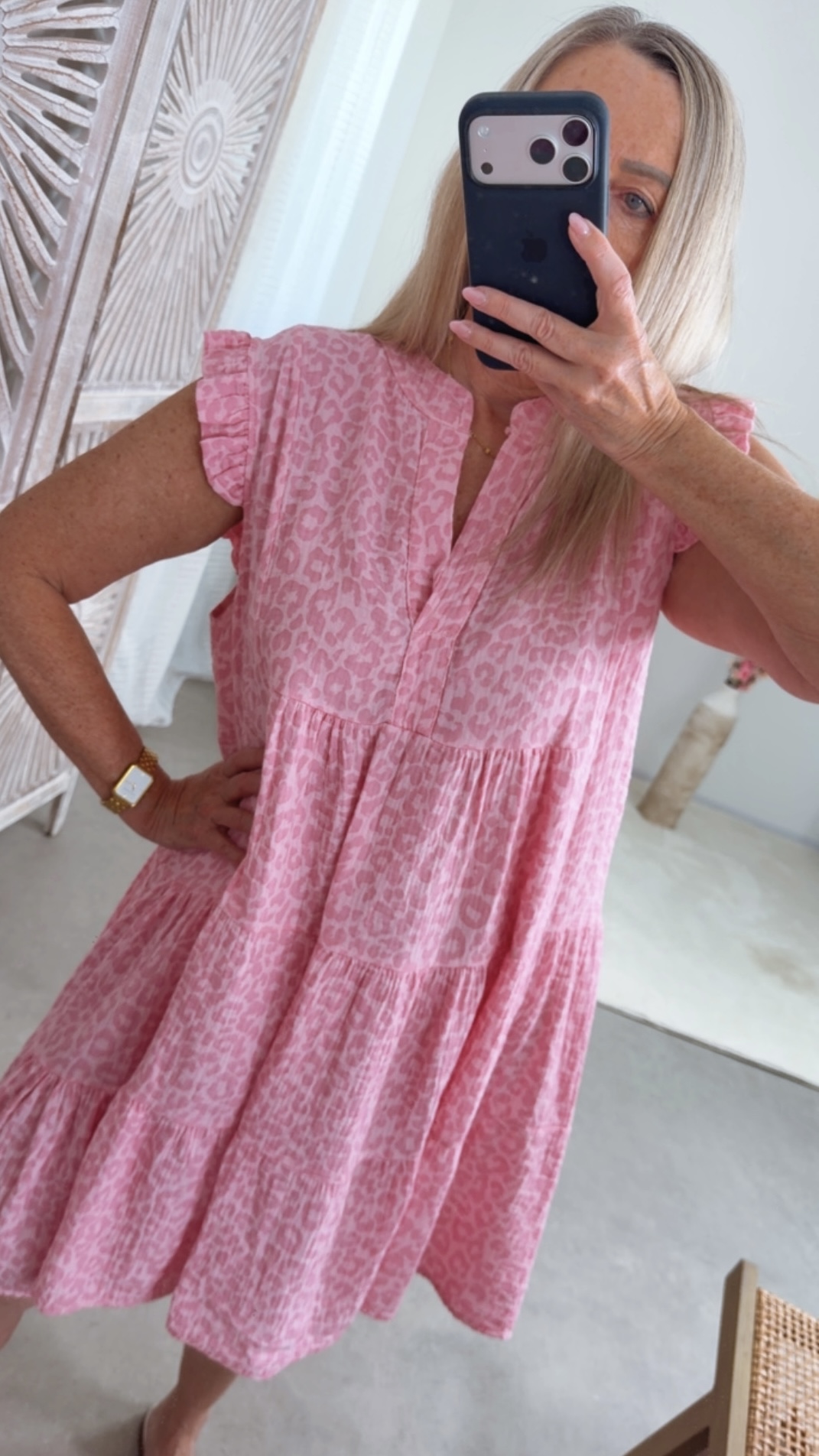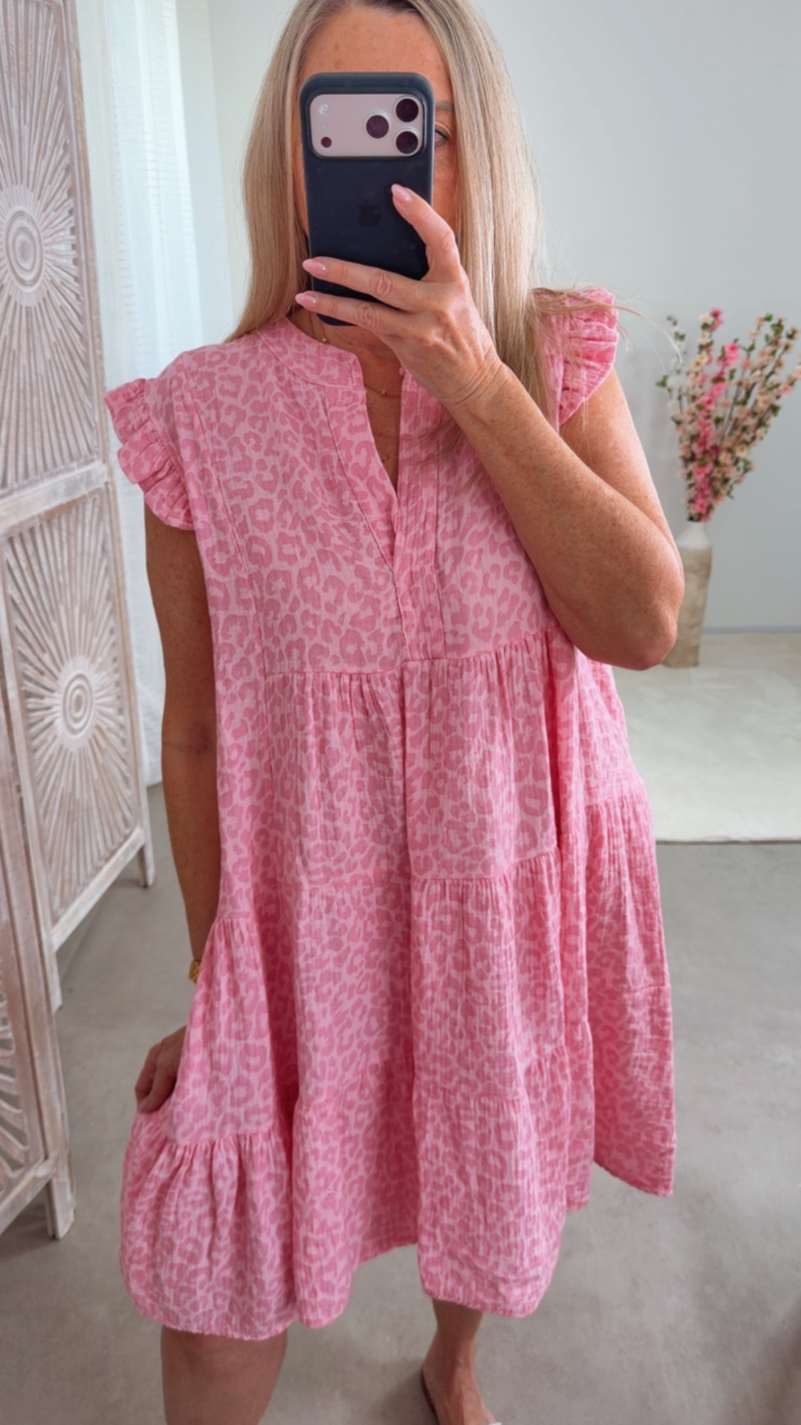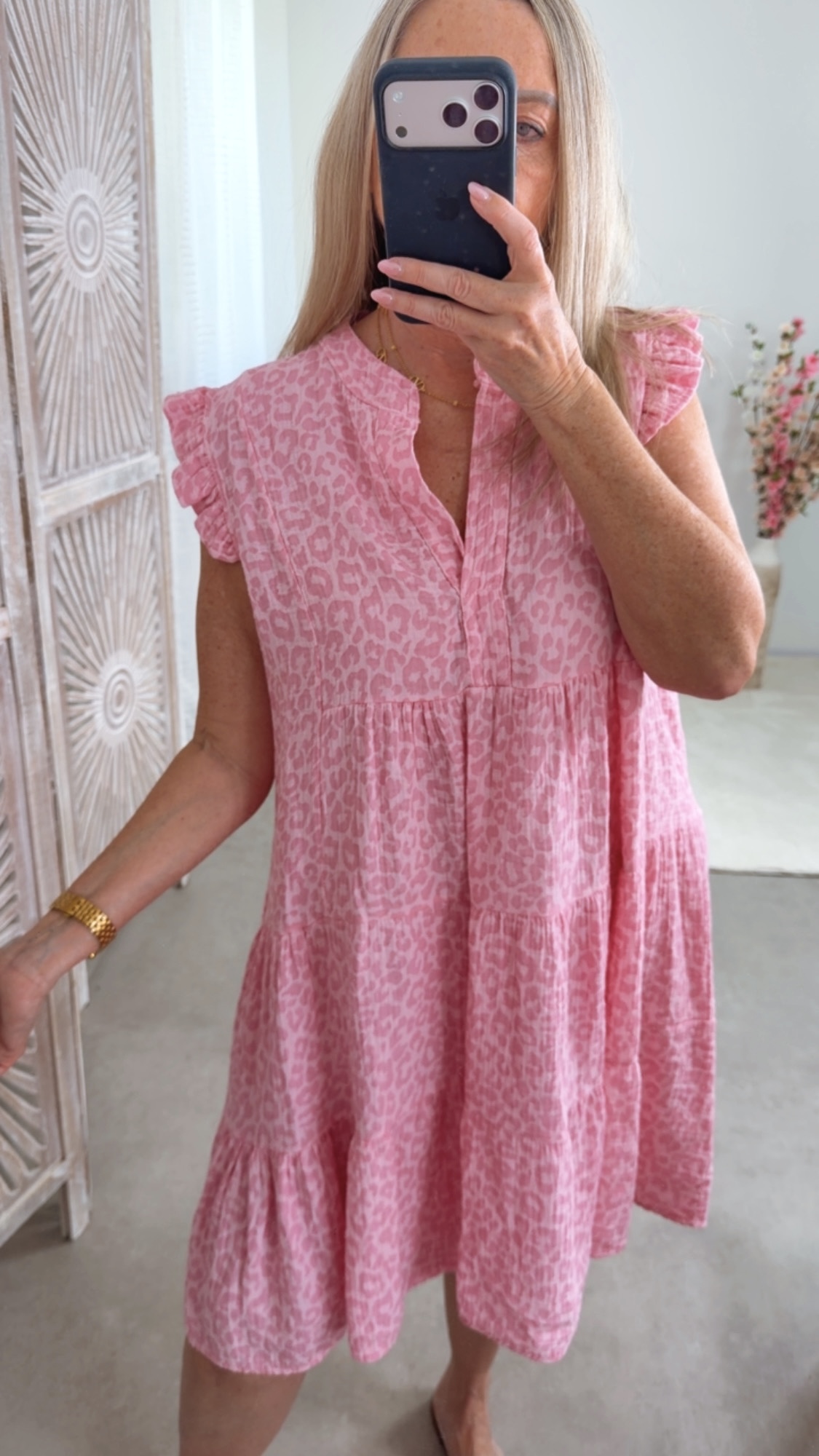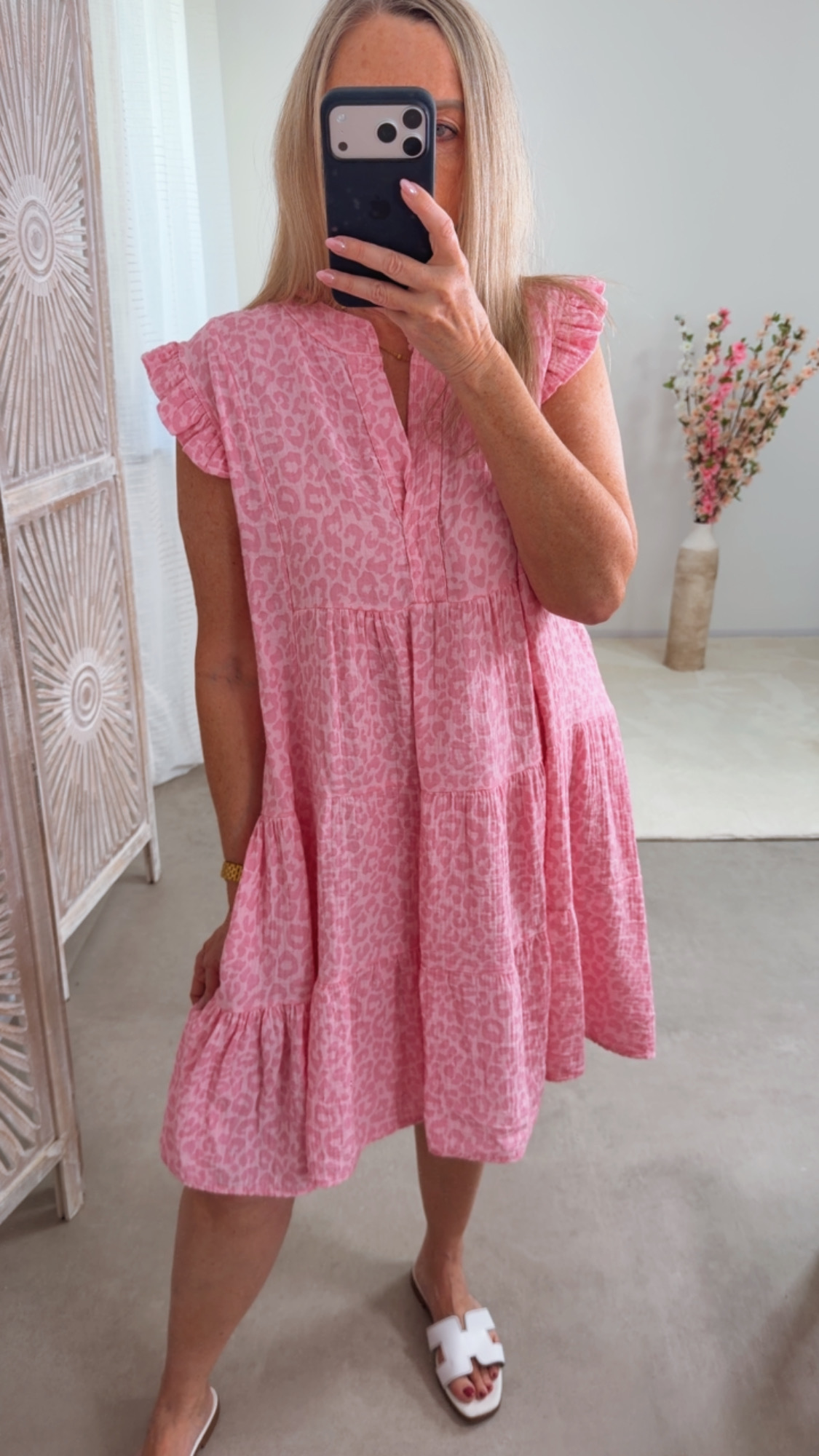 Produktinformationen "LEO MUSSELIN KLEID TAMI ROSA ALTROSA kurz Rüschen 34 - 42 "