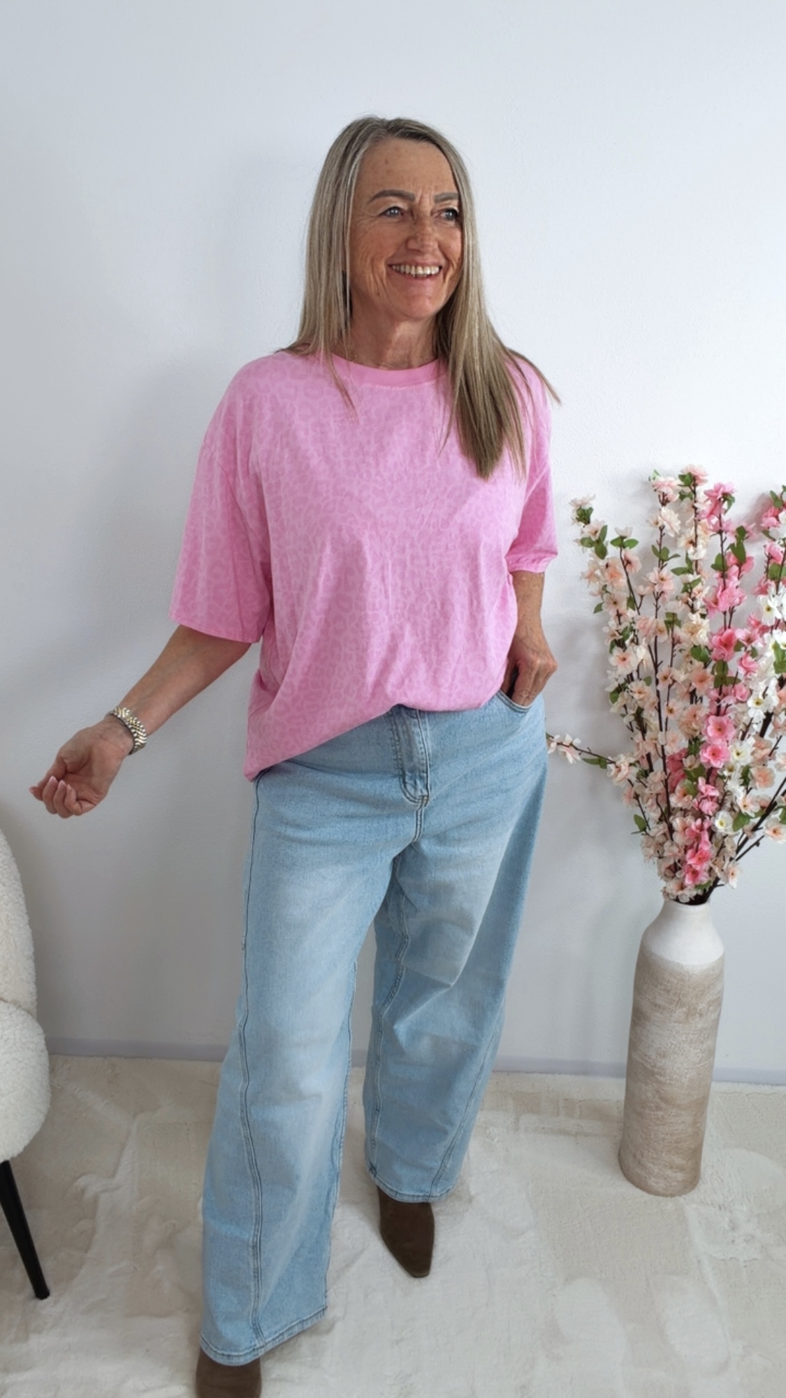 Mit seinem modernen Leo-Print in soften Farben 🐆💗💛 verleiht es deinem Outfit sofort einen frischen, modischen Touch!