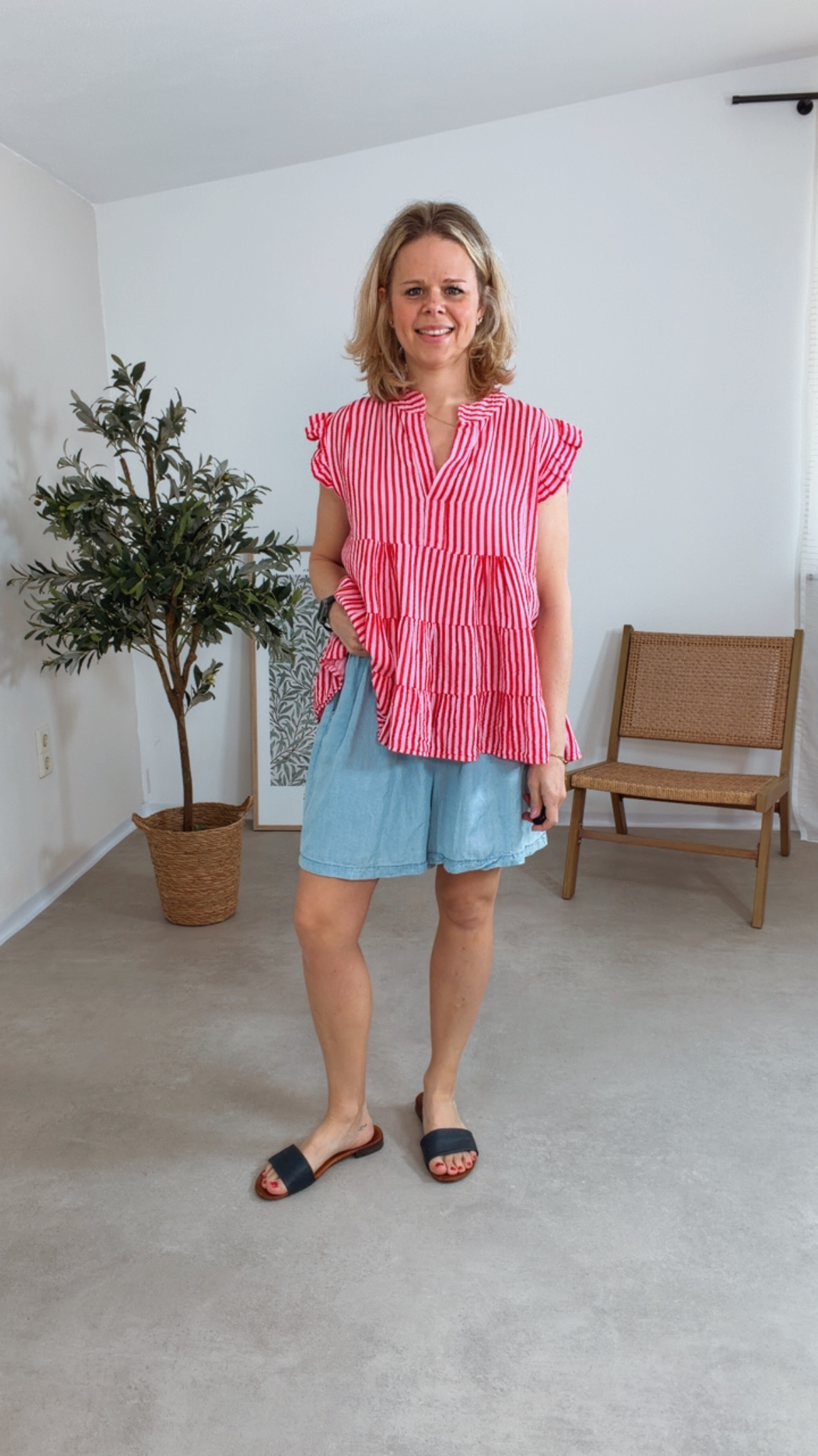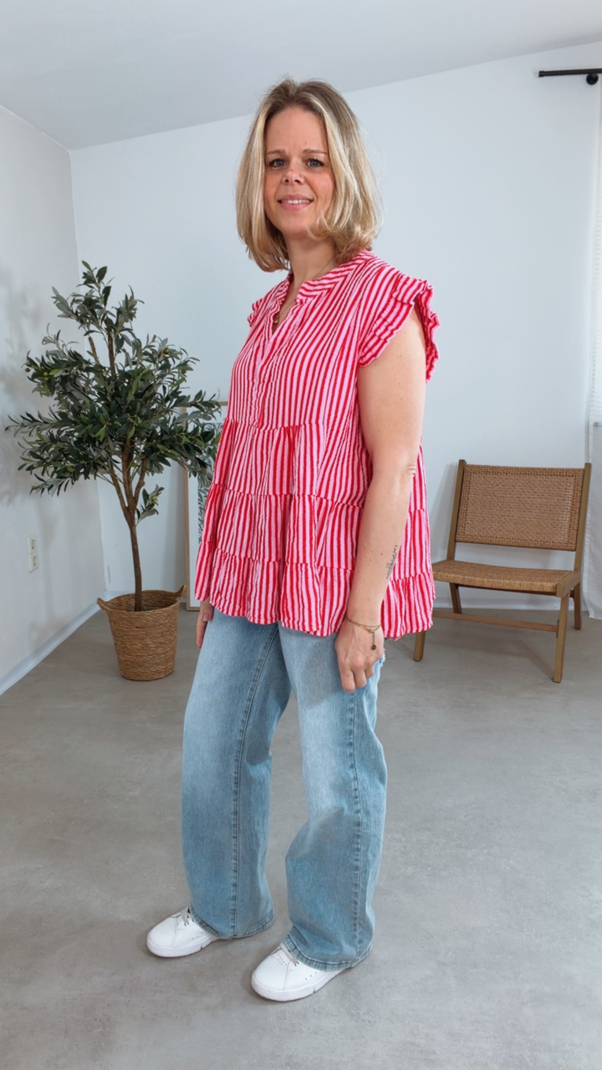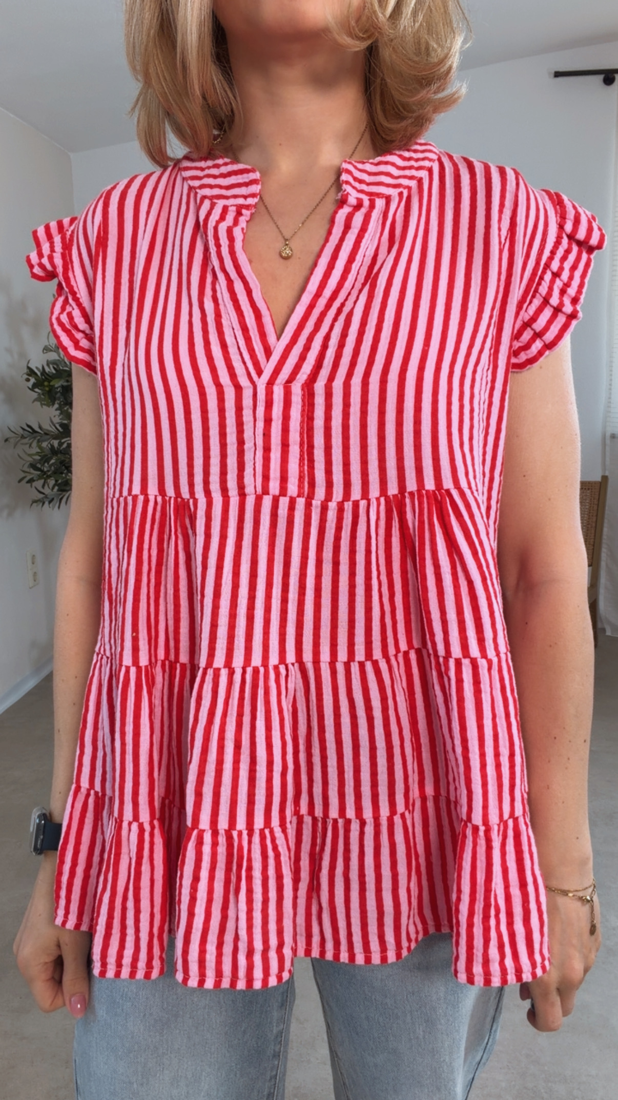- Trendiges Musselin Top mit Streifen und V-Ausschnitt