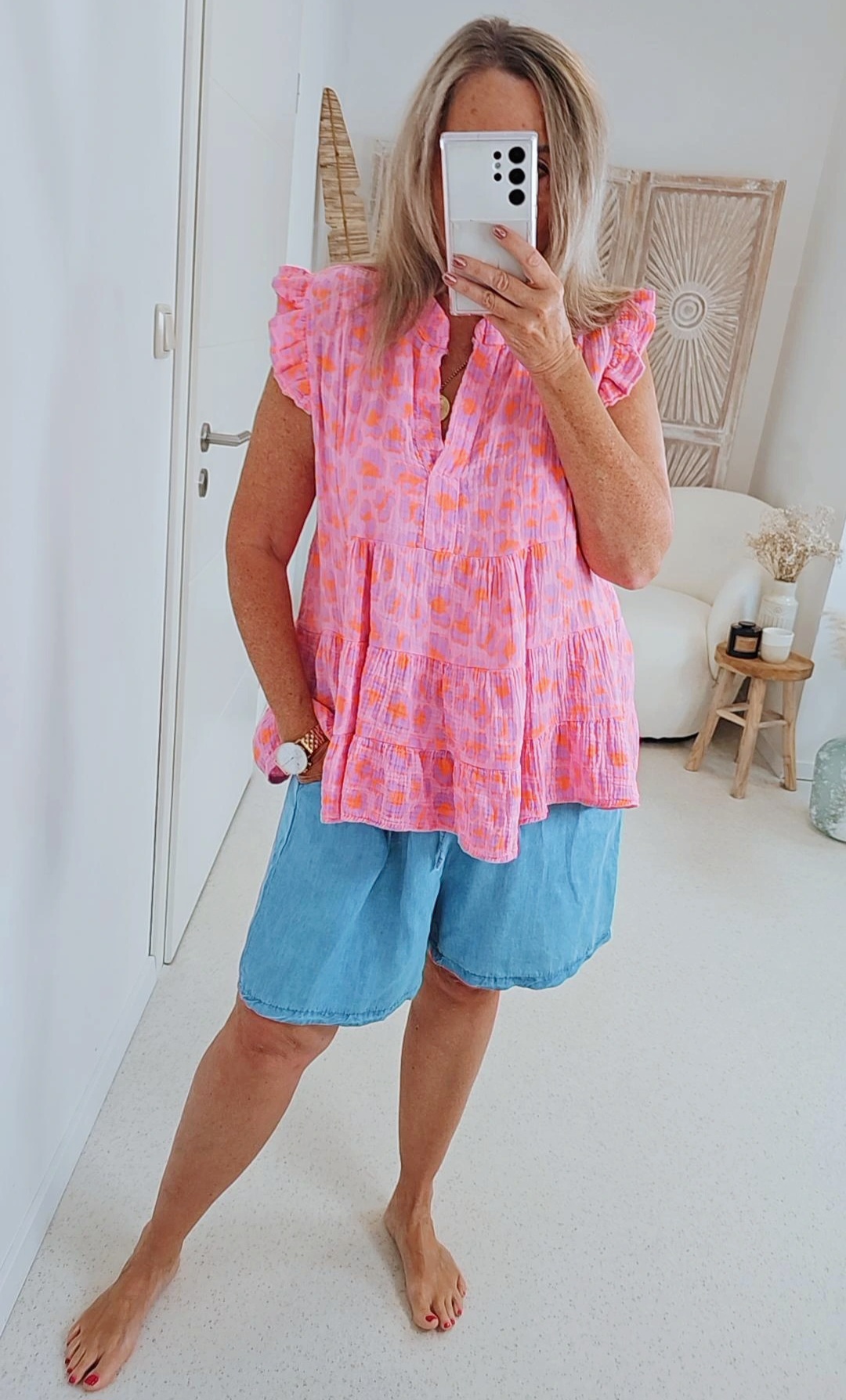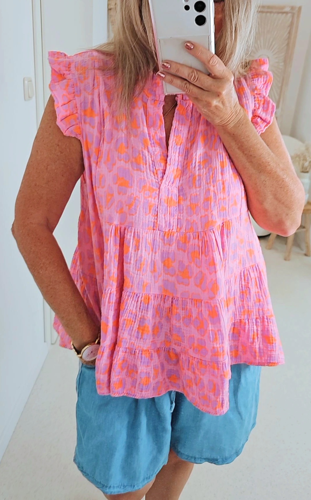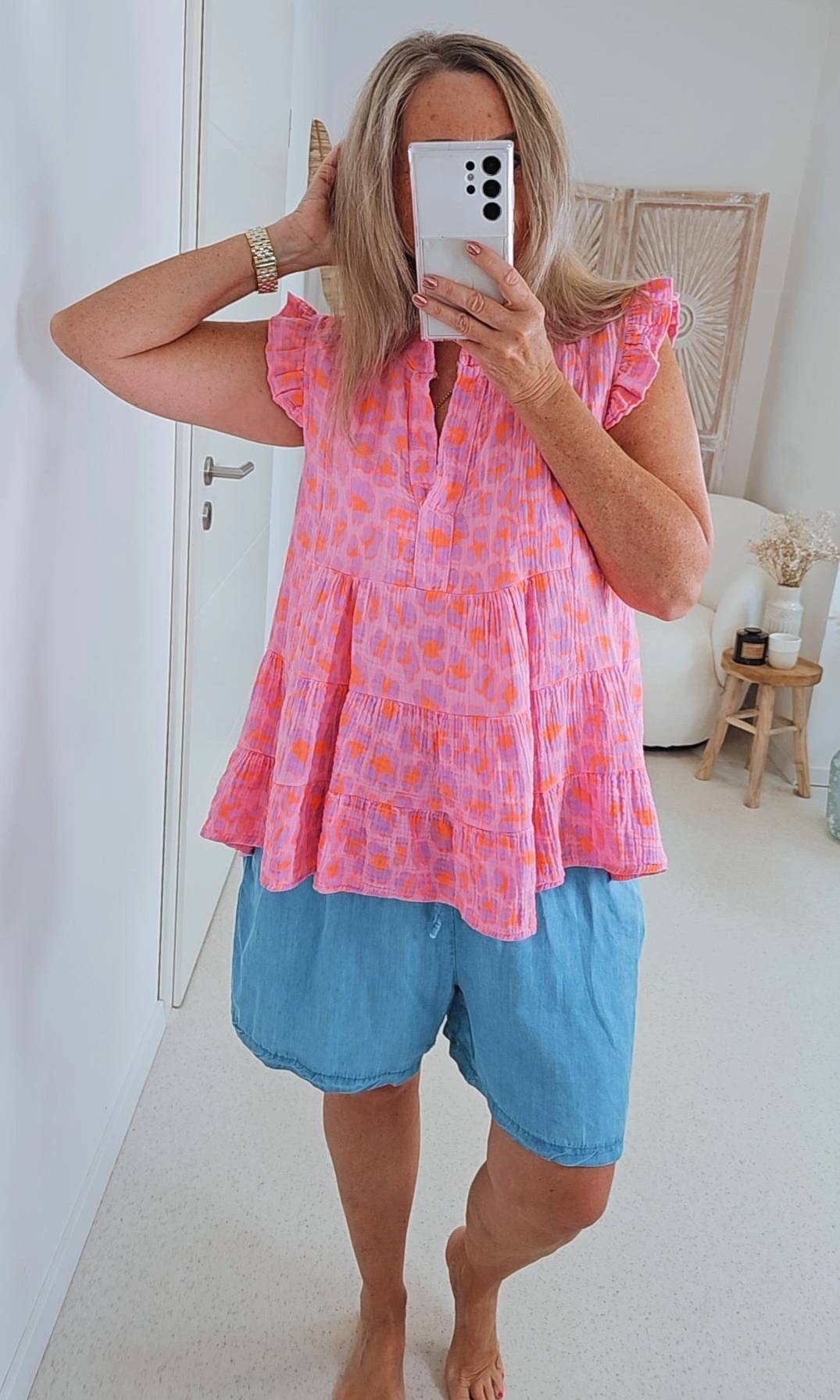 - Trendiges Musselin Top mit Leo Muster und V-Ausschnitt