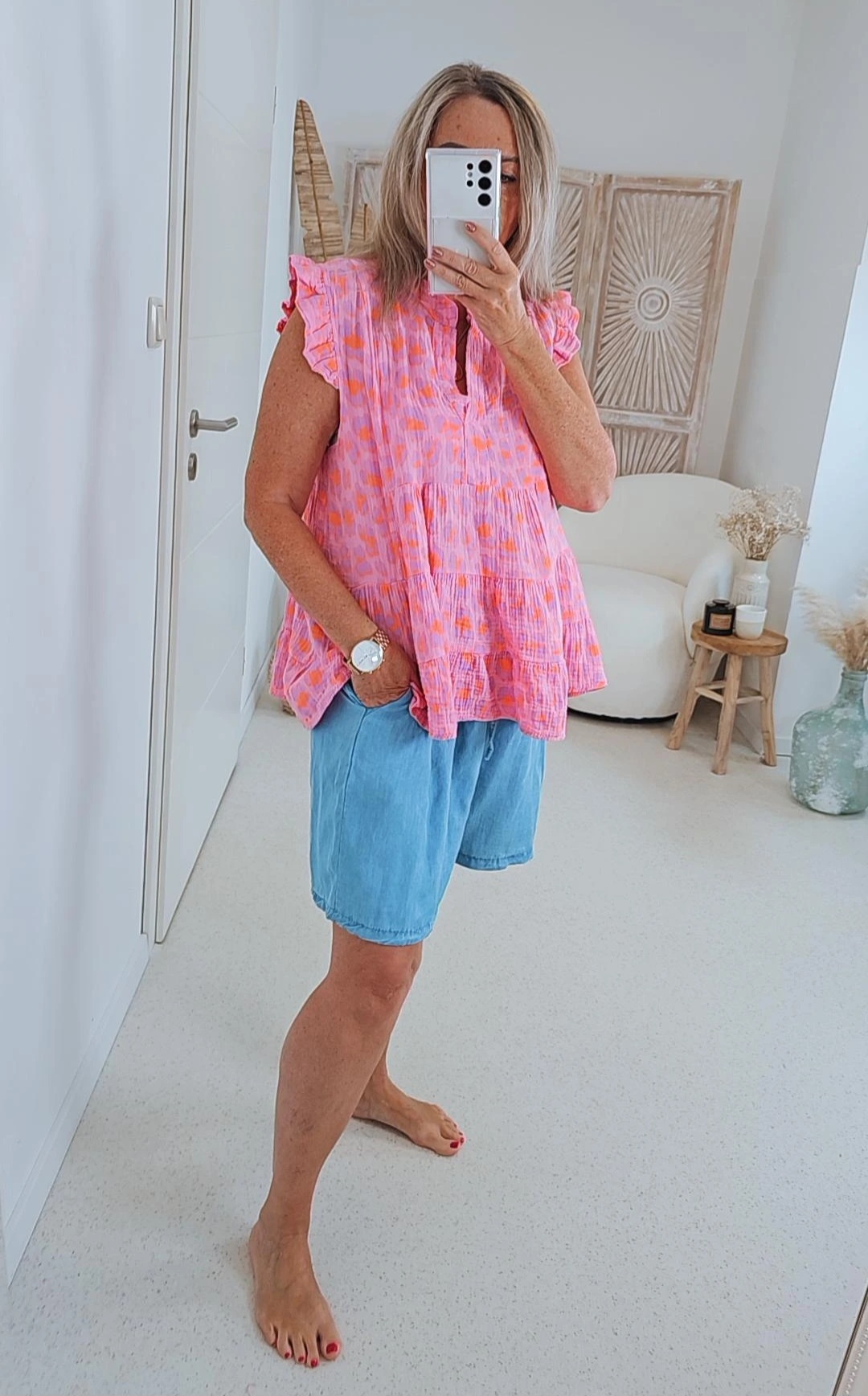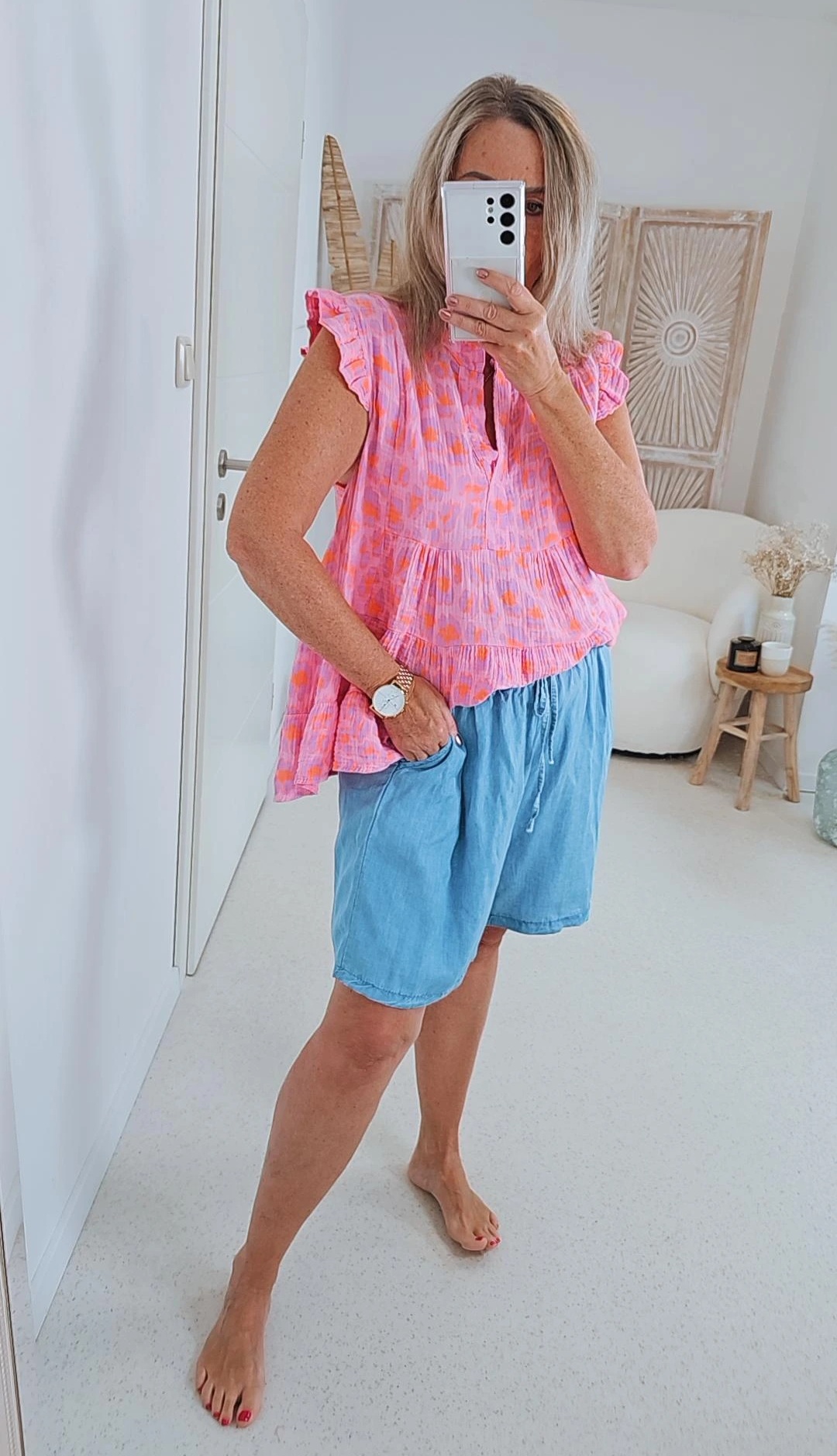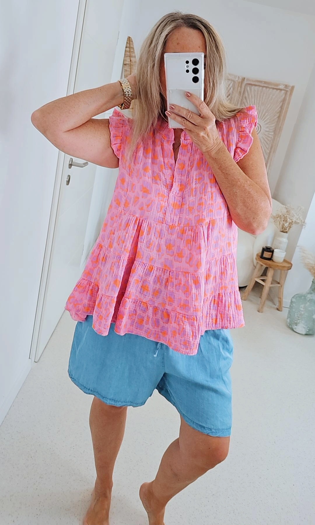 - Trendiges Musselin Top mit Leo Muster und V-Ausschnitt