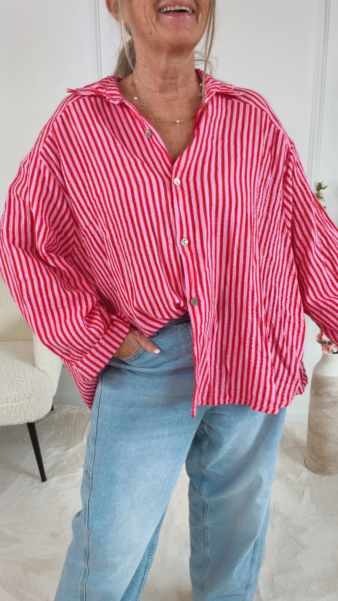 - Wunderschöne Musselin Bluse mit tollem Streifen Muster