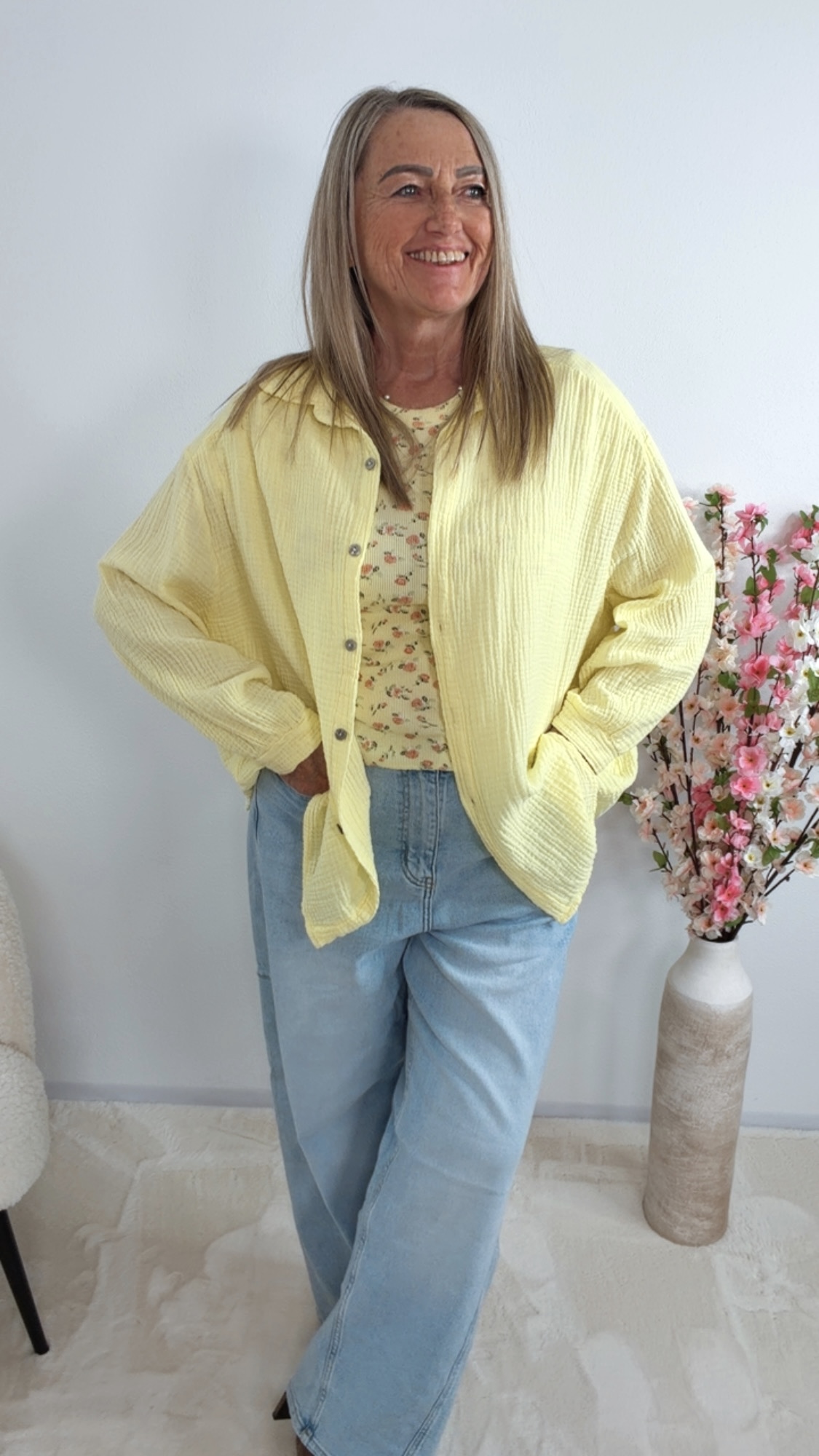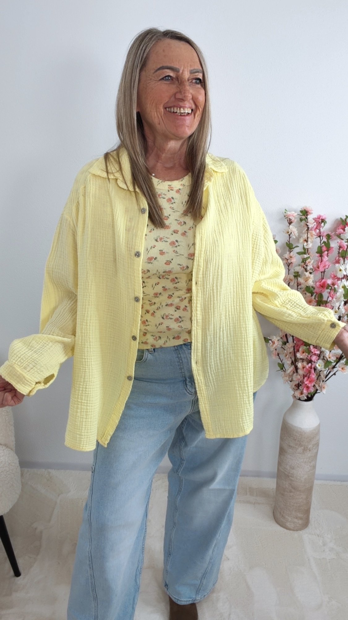 Leicht, luftig und wunderbar unkompliziert – unsere Musselin-Bluse „Sunny Breeze“ ist dein perfekter Begleiter für jeden Tag. Der weiche Musselin aus 100 % Baumwolle sorgt für ein angenehmes Tragegefühl auf der Haut und bringt gleichzeitig eine natürliche, lässige Struktur mit sich.