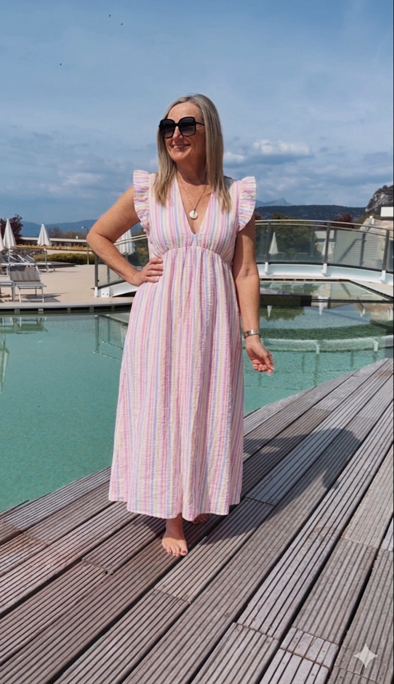 MUSSELIN KLEID ZOE STRIPES 34 - 42 Made in Italy ärmellos Rüsche