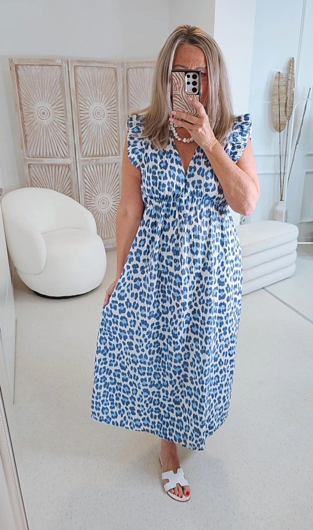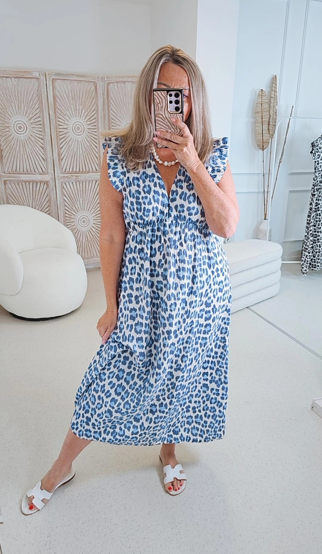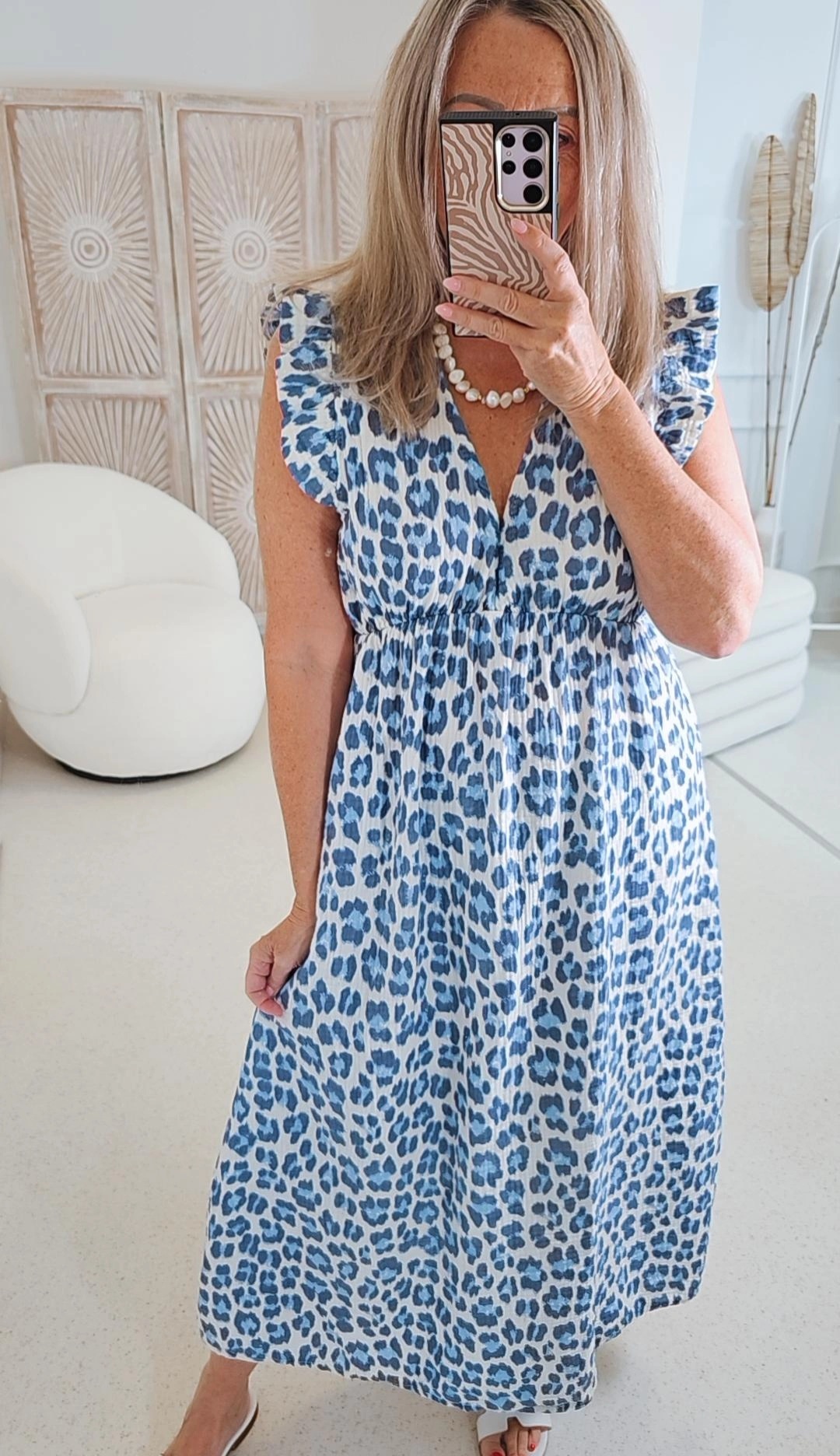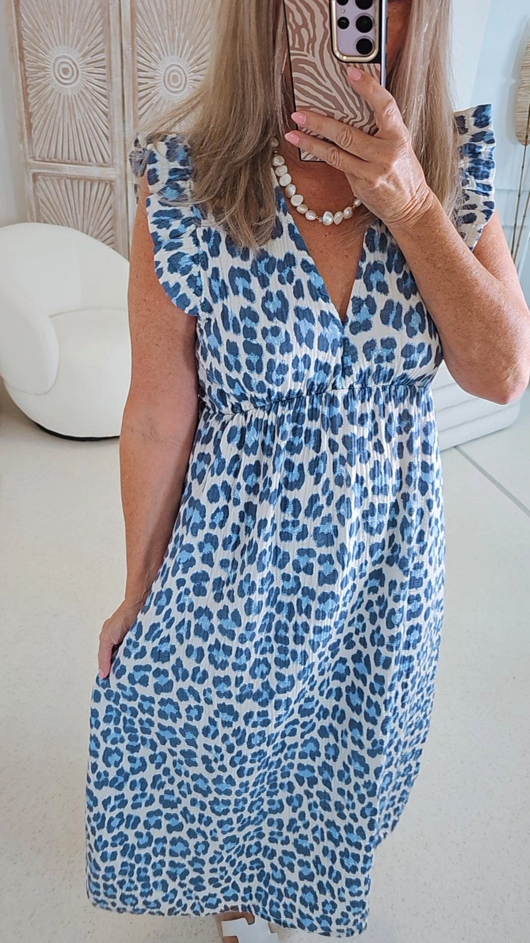 - Wunderschönes LEO Kleid ärmellos mit kleiner Rüsche am Ärmel