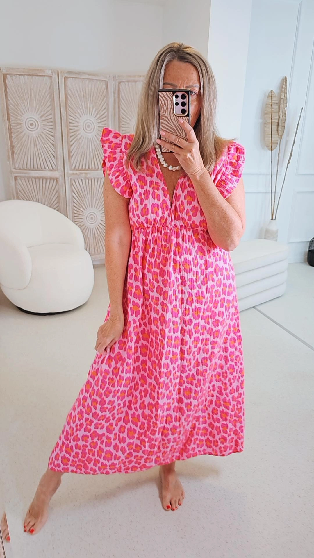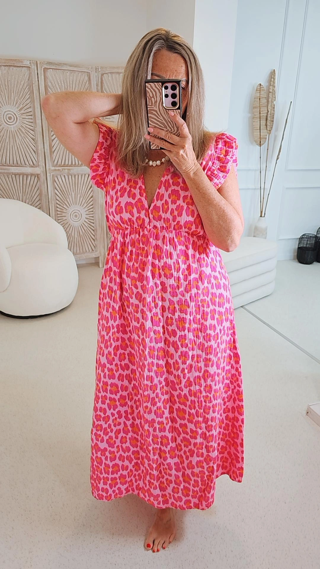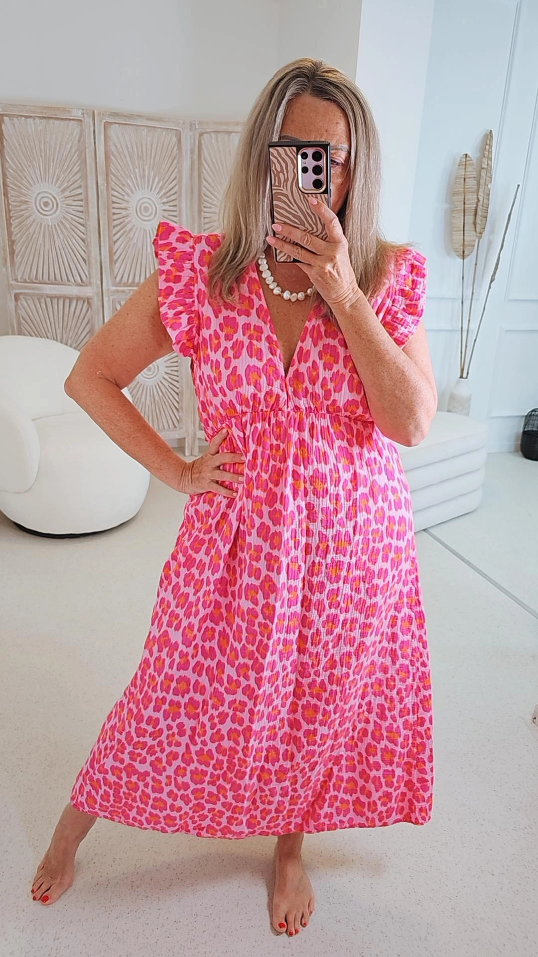 JUNGLE ROSA PINK ORANGE MUSSELIN LEO KLEID ZOE.2