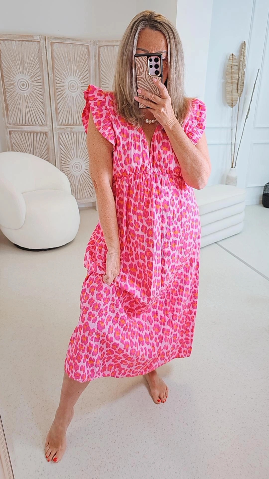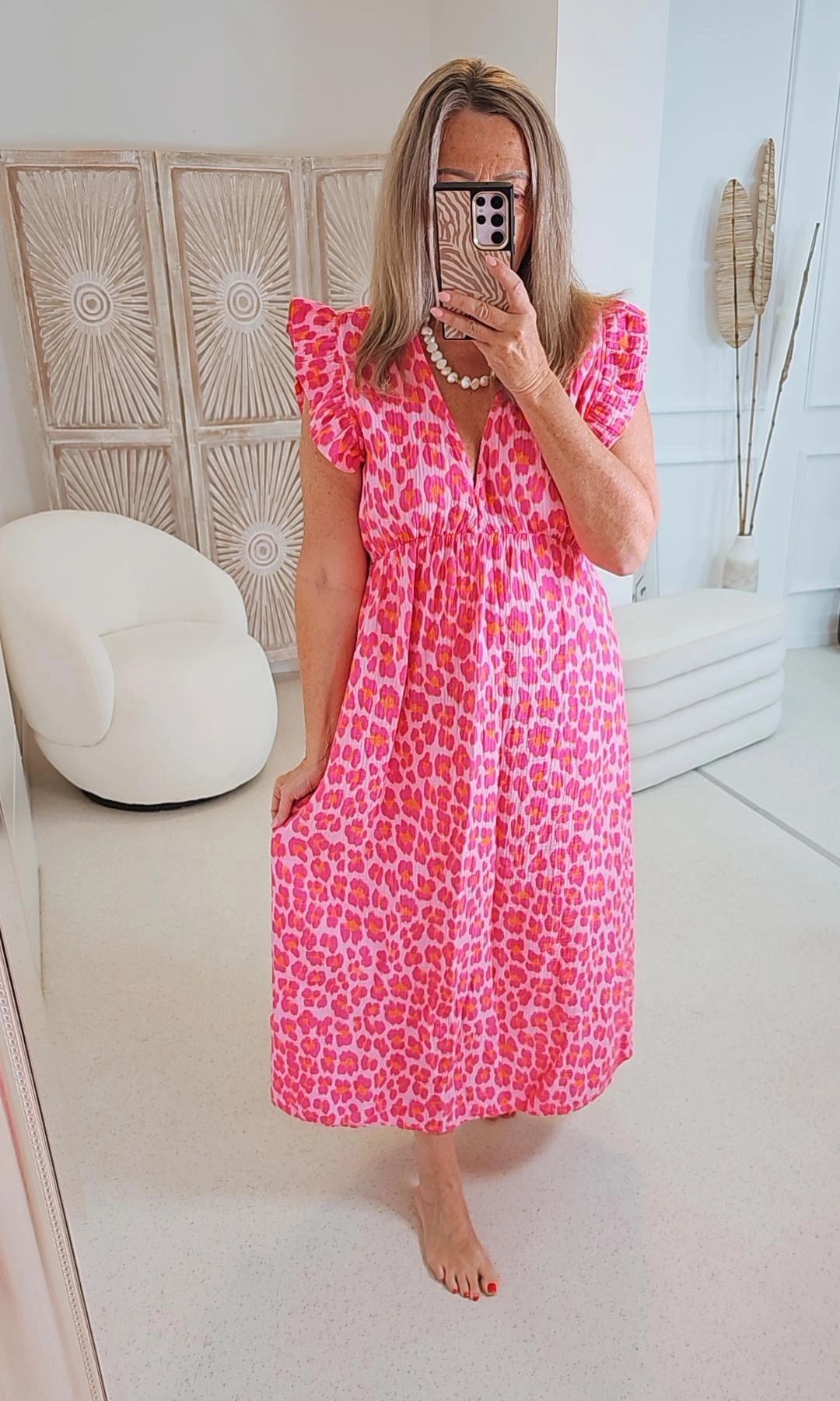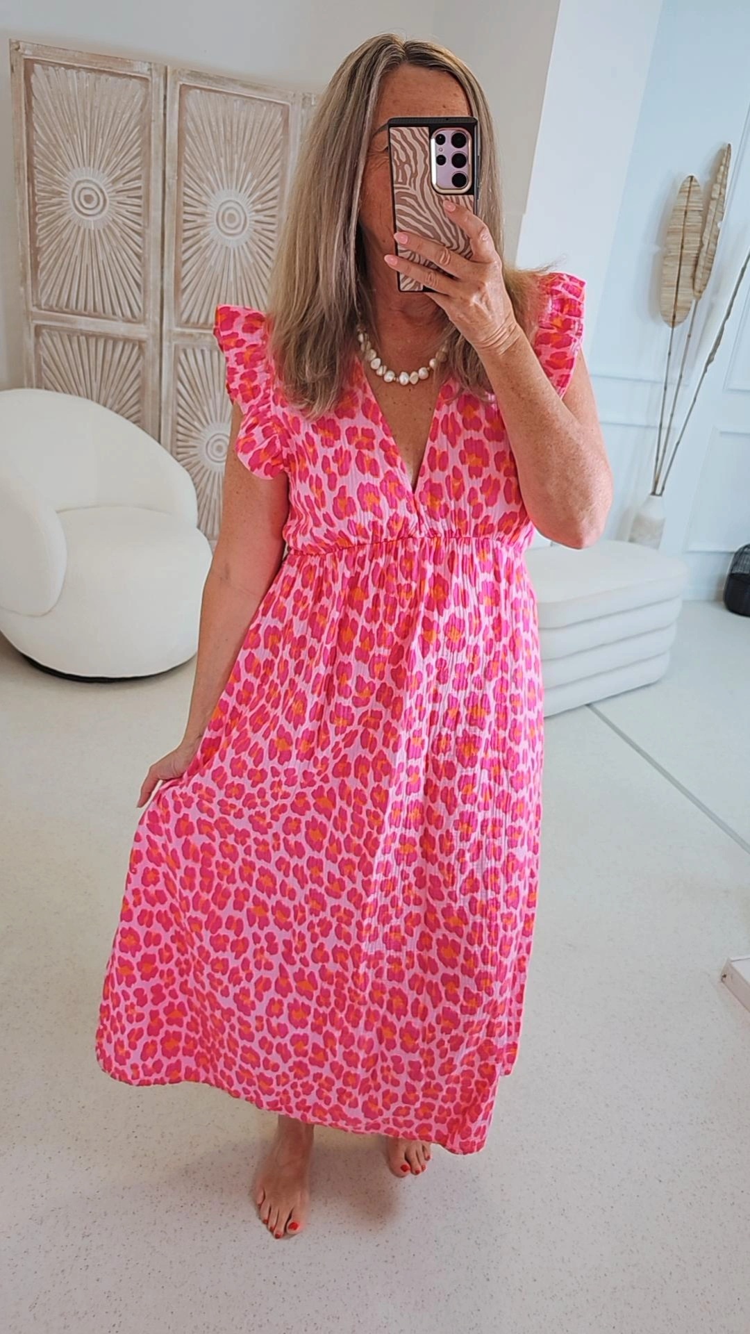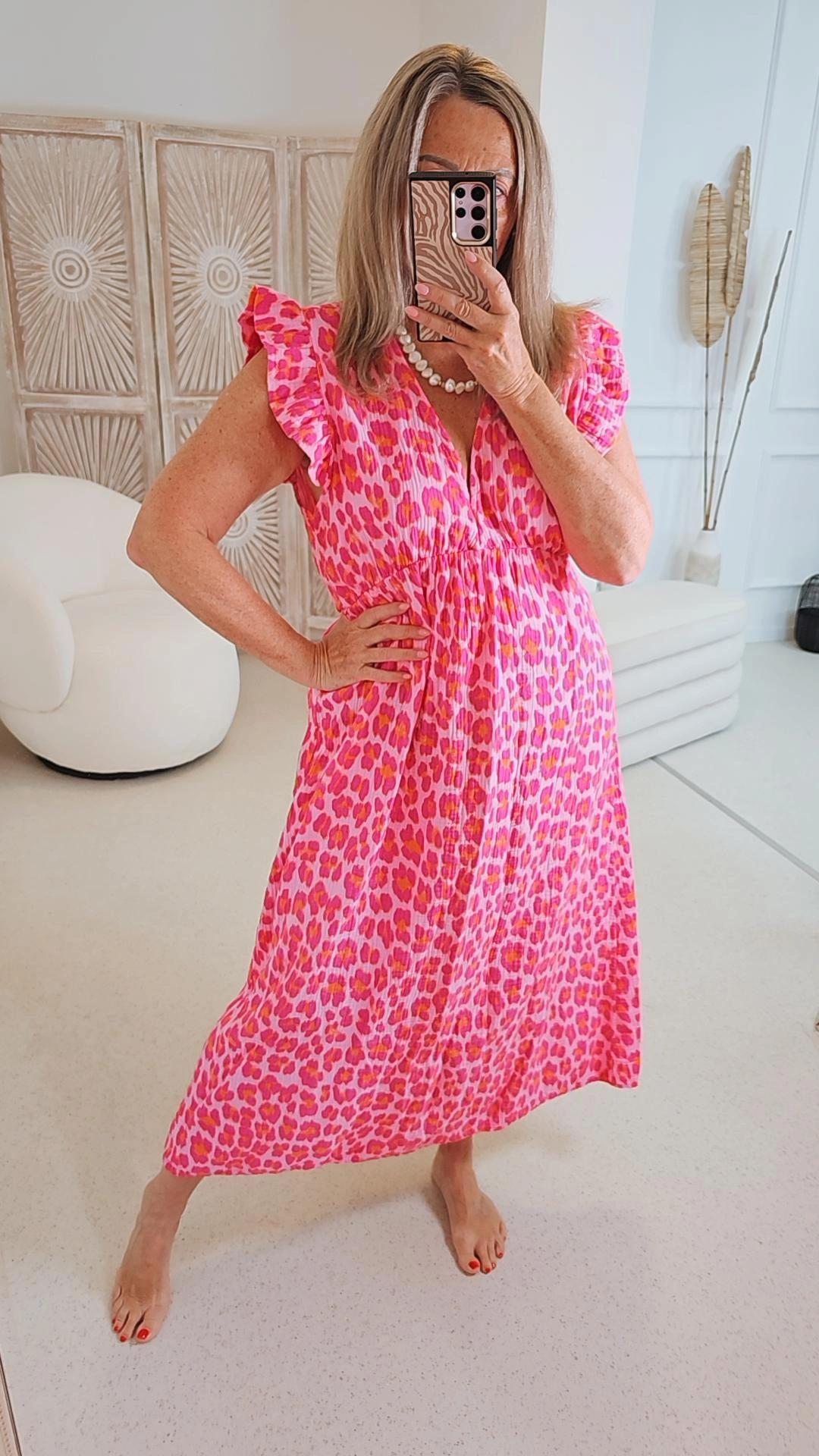 JUNGLE ROSA PINK ORANGE MUSSELIN LEO KLEID ZOE.2