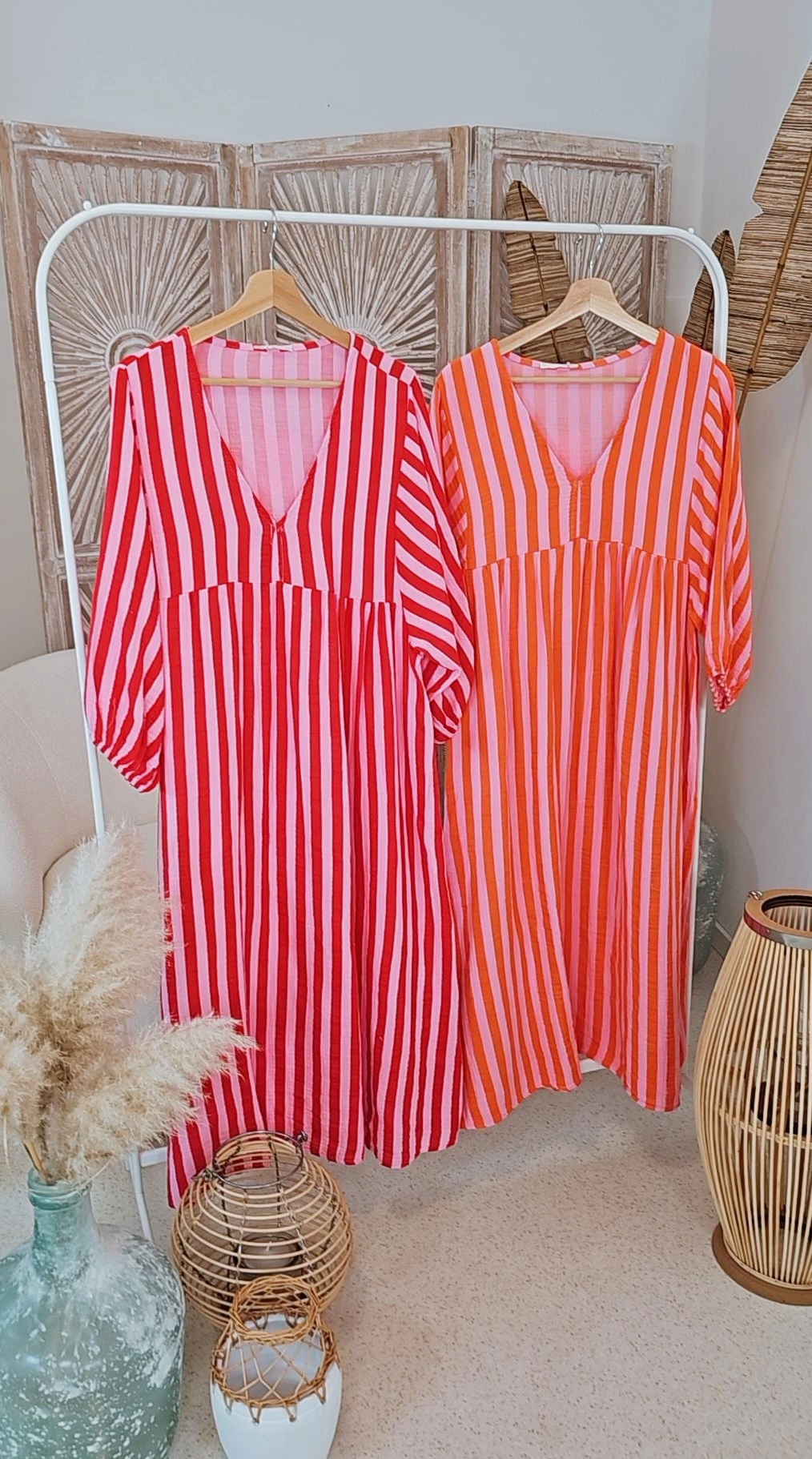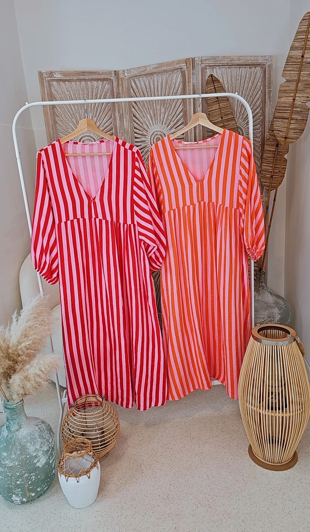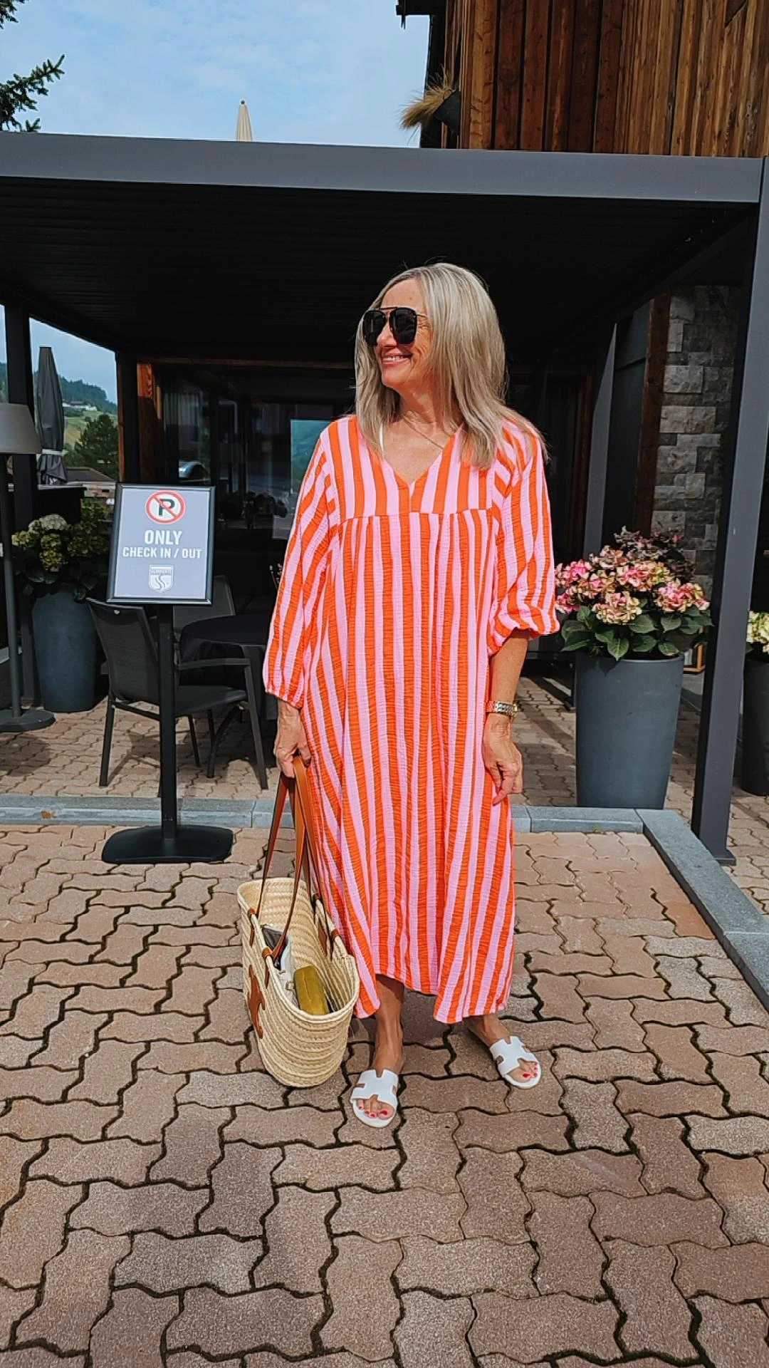 - Wunderschönes Musselin Kleid mit Block Streifeen