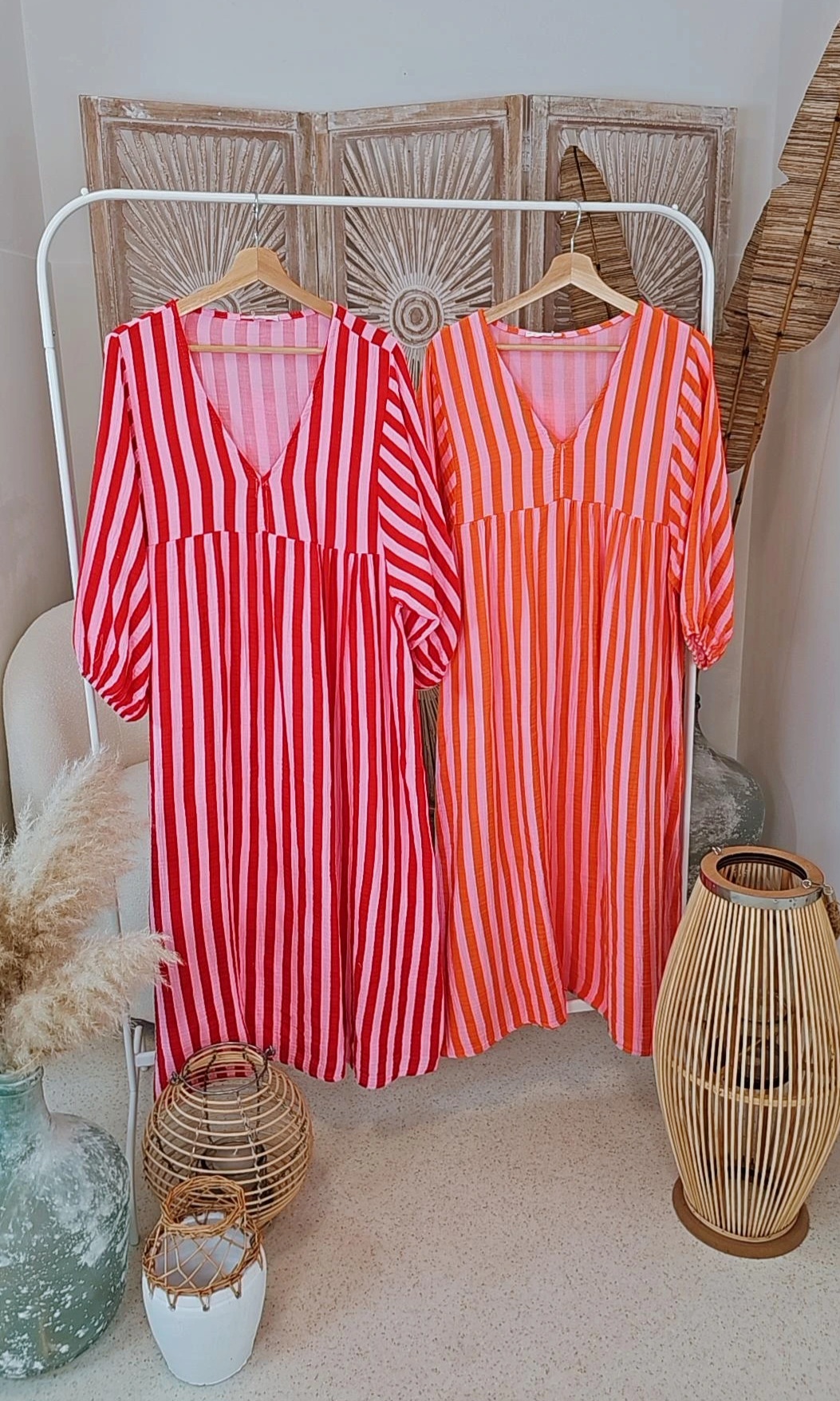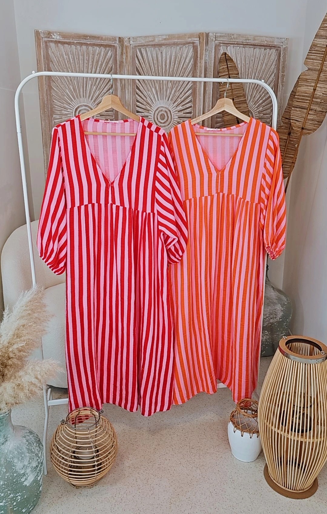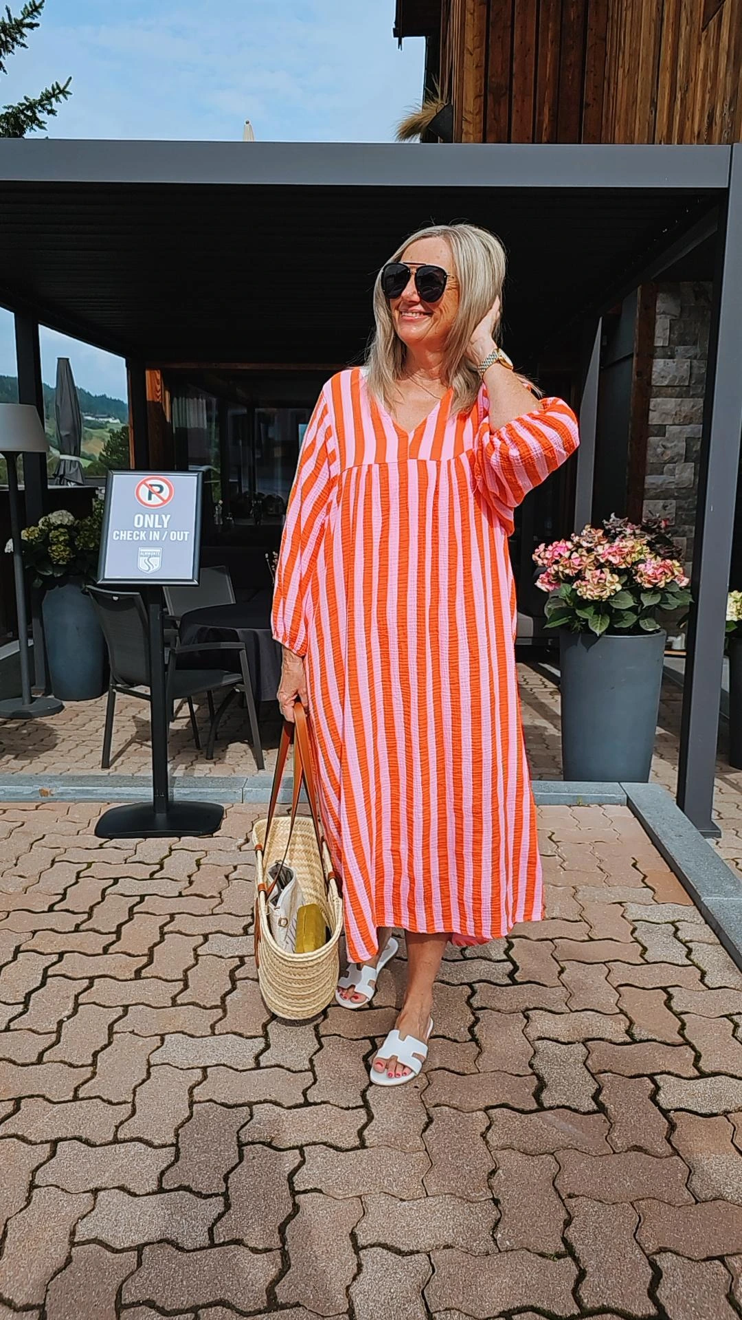 - Wunderschönes Musselin Kleid mit Block Streifeen