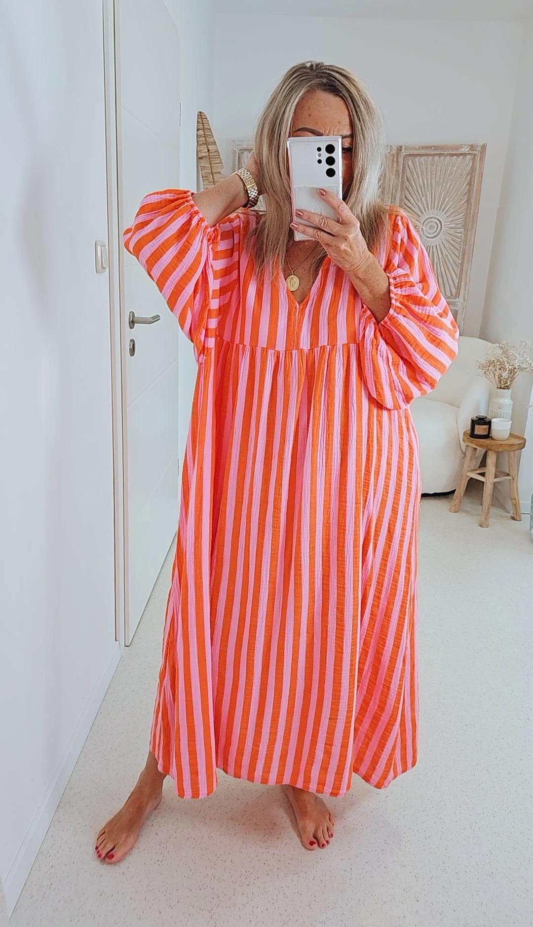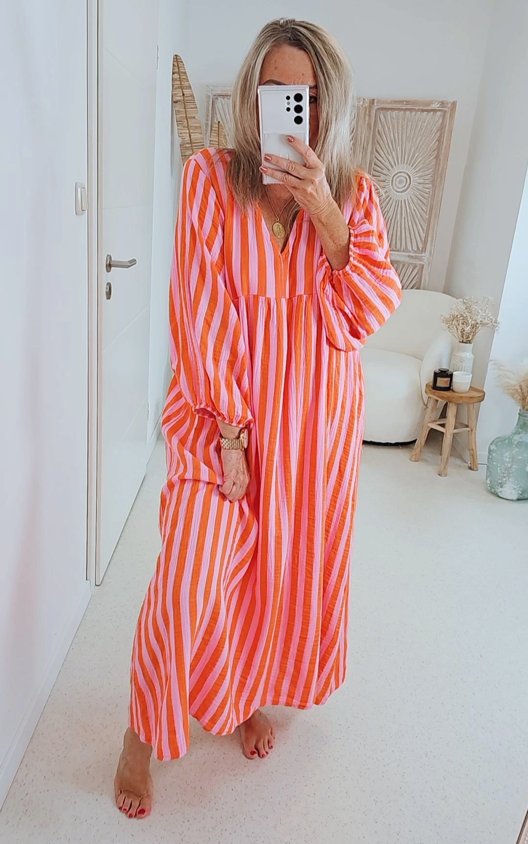 ORANGE-ROSA MUSSELIN OVERSIZE DRESS SALALAH.2