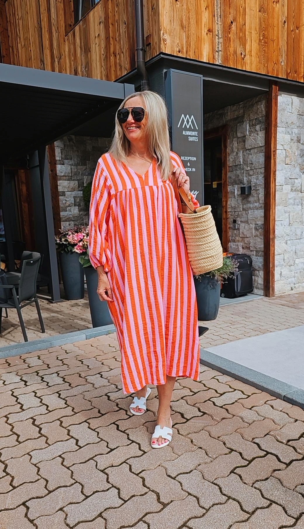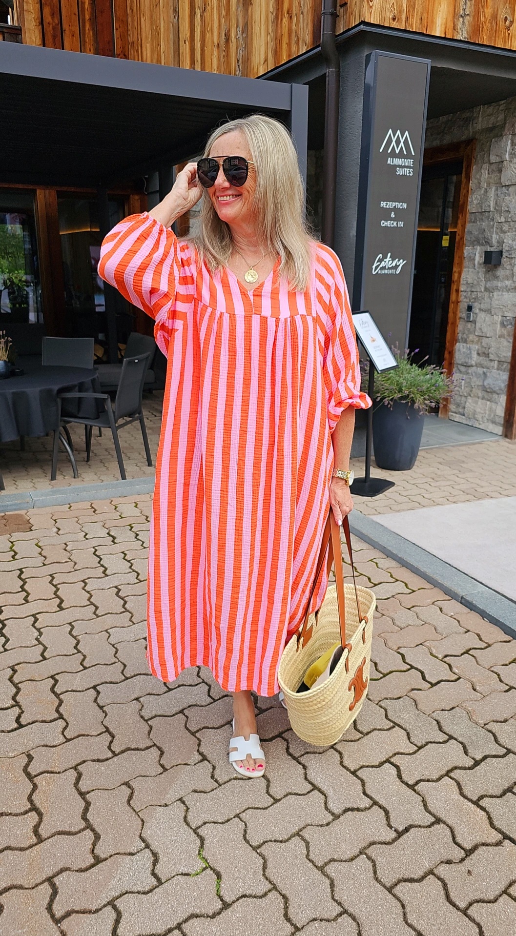 MUSSELIN OVERSIZE DRESS SALALAH Block Streifen Made in Italy 34-44/46