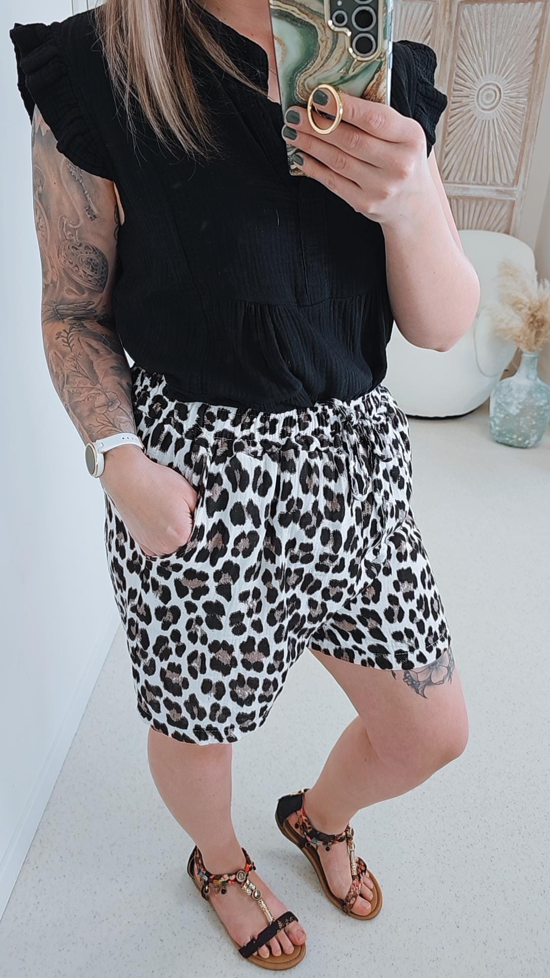 - trendige Shorts aus Musselin im Leo Design