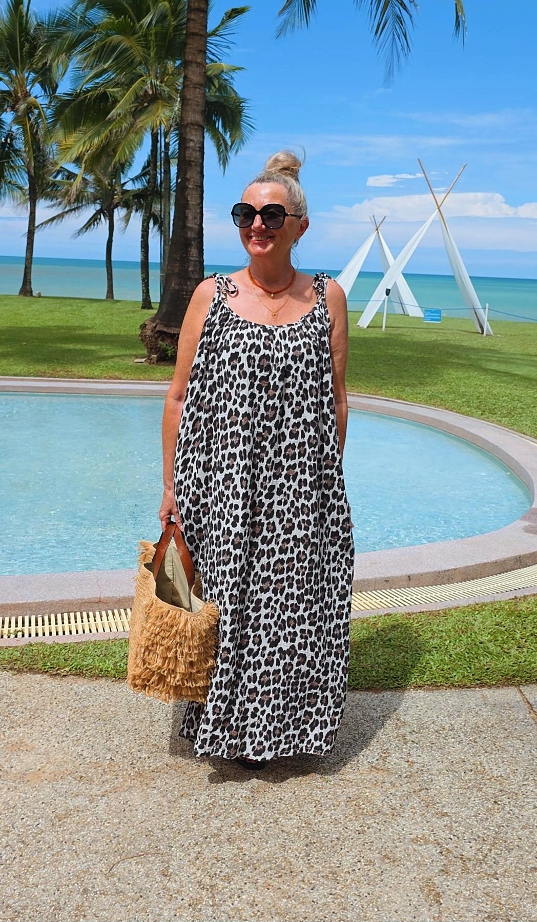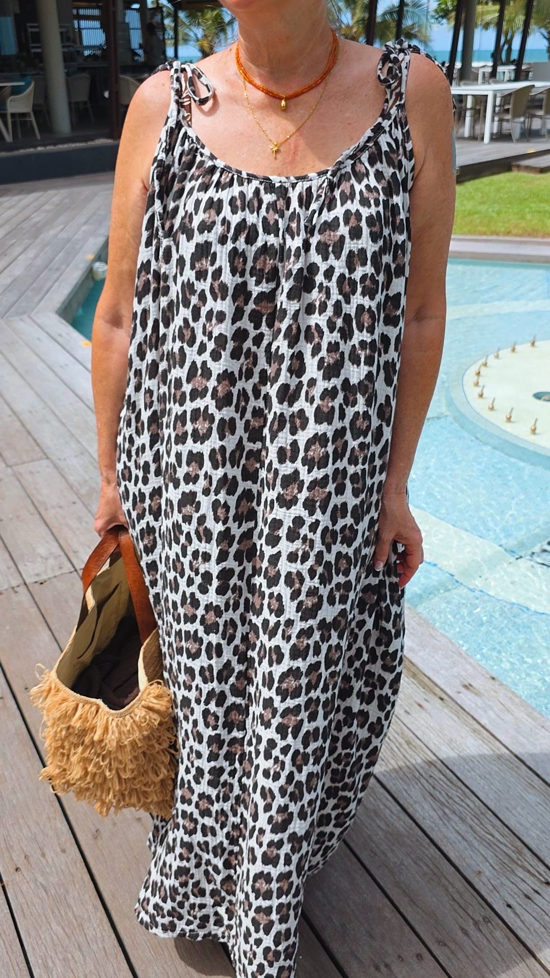 - Wunderschönes Spaghettiträgerkleid mit tollem Leo Muster