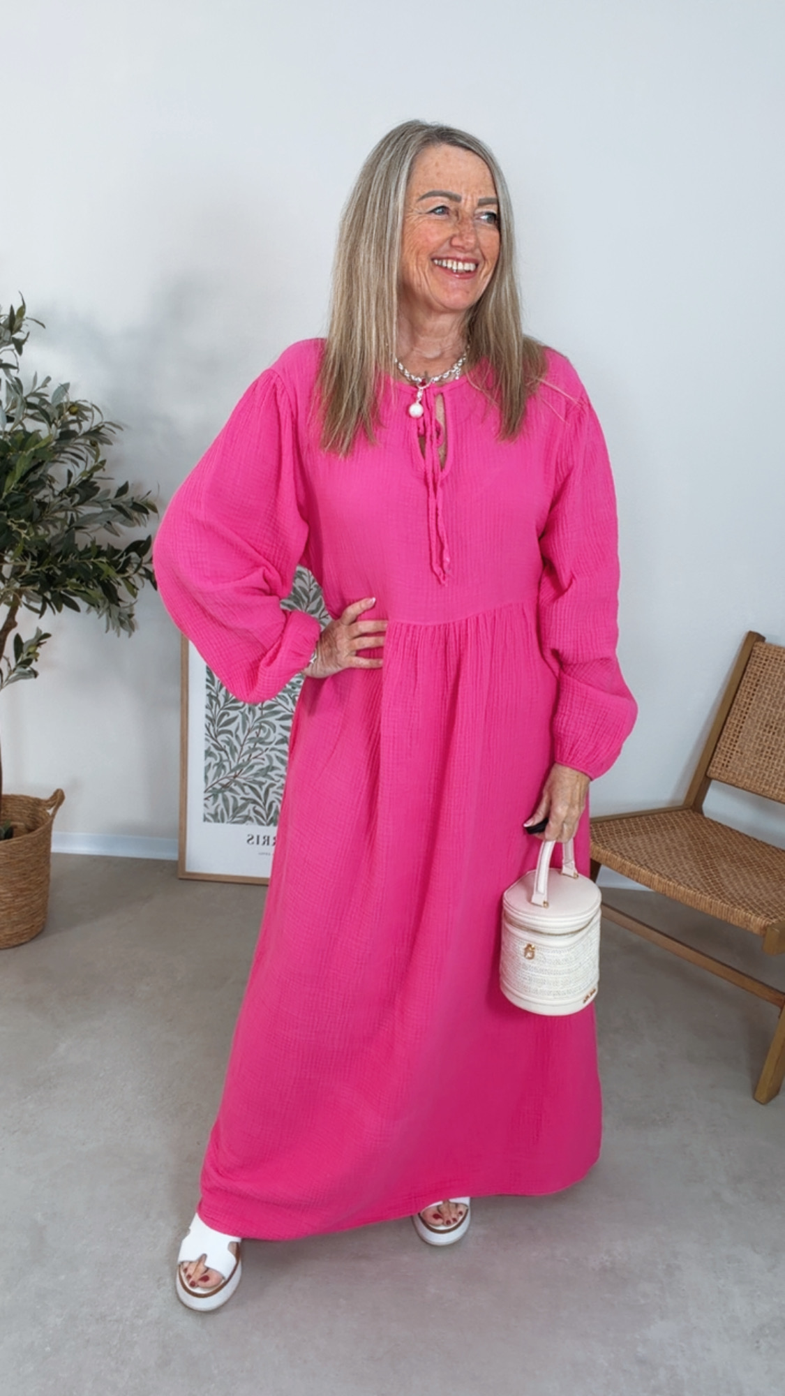 Luftig, feminin und absolut zeitlos ✨ – das Musselin Maxi Kleid „Rhodos“ ist dein perfekter Begleiter für warme Tage und entspannte Momente 🌸🌞. Gefertigt aus weichem, atmungsaktivem Musselin ☁️, schmiegt sich das Kleid sanft an deine Haut und sorgt für ein besonders angenehmes Tragegefühl – selbst bei hohen Temperaturen 💛.