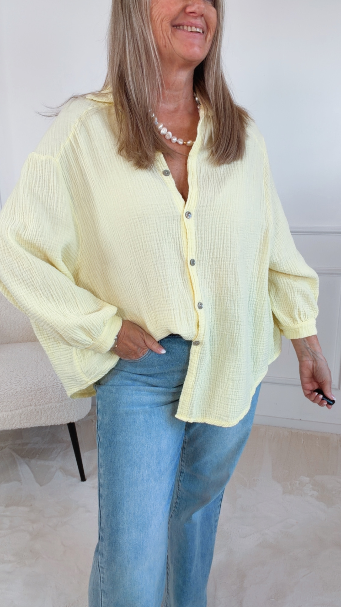 Wir empfehlen Feinwäsche und die Berücksichtigung der Waschempfehlung, damit du lange Freude an deiner Bluse hast 💧✨Ob zur Jeans 👖, zur Stoffhose oder lässig kombiniert – die Musselinbluse „Coodvibes“ ist ein echtes Lieblingsstück für jeden Kleiderschrank 🛍️💖