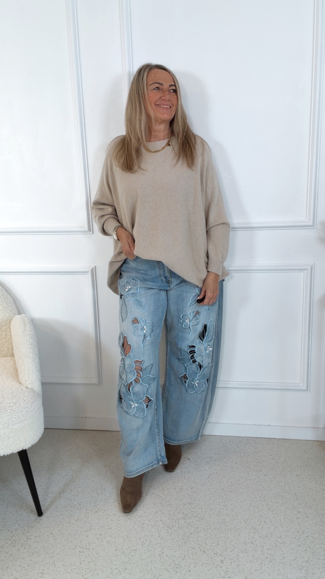 BEIGE MAXI-PULLOVER LEVI unifarben.4