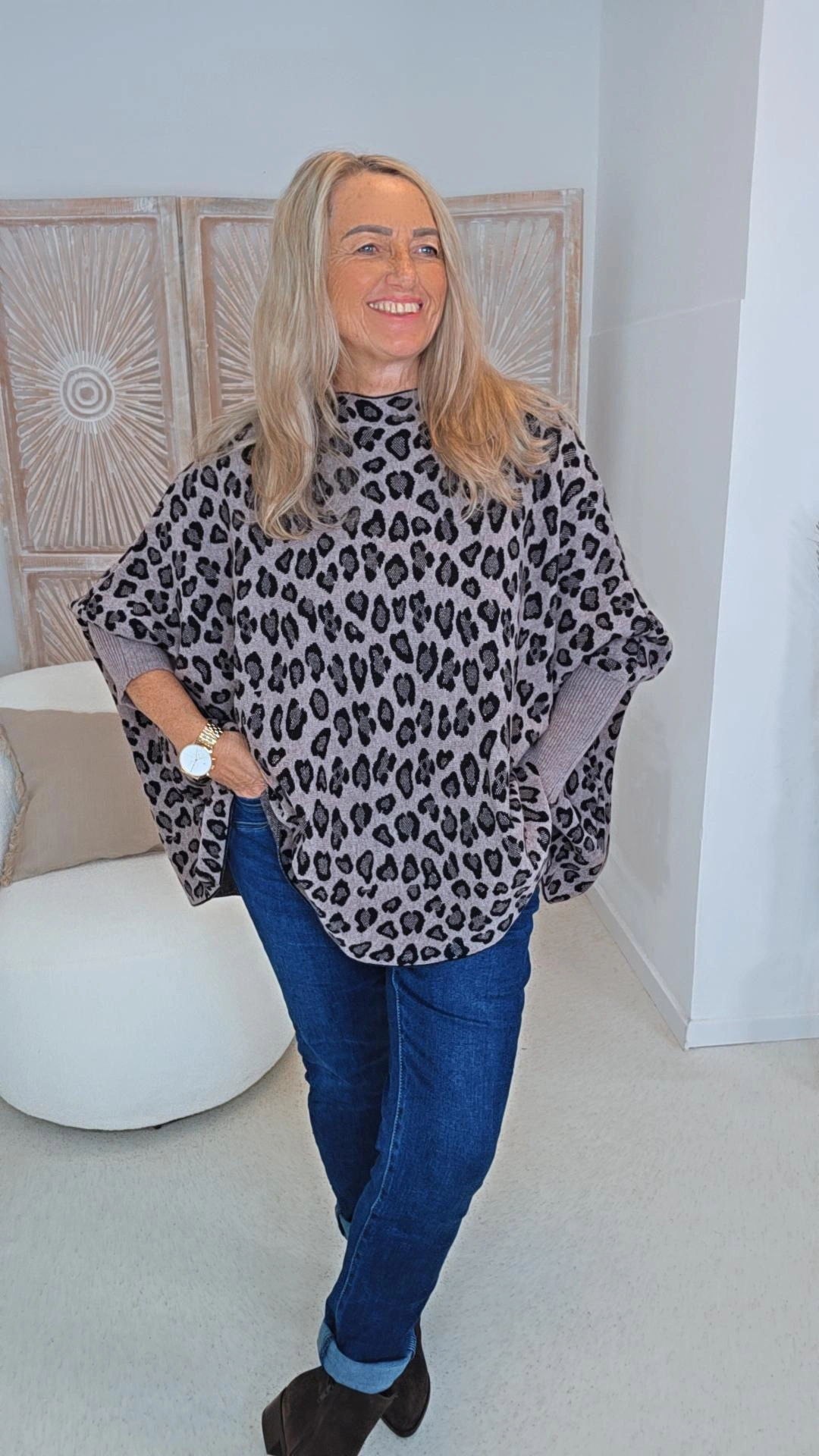 TAUPE-SCHWARZ LÄSSIGER LEO-STRICKPULLOVER DAVINA.3