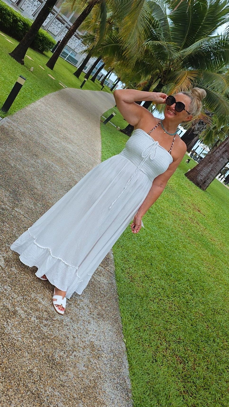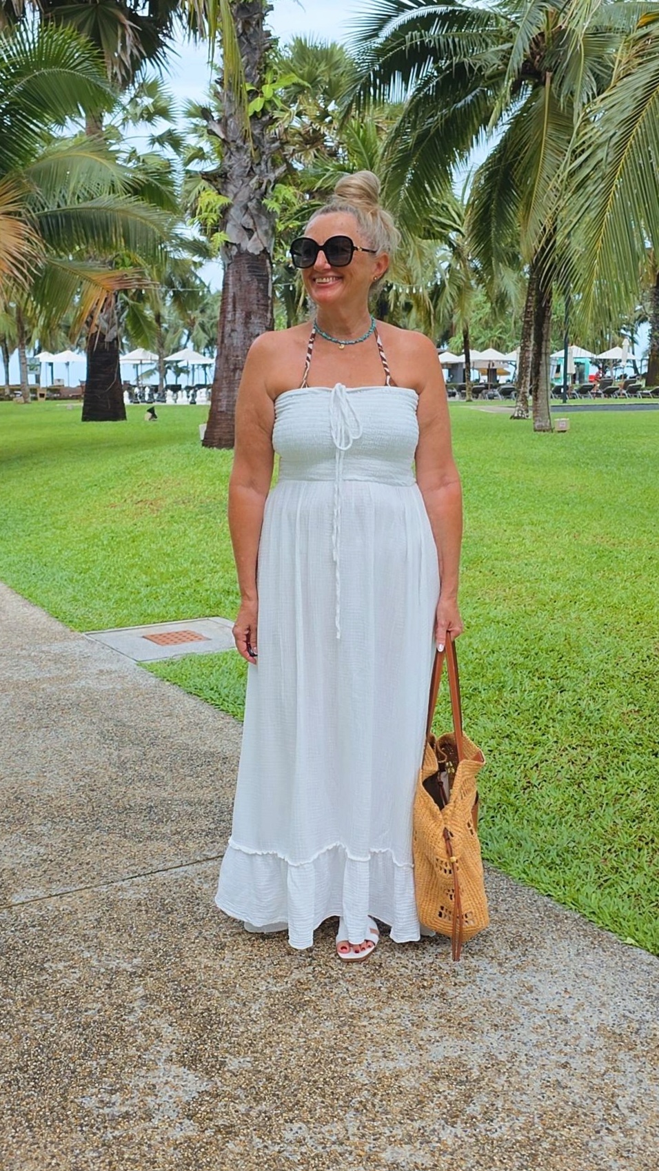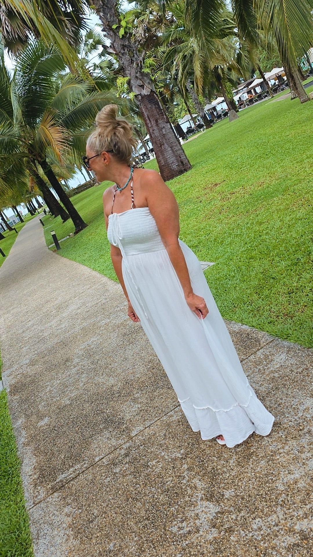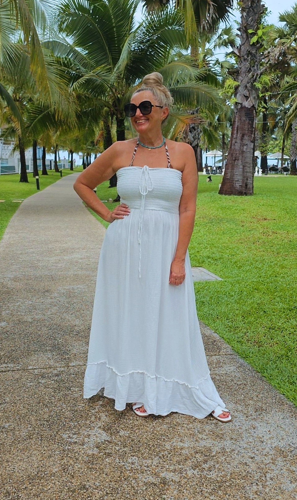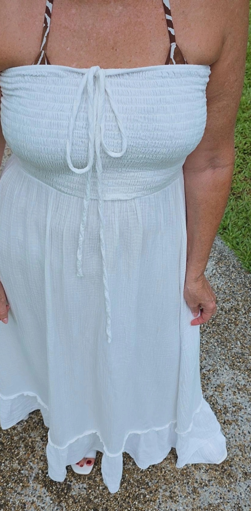 WEIß MUSSELIN KLEID UNI LANZAROTE TRÄGERLOS.2