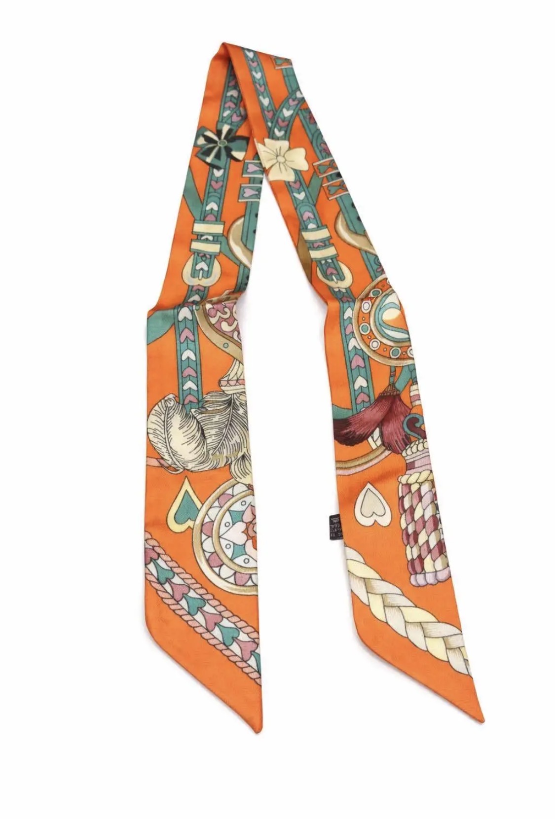 Das schmale Bandeau „Serafina“ bringt lebendige Eleganz in Ihr Styling. Der intensive Orangeton in Kombination mit detailreichen Gürtel-, Quasten- und Schmuckornamenten verleiht dem Accessoire eine luxuriöse, mediterran inspirierte Ausstrahlung und setzt einen ausdrucksstarken Farbakzent.