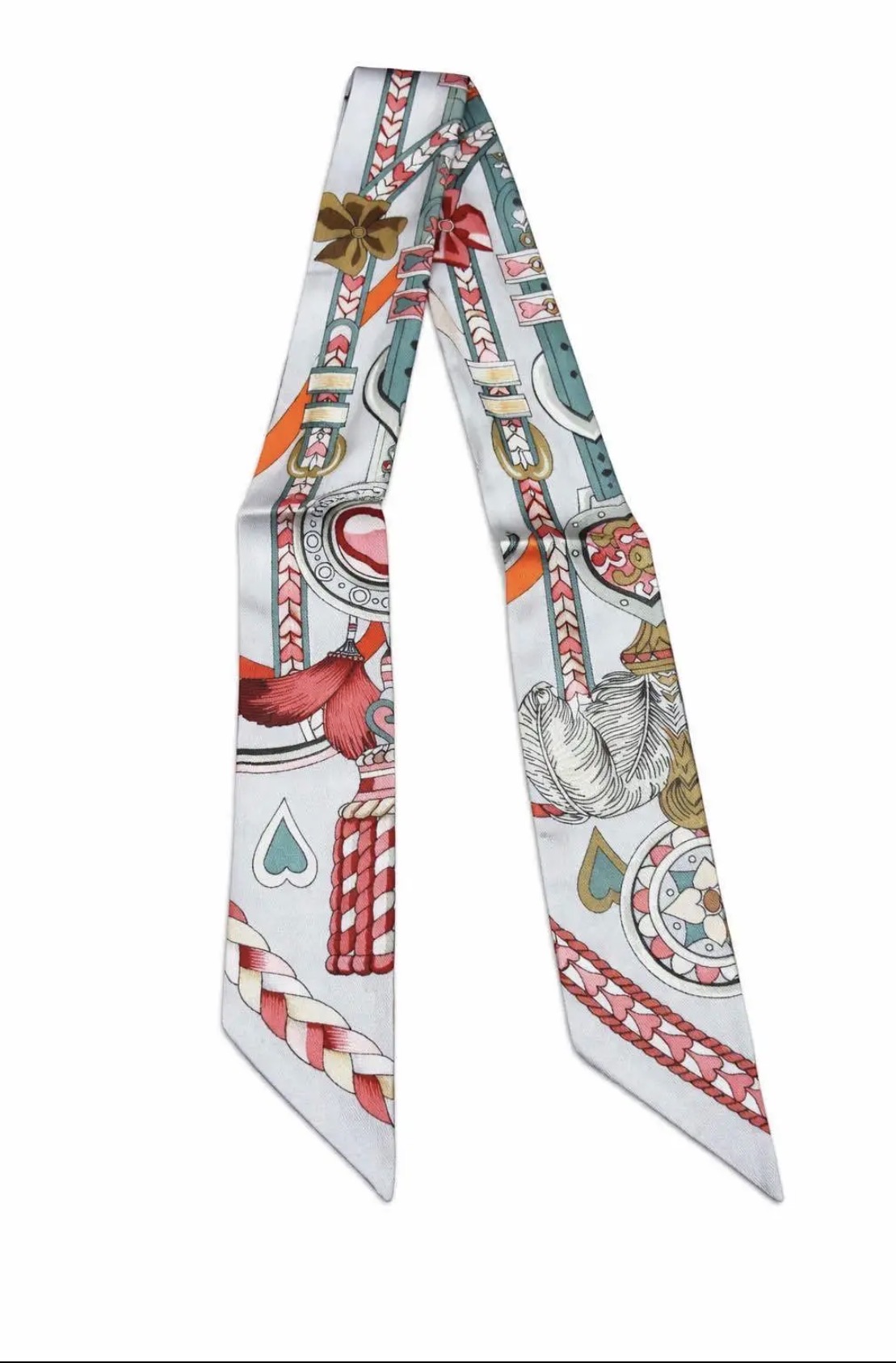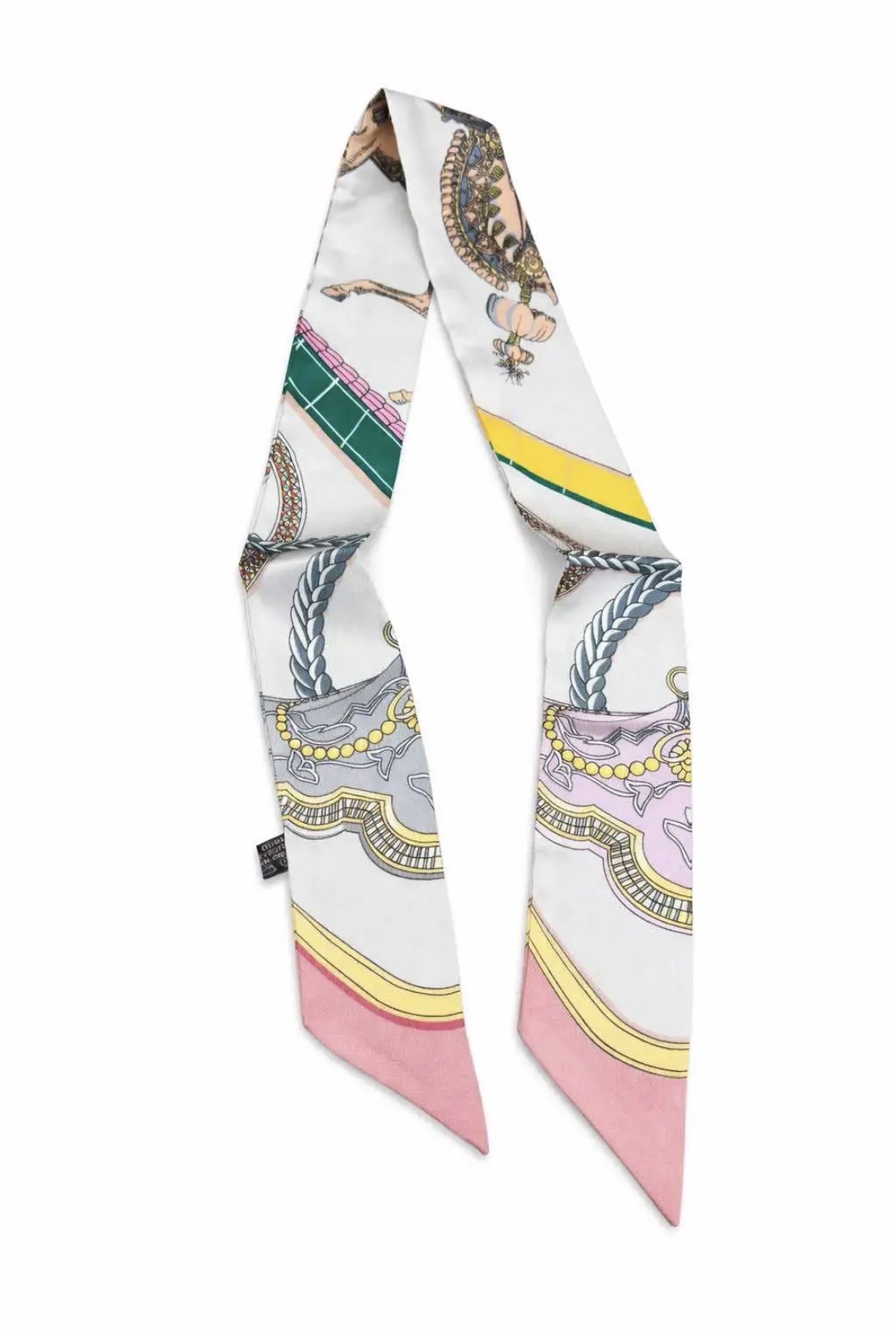 Vielseitig tragbar – klassisch um den Hals, als Haarband oder dekorativ um den Henkel Ihrer Handtasche gewickelt – sorgt dieses schmale Tuch im Handumdrehen für ein stilvolles Finish. Das fein gewebte Material mit dezentem Glanz wirkt seidig und angenehm leicht.