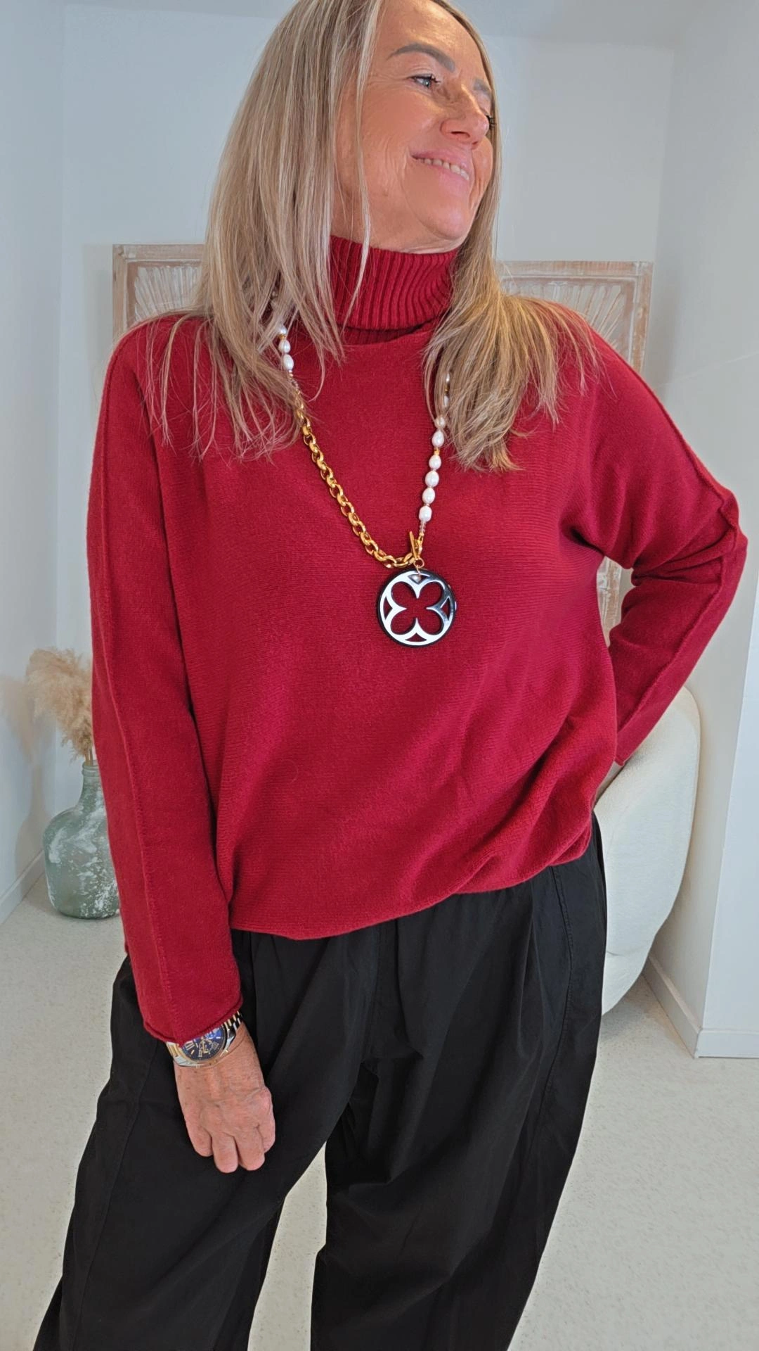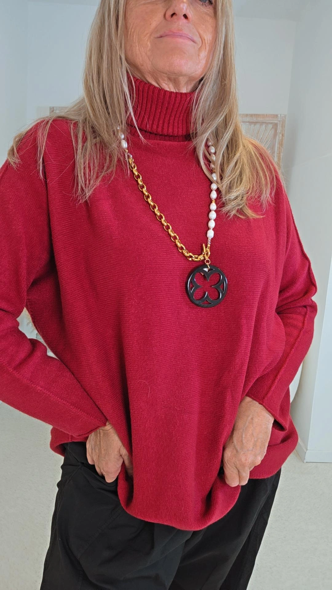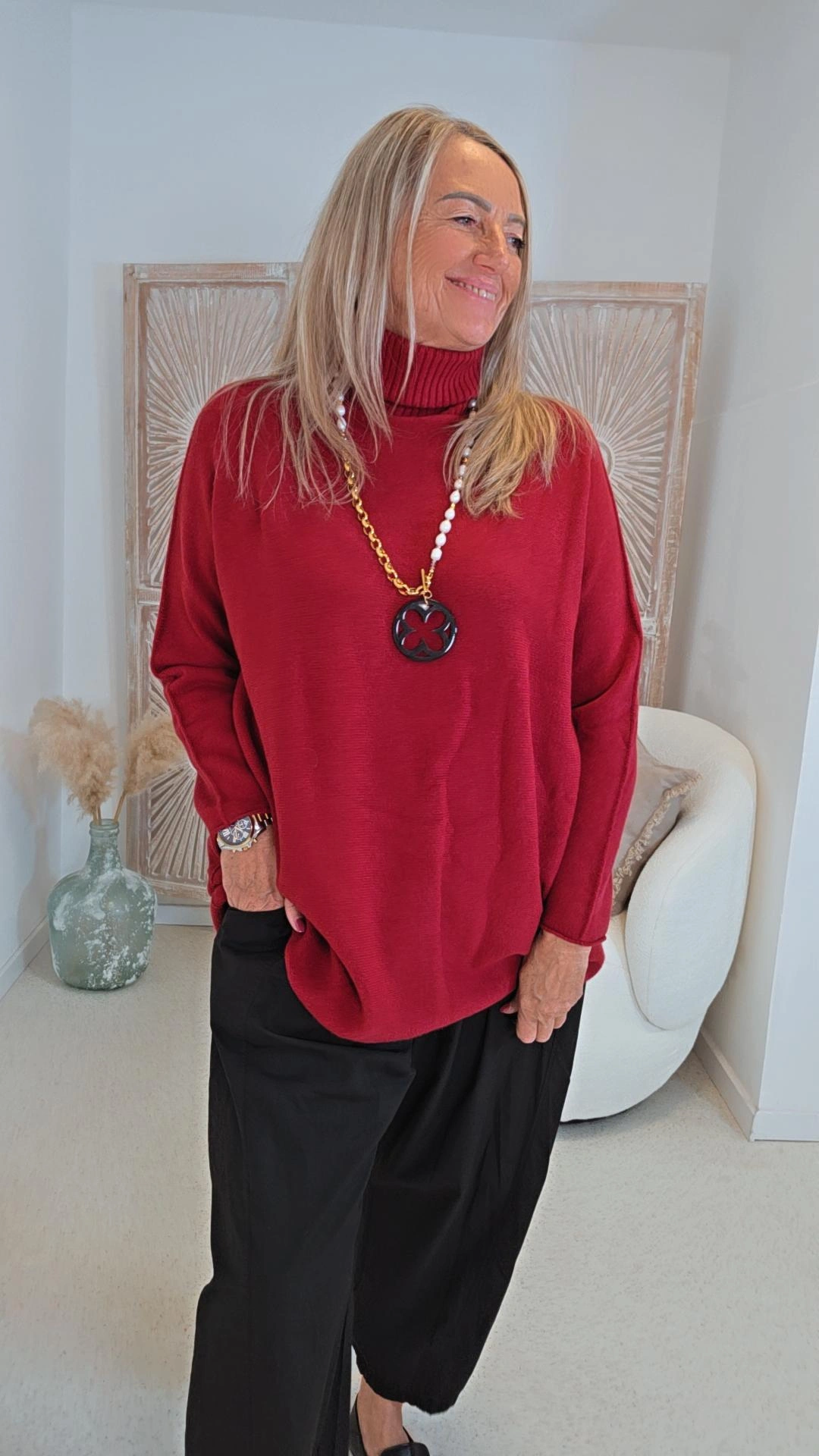CHERRY ROT OVERSIZE KNIT SWEATER BRITTA Rollkragen.3