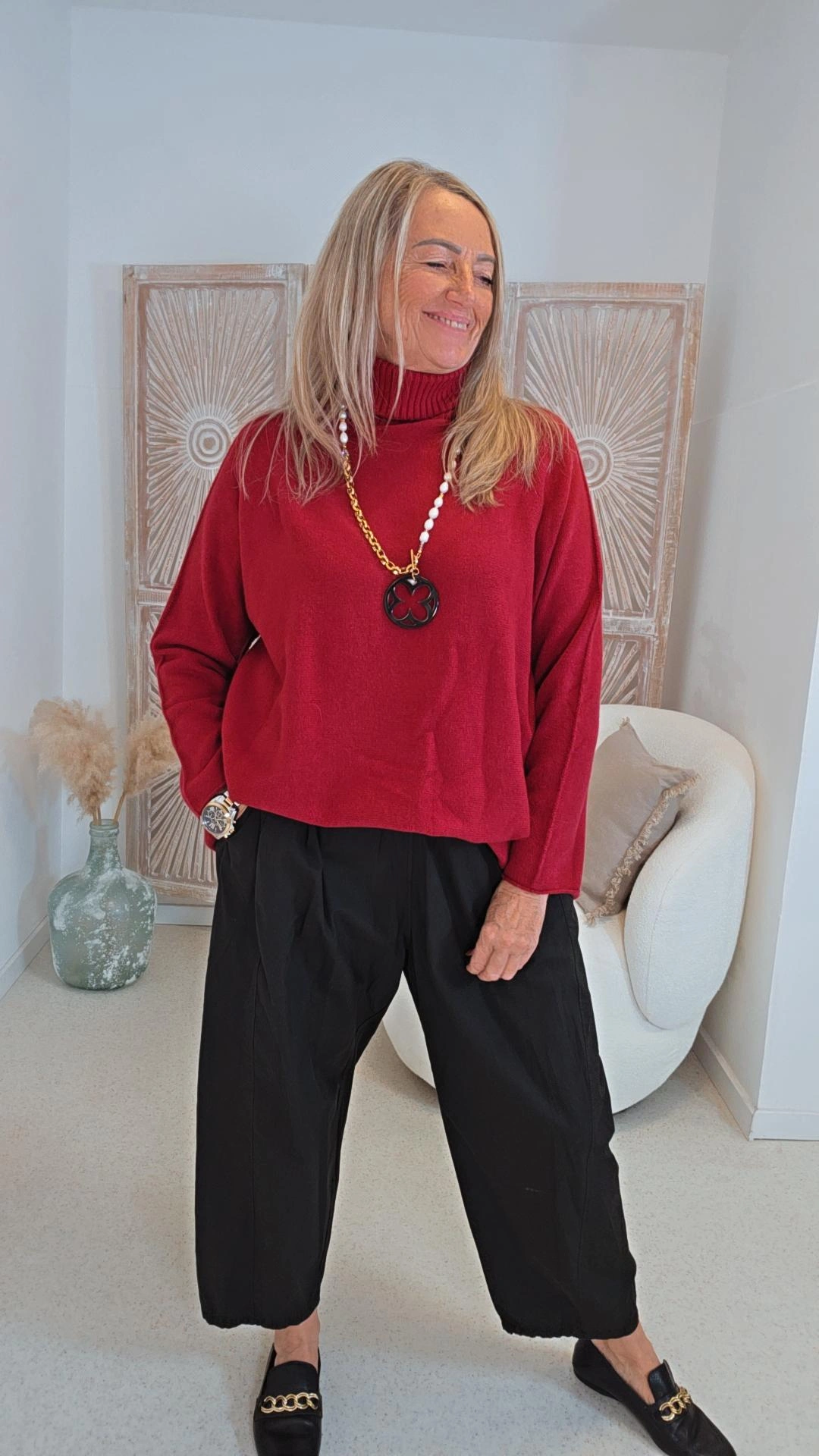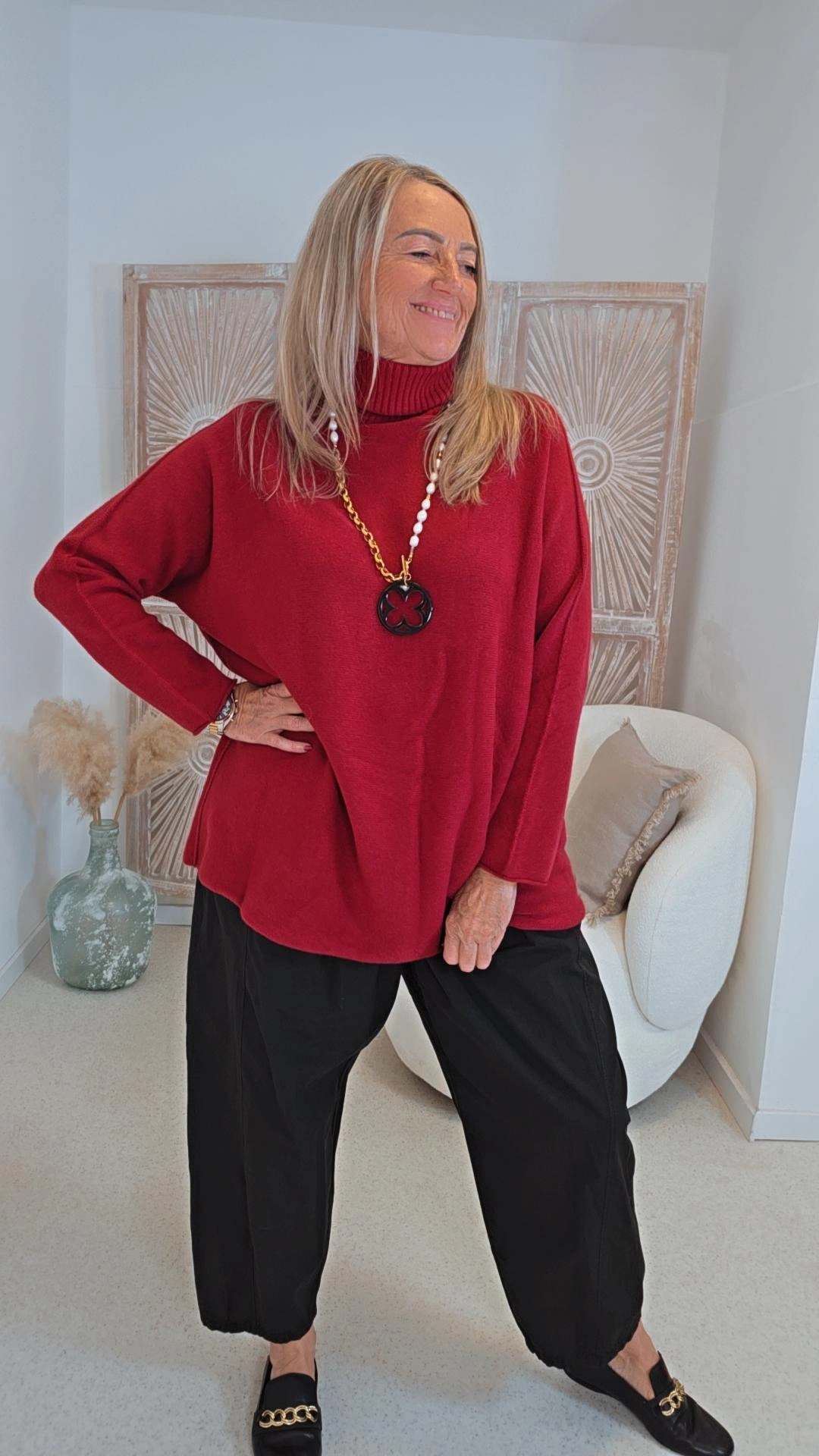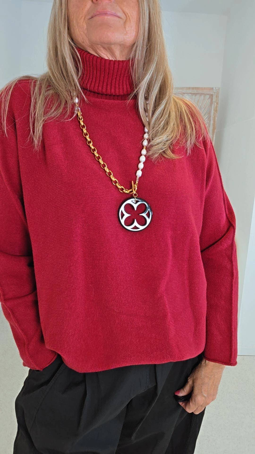 CHERRY ROT OVERSIZE KNIT SWEATER BRITTA Rollkragen.3