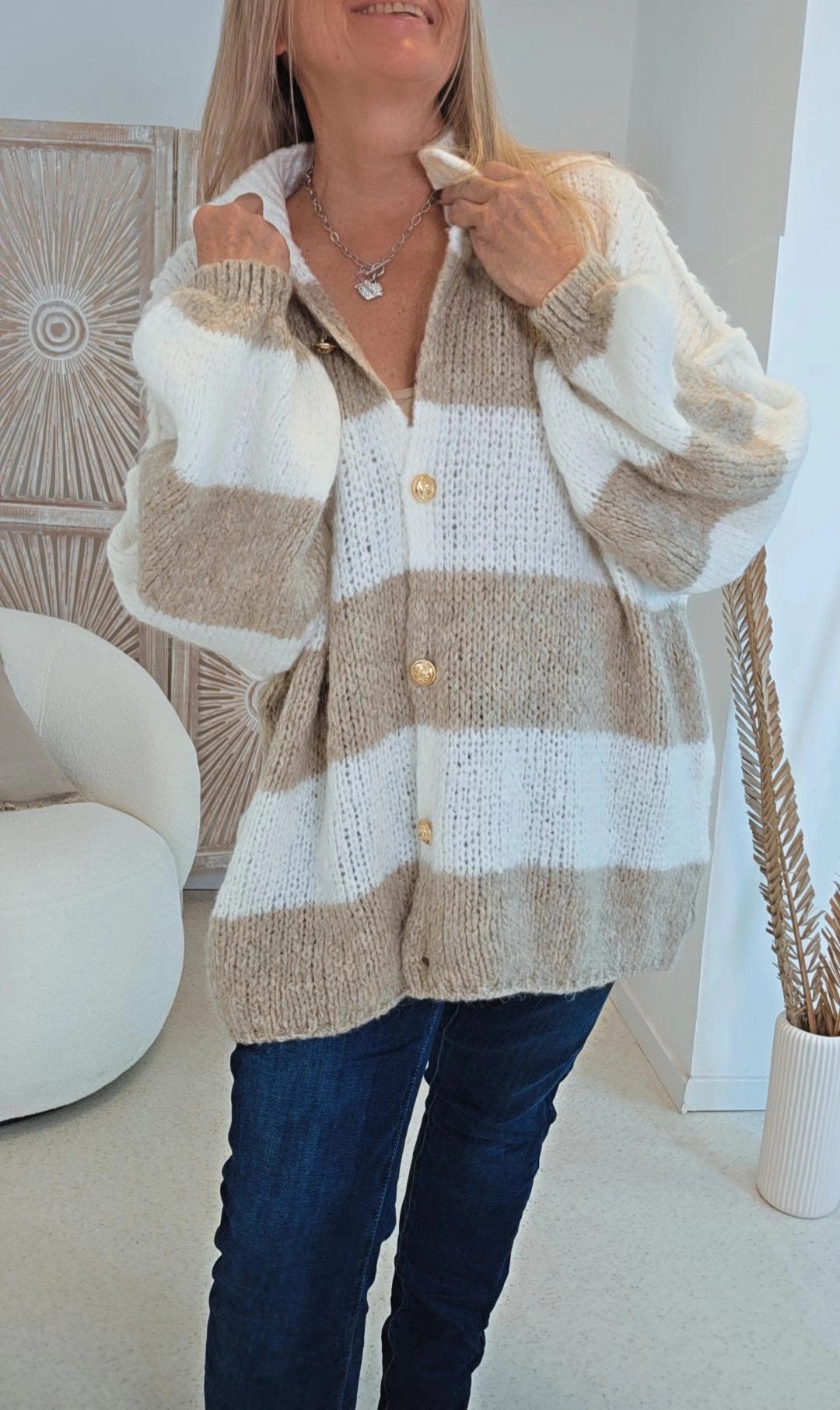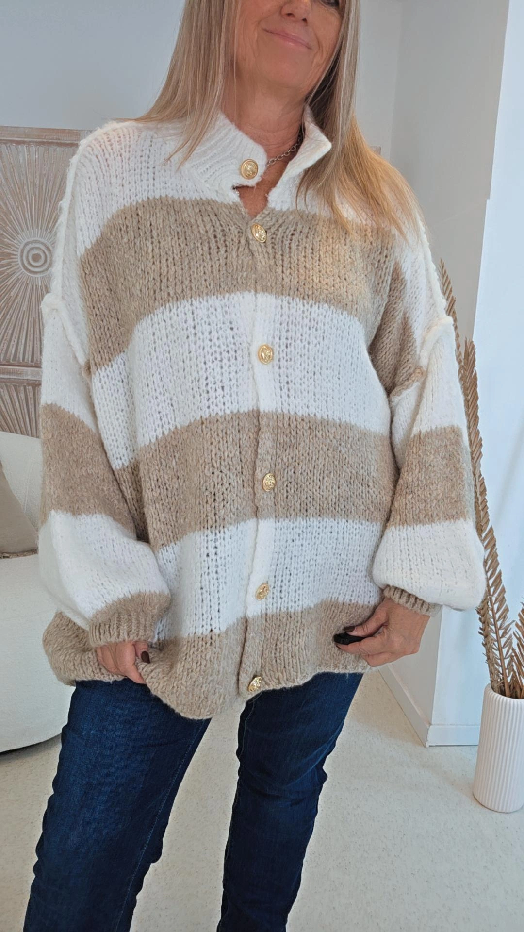 CREME-TAUPE OVERSIZE STRICK CARDIGAN ABERFELD Blockstreifen